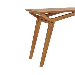 Base em madeira maciça. Tampo em MDF com acabamento em lâmina de madeira natural tingida. *Produto entregue montado.