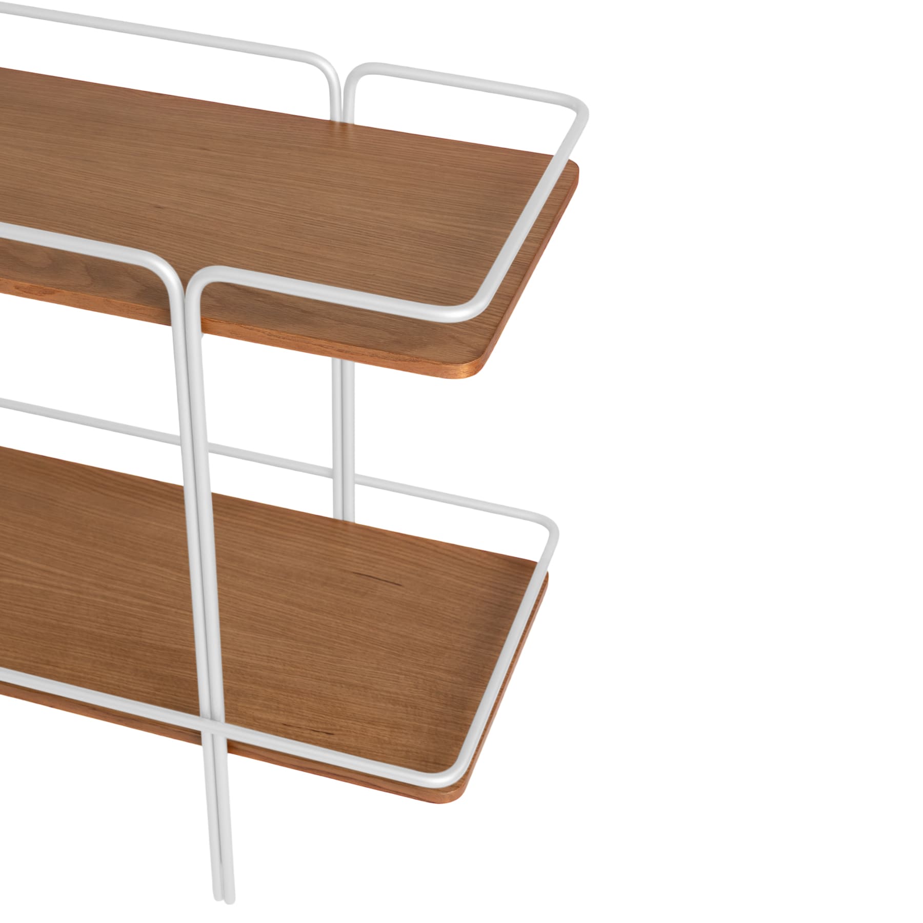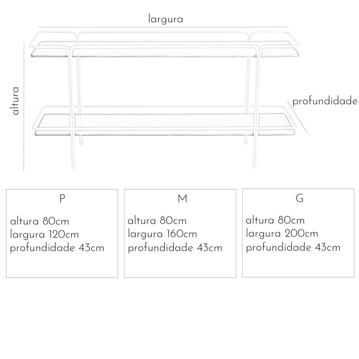 O aparador level é uma peça que tem leveza e presença ao mesmo tempo. Com estrutura metálica fininha, tem duas prateleiras de madeira que equilibram a composição. Disponível em medidas que vão de 120cm até 2 metros, atende espaços pequenos e grandes.