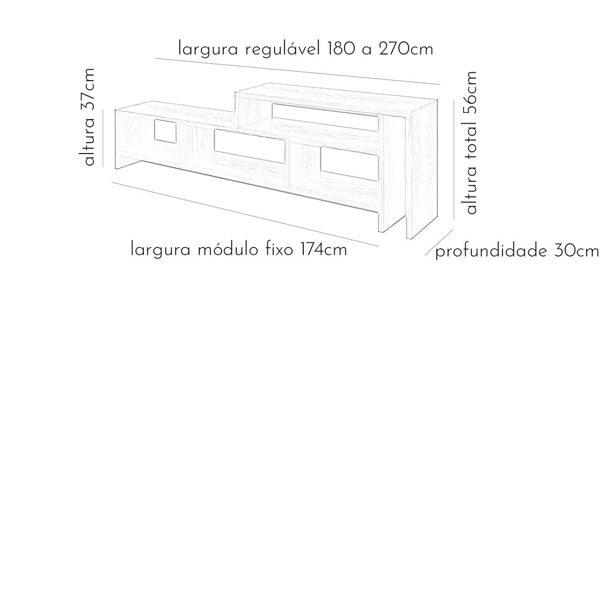 Produzido em MDF com acabamento em lâmina de madeira natural carvalho. Módulo extensível pode ser montado com abertura para qualquer lado. *Produto entregue desmontado. Nível de dificuldade de montagem: difícil. Recomendada montagem profissional.