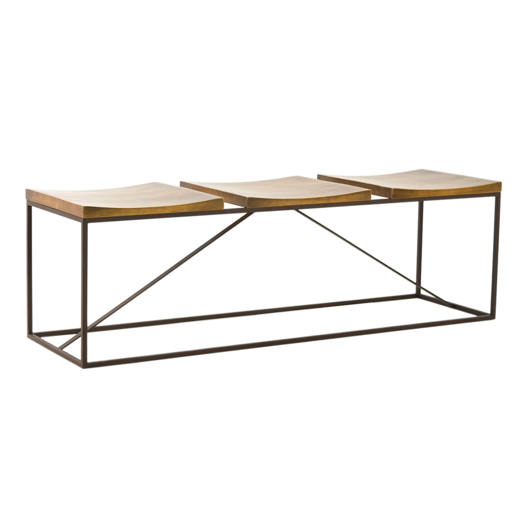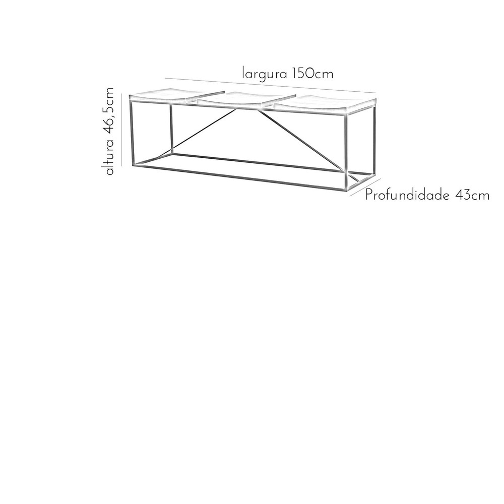 banco 3 lugares em metal e madeira mescla