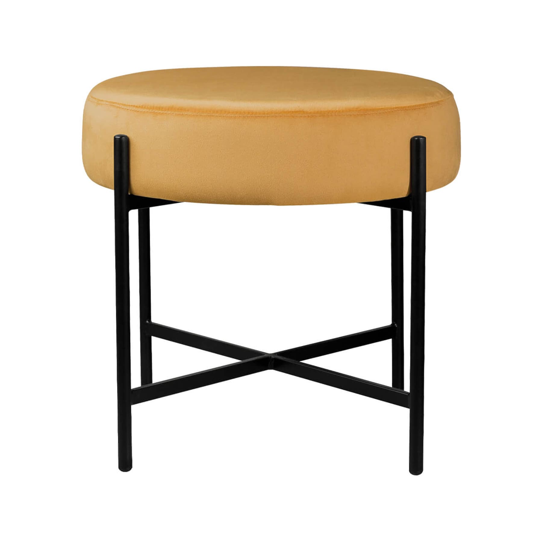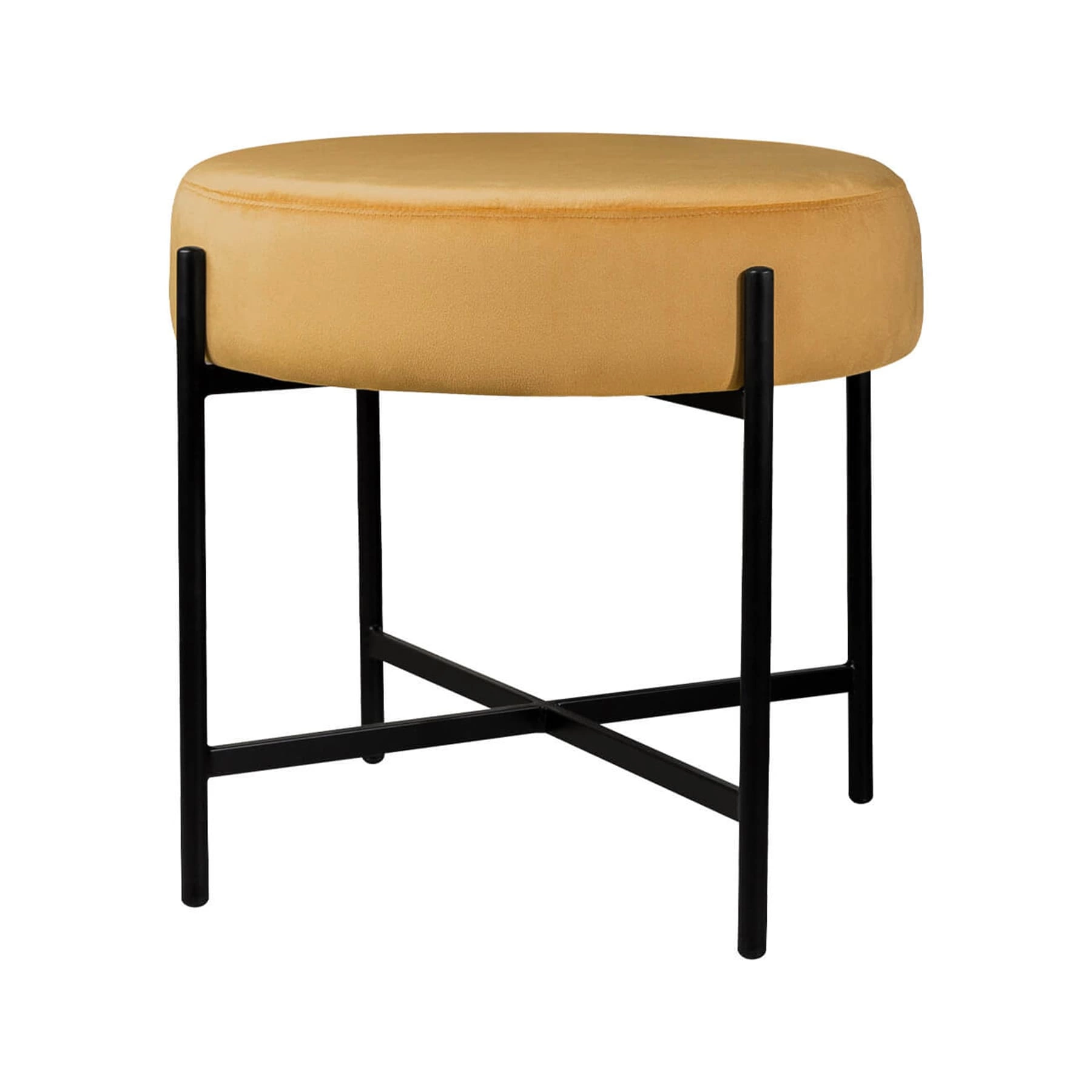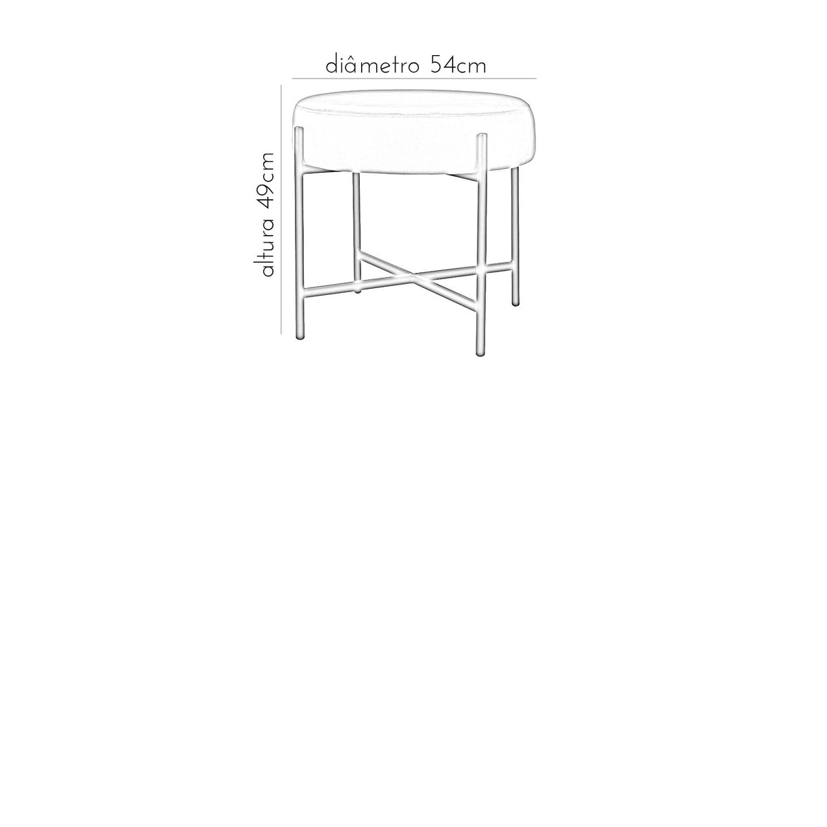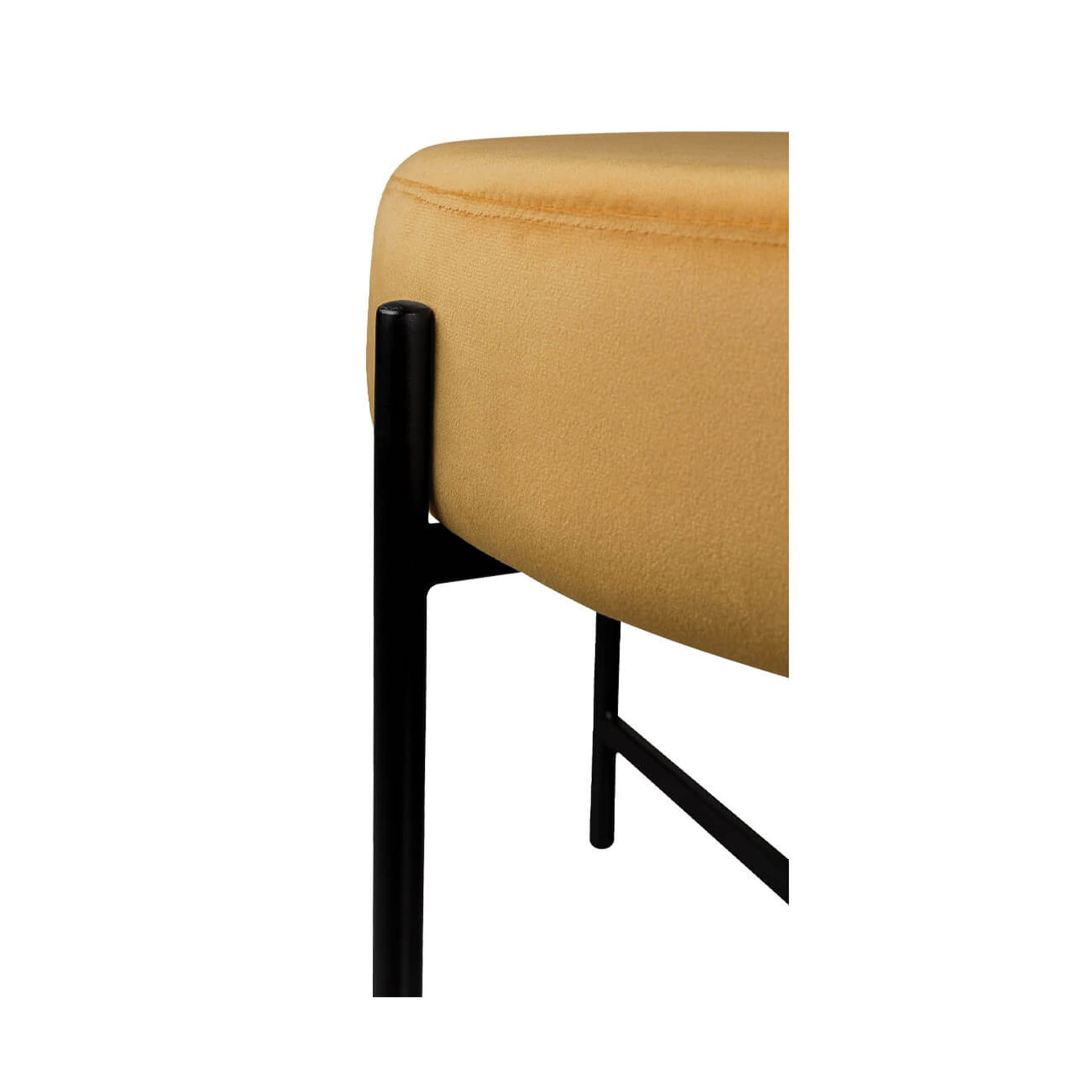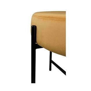 Estrutura em aço carbono com acabamento em pintura epoxi fosca. Assento em MDF estofado com espuma D28 e tecido veludo 100% poliéster.*Produto entregue montado.