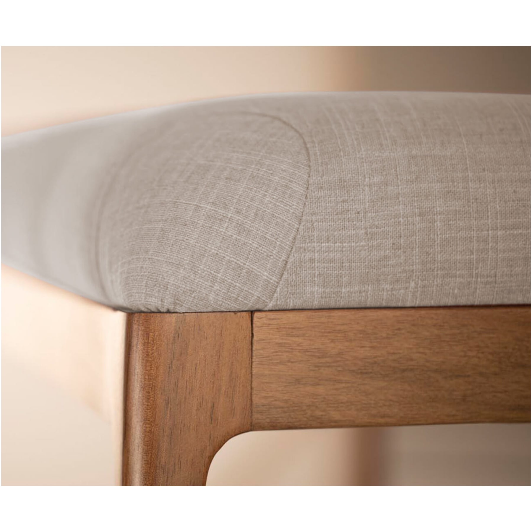 Estrutura em madeira maciça jequitibá de origem de reflorestamento, cortada em CNC de alta precisão (encaixes perfeitos e maior resistência). Assento com estrutura em madeira multilaminada, estofado em espuma de alta resiliência D28 e tecido tipo linho 100% poliéster. Este produto suporta uso corporativo. *Produto entregue montado.