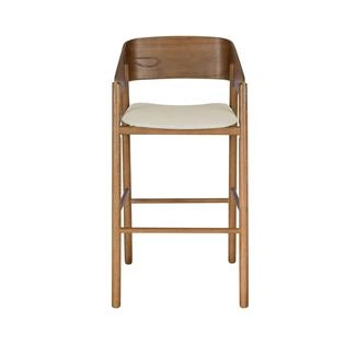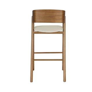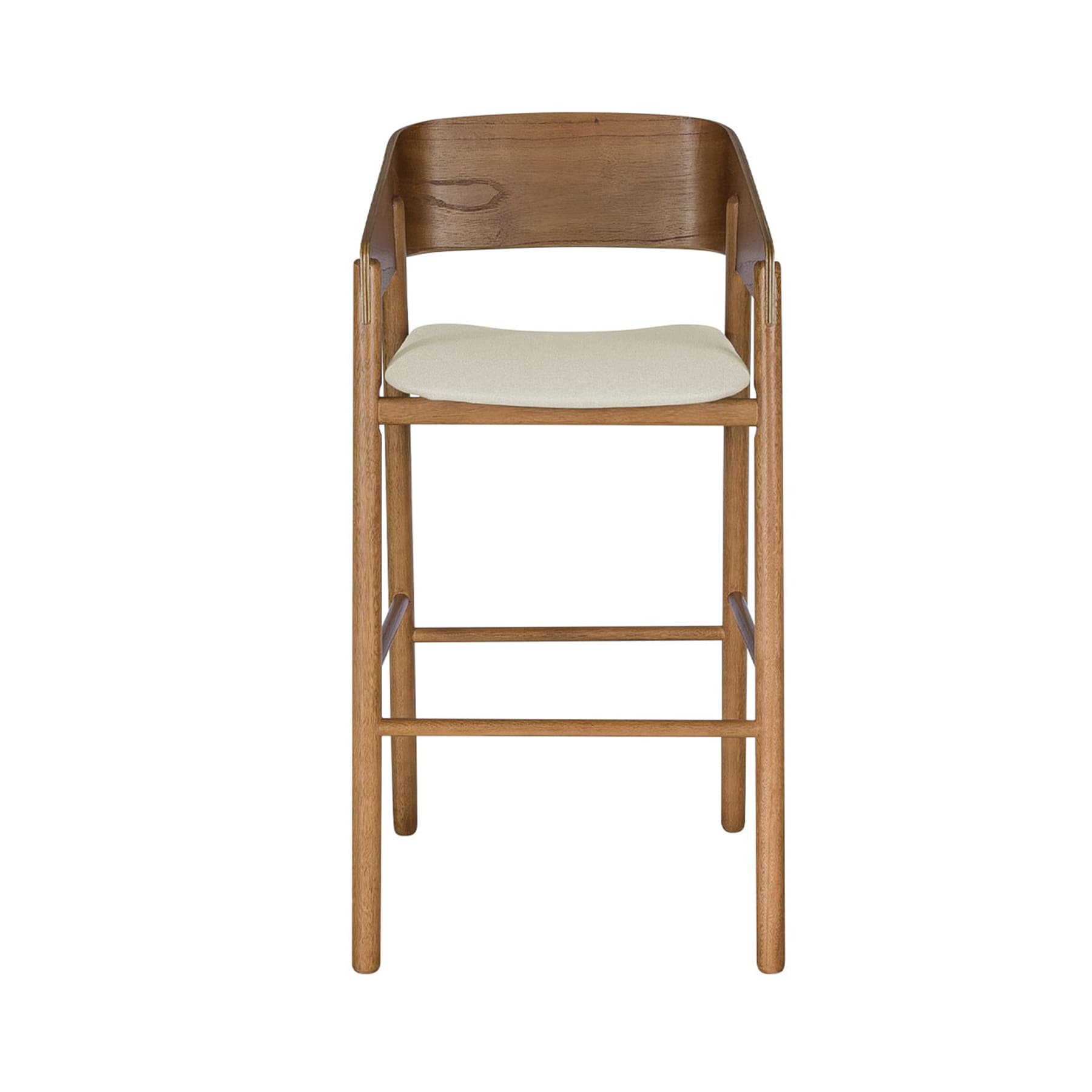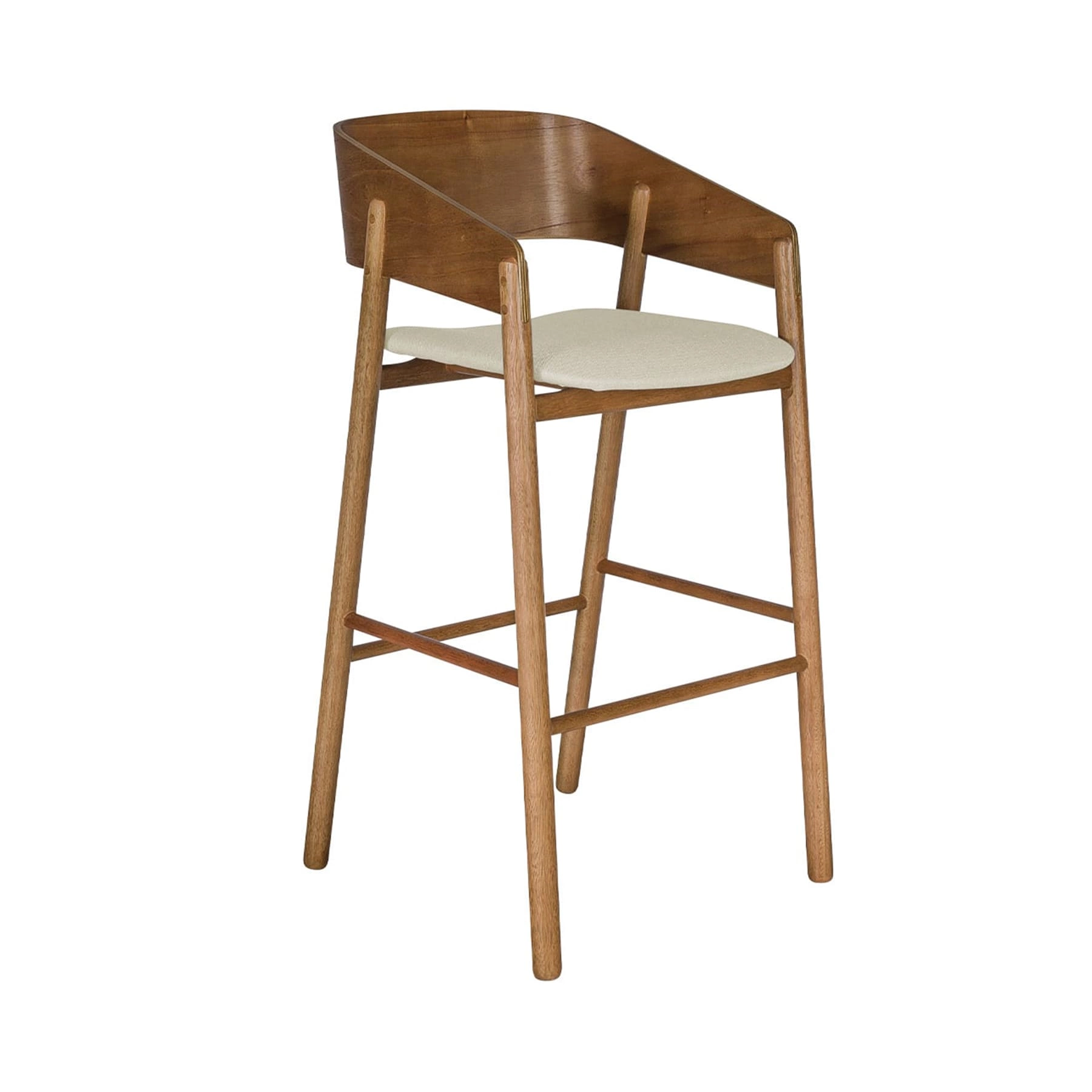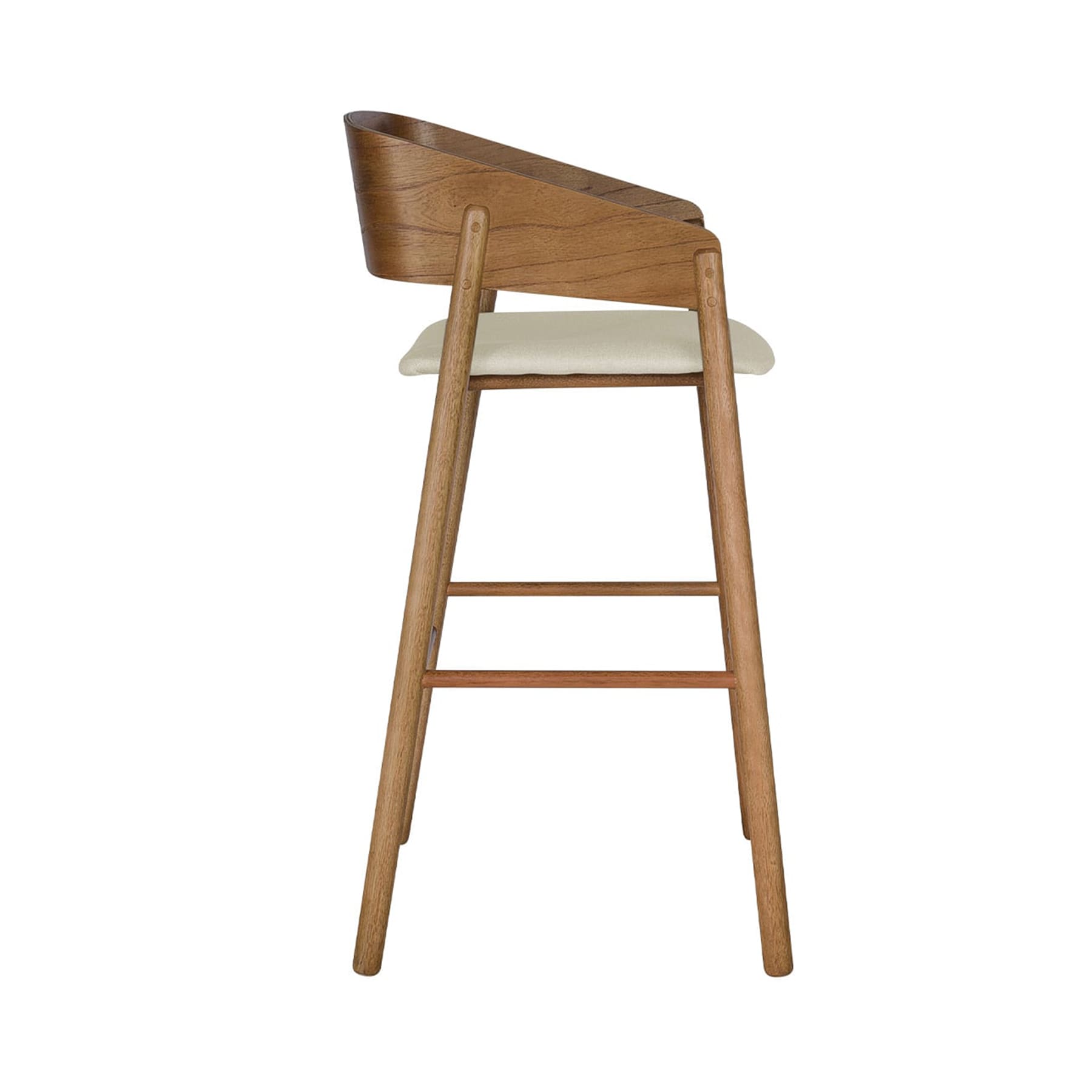 Base em madeira maciça. Encosto em madeira multi laminada curva. Assento em MDF estofado com espuma D28 de15mm e tecido. *Produto entregue montado.