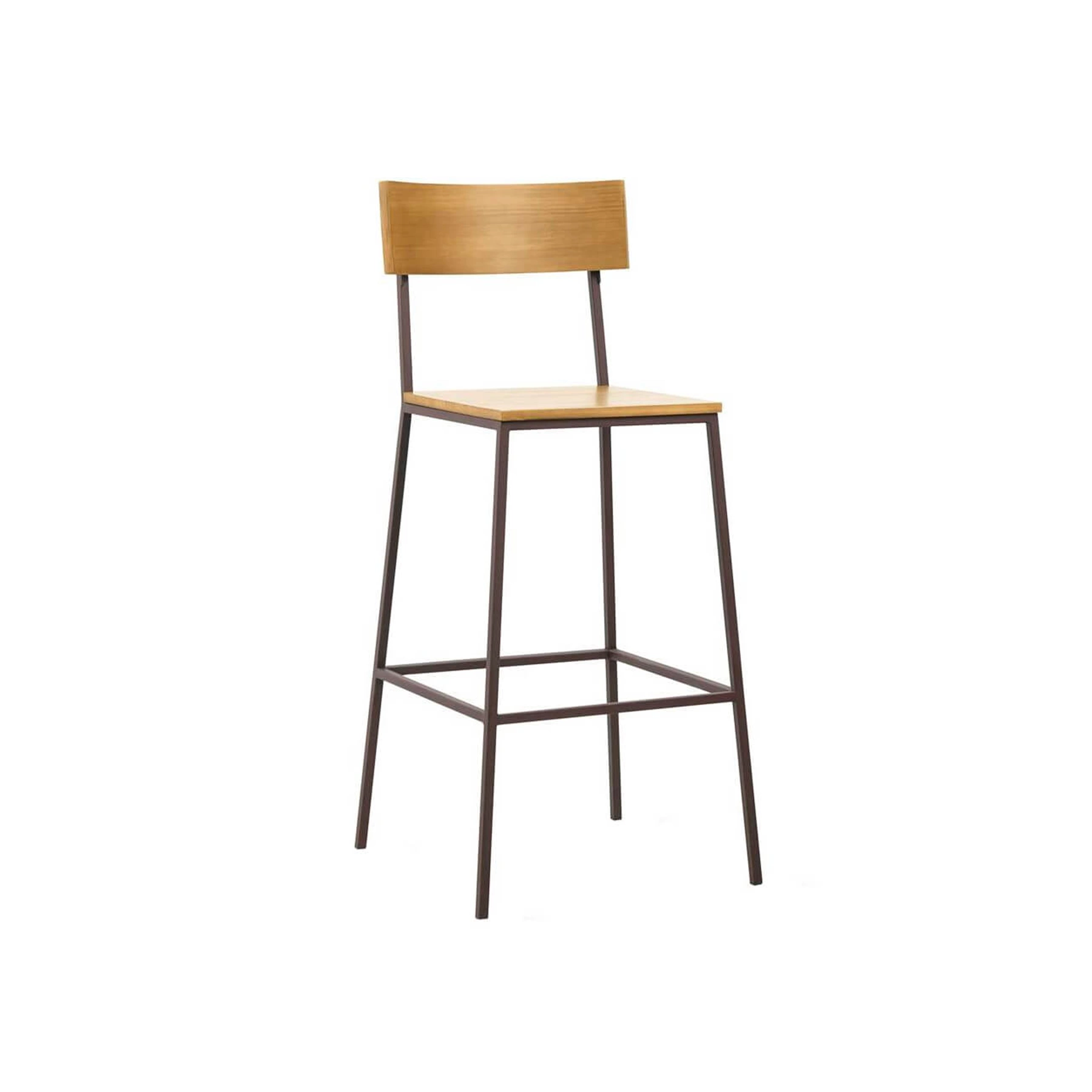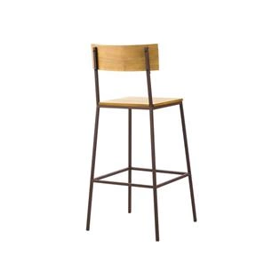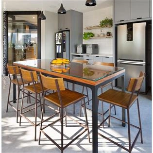 A banqueta mescla mistura dois elementos com ares naturais e modernos: a madeira maciça e o aço corten. É uma opção para compor uma cozinha ou varanda com descontração. Com desenho contemporâneo, o encosto em madeira curvado proporciona conforto na medida certa.