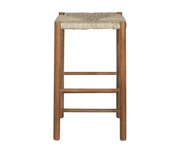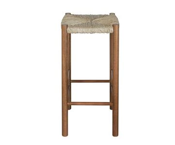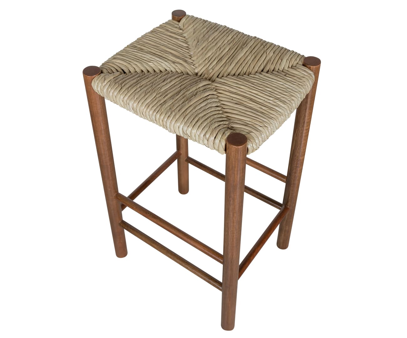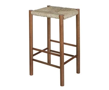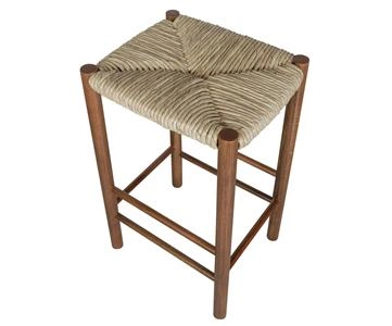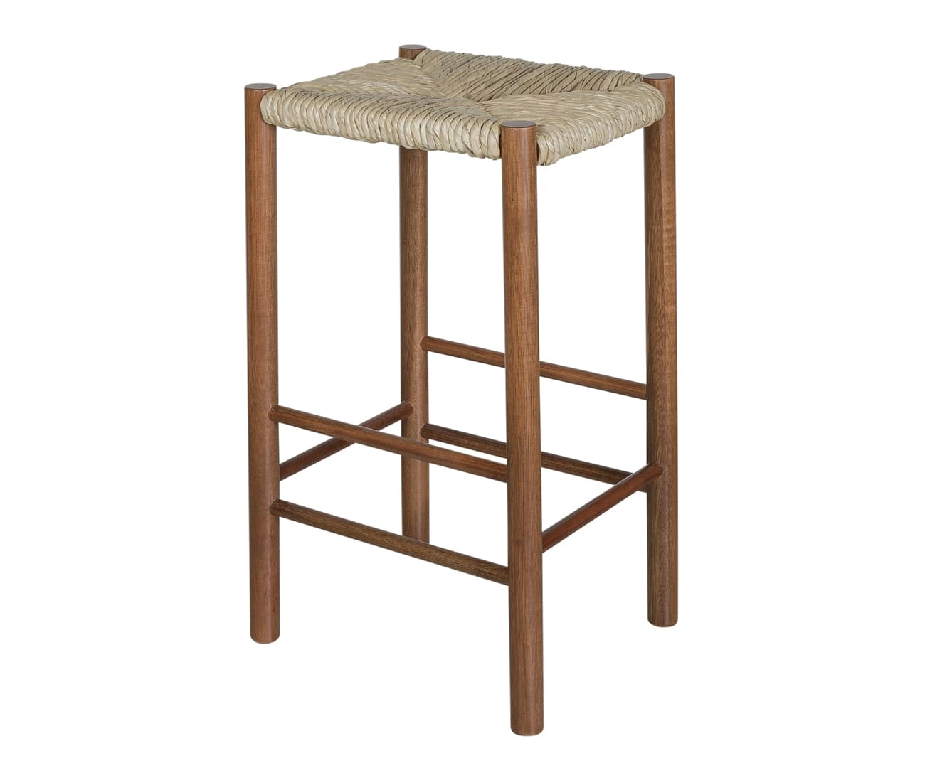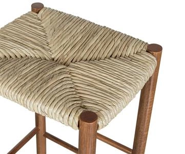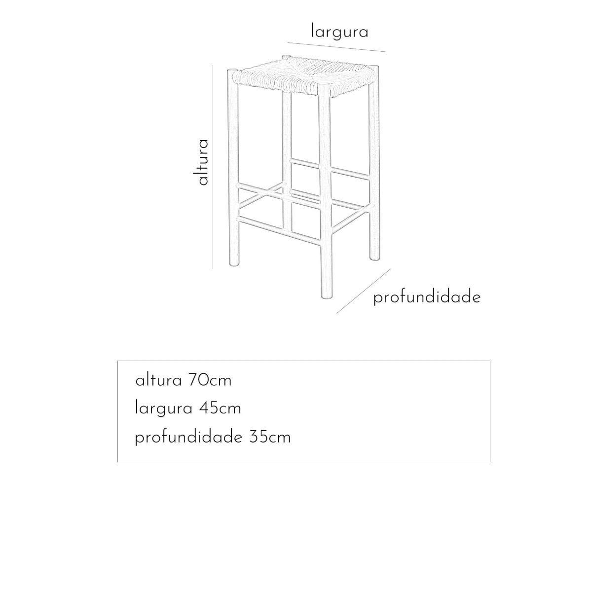Estrutura em madeira maciça de eucalipto tingida com verniz fosco. Assento em palha natural de fibra de coqueiro e palmeira, cozidas e secas em estufa, trançadas a mão (as folhas são extraídas uma a uma das plantas para crescerem novamente). *Produto entregue montado.
