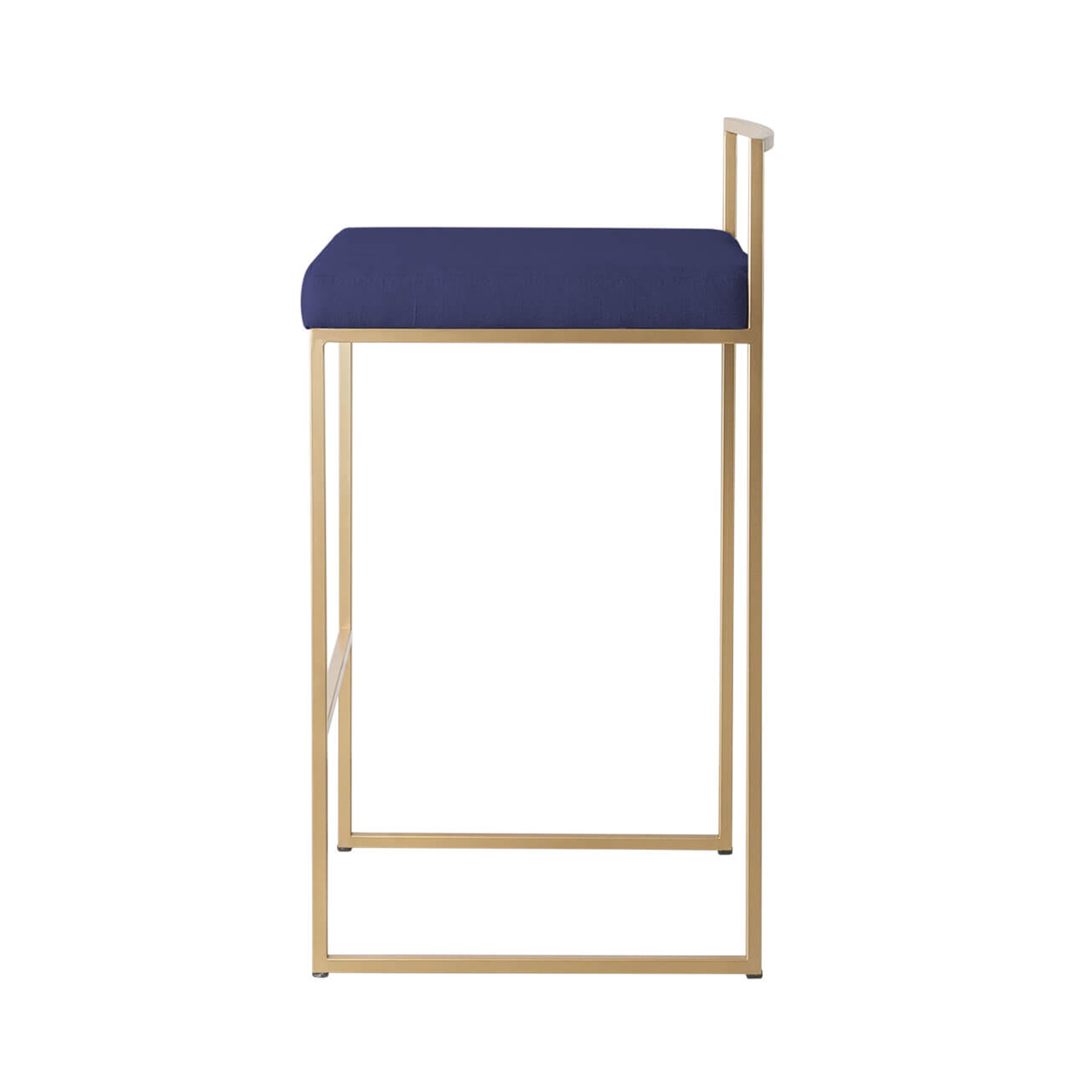 Estrutura em tubo de aço carbono de 15mm com acabamento em pintura automotiva dourada. Estofamento com estrutura em MDF, espuma D28 e tecido.*Produto entregue montado.