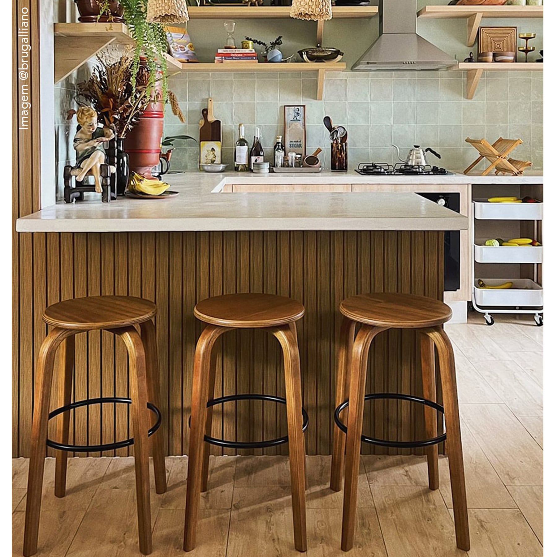 A banqueta circus é simples, moderna e prática. A madeira vergada e o metal deixam ela com um ar de sofisticação. Atende muito bem também os ambientes pequenos.