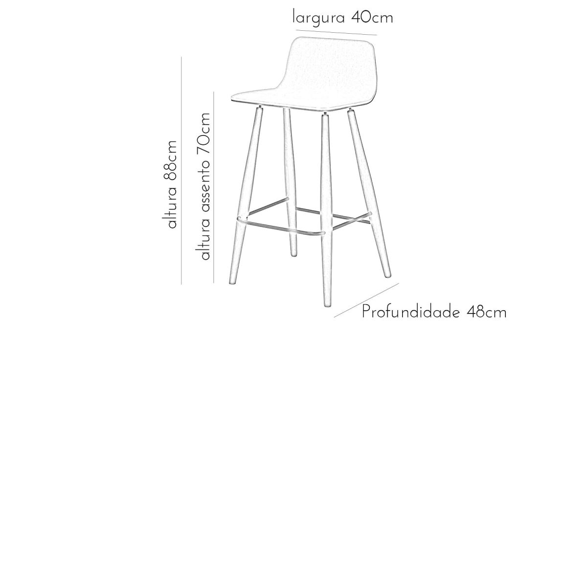 Pés em madeira maciça. Apoio pés em metal com pintura epóxi preta. Assento com estrutura em madeira multilaminada curvada, estofado em espuma de alta resiliência D28 com 20mm e tecido. *Produto entregue montado.