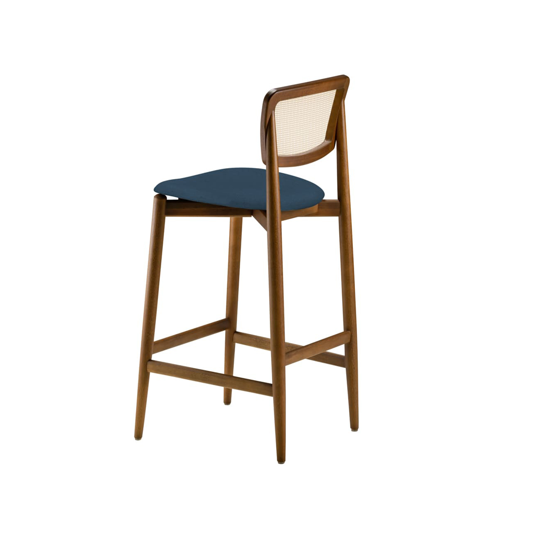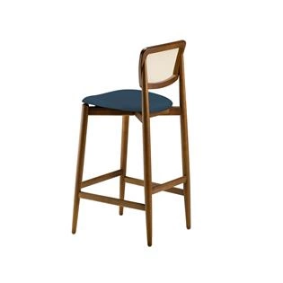 Estrutura em madeira maciça tauari tingido. Assento em MDF estofado com espuma D28 e tecido. Encosto em palha sintética de papel cor natural. *Produto entregue montado.