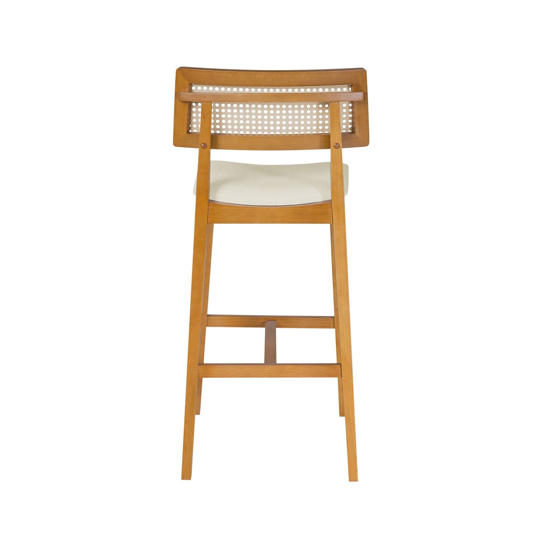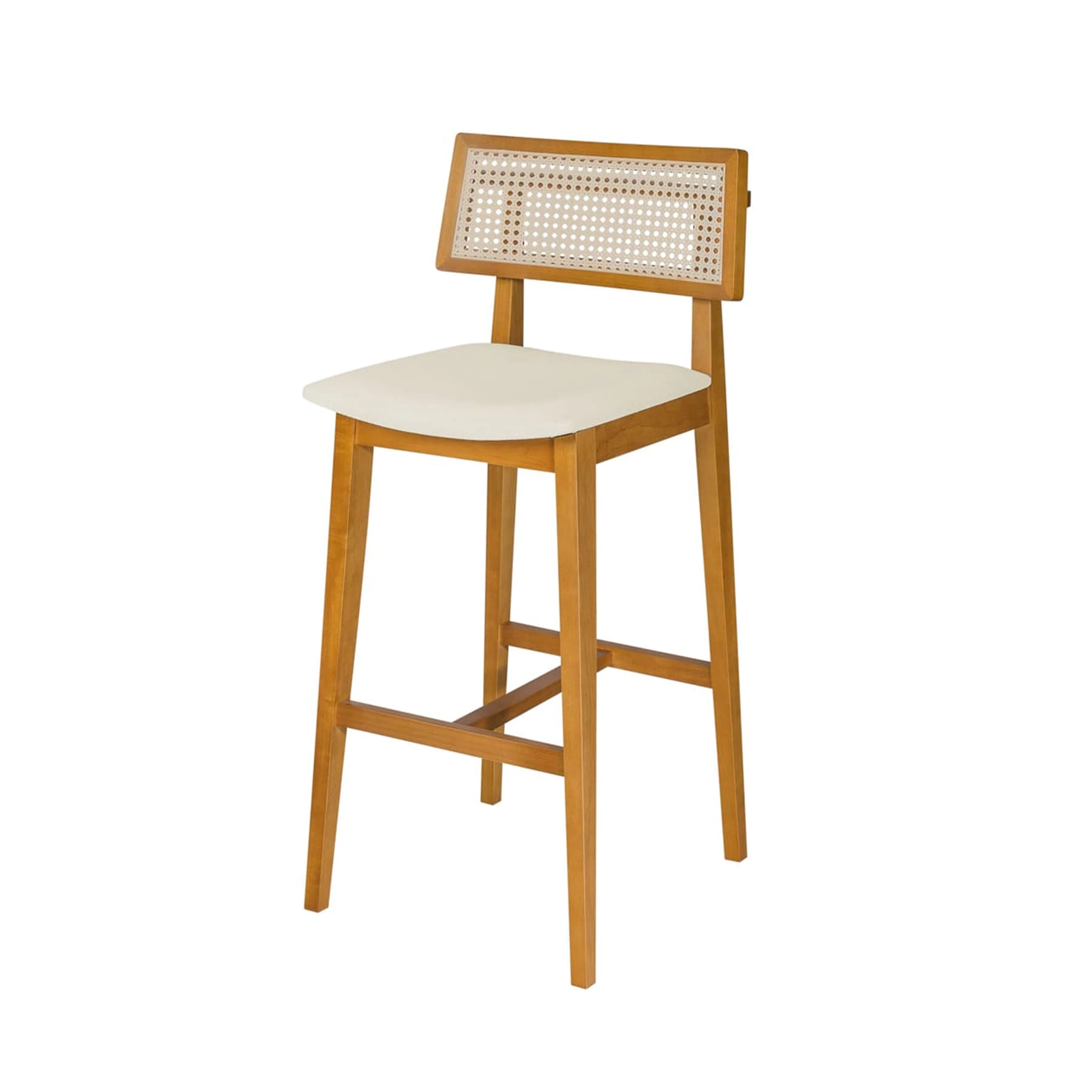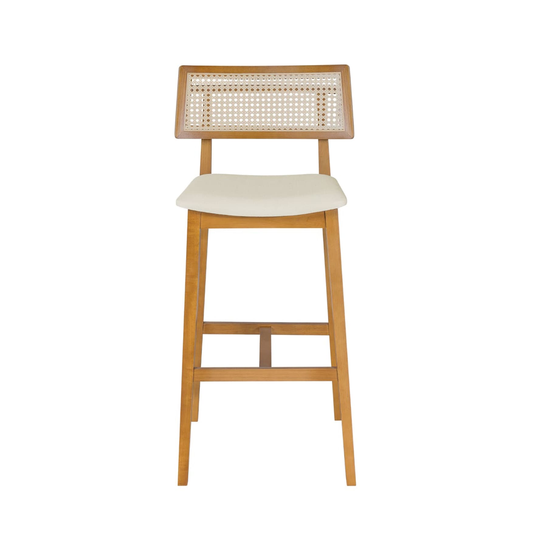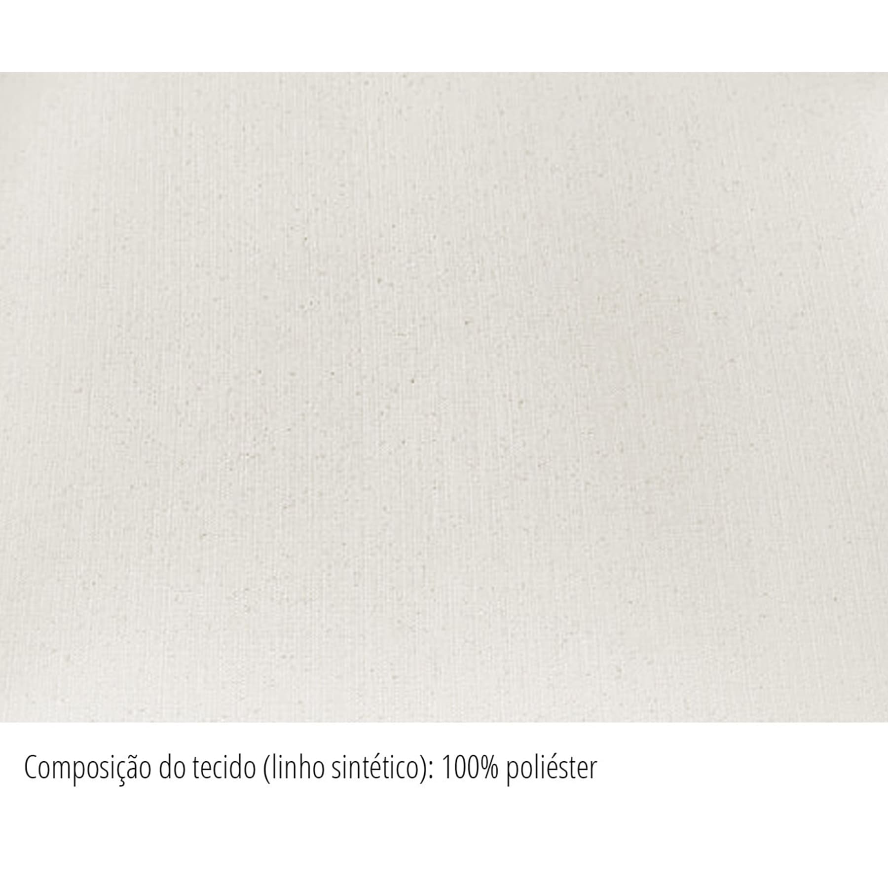 Estrutura produzida em madeira maciça tauari. Encosto com palha sintética tramada. Assento com estrutura em MDF, estofado com espuma D28 e tecido tipolinho sintético composição 100% poliéster. *Produto entregue montado.