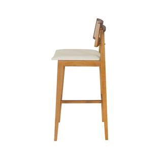 A banqueta cadiz mescla a palha com madeira, materiais que remetem à natureza e a decoração boho chic, com o desenho contemporâneo. As formas arredondadas trazem qualidade de acabamento.