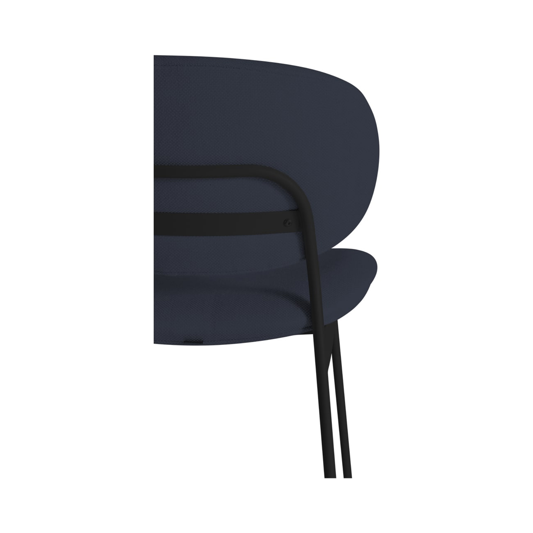 Estrutura em aço carbono com pintura epóxi. Encosto e assento em madeira multilaminada curva estofada com espuma D28 e tecido. *Produto entregue montado.