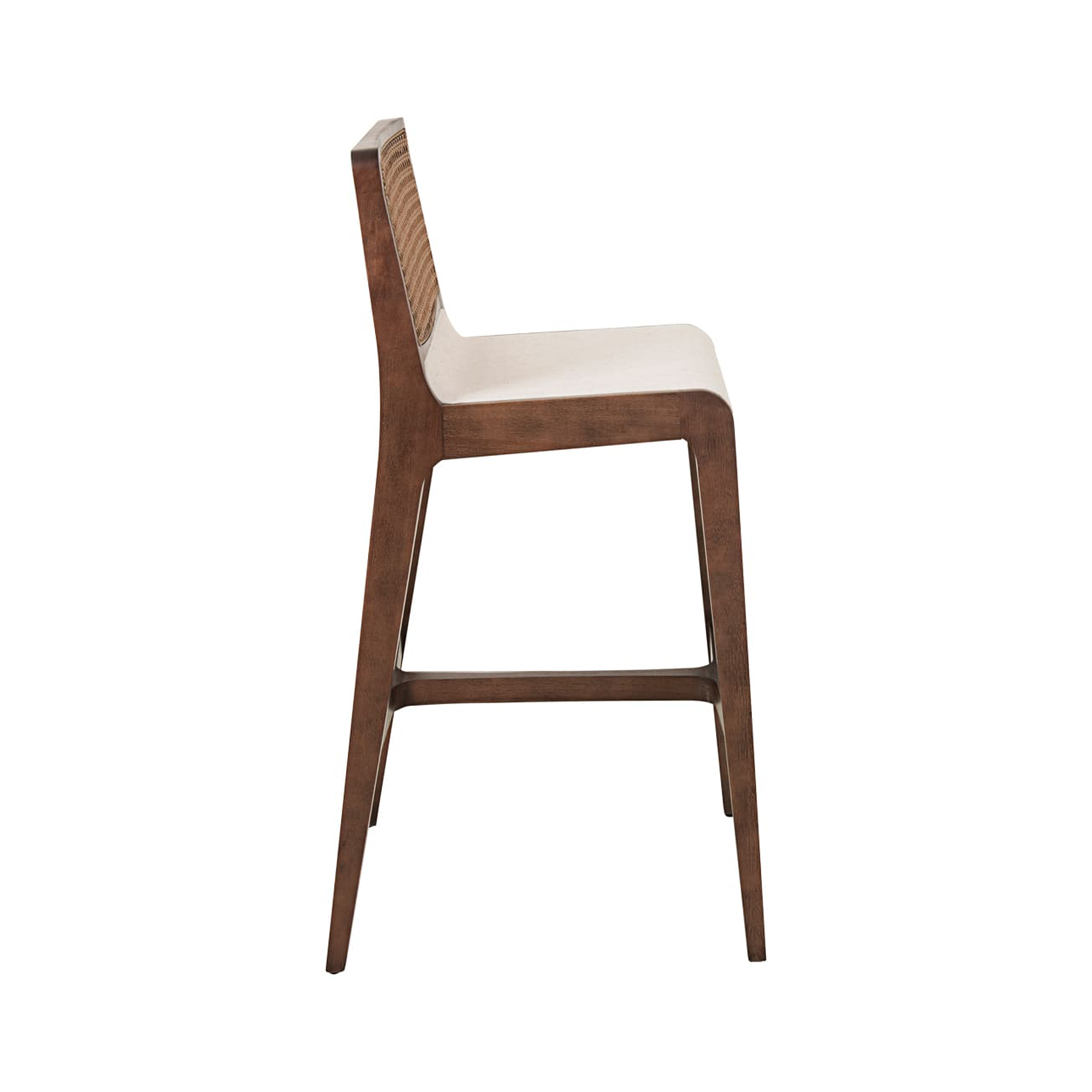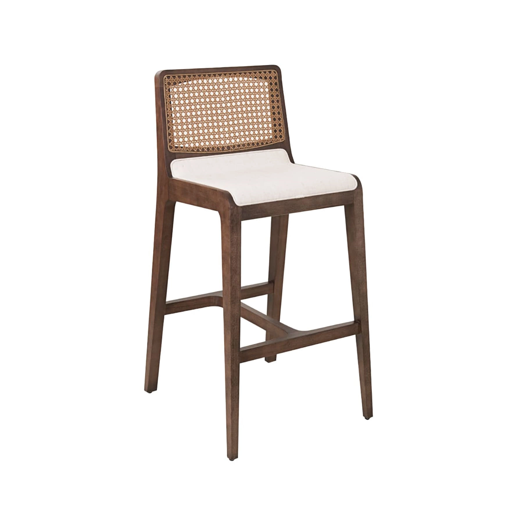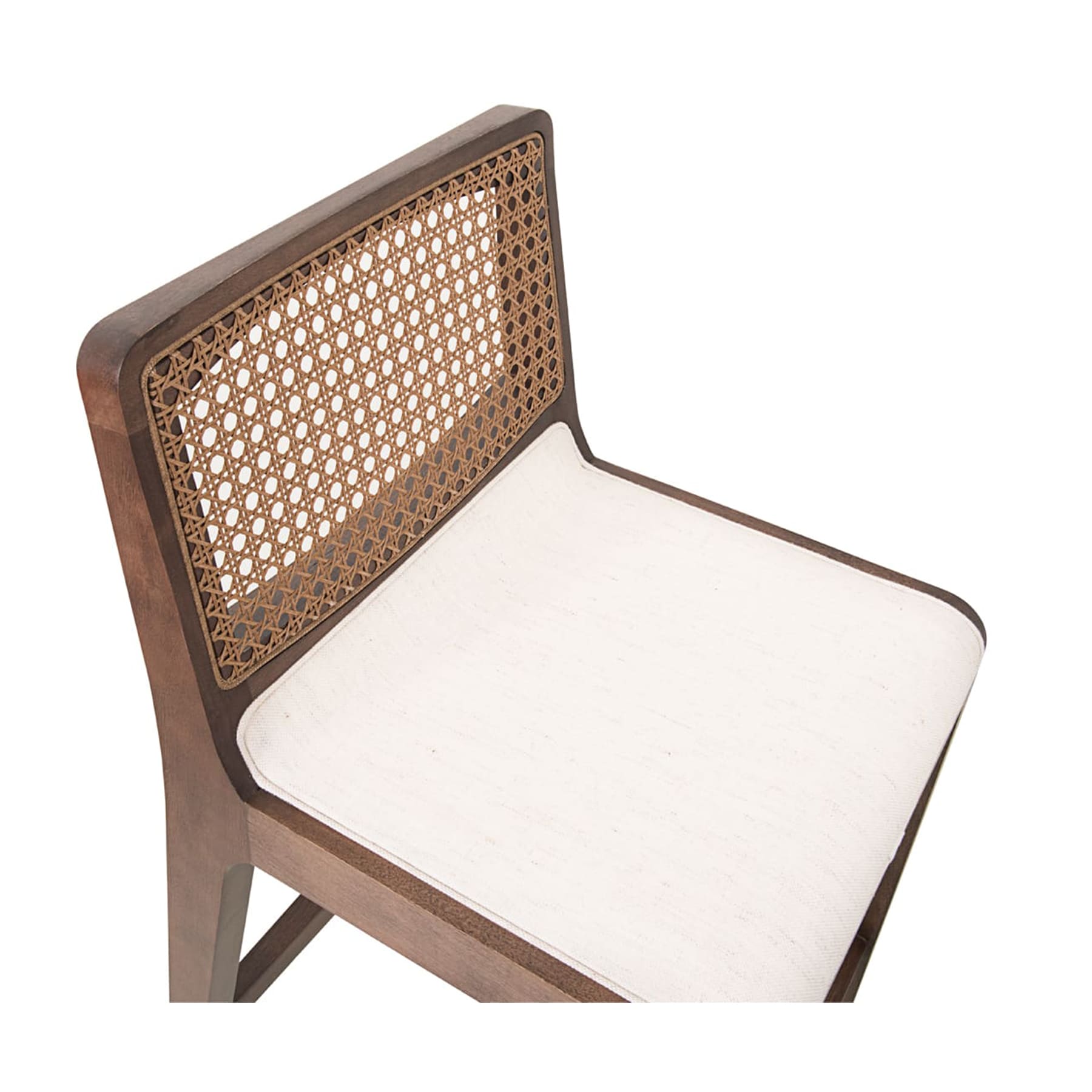 Estrutura em madeira maciça. Encosto em palha natural tingida. Assento em MDF estofado com espuma D33 de 20mm e tecido tipo linho misto, composição 60% algodão 40% poliéster. *Produto entregue montado.