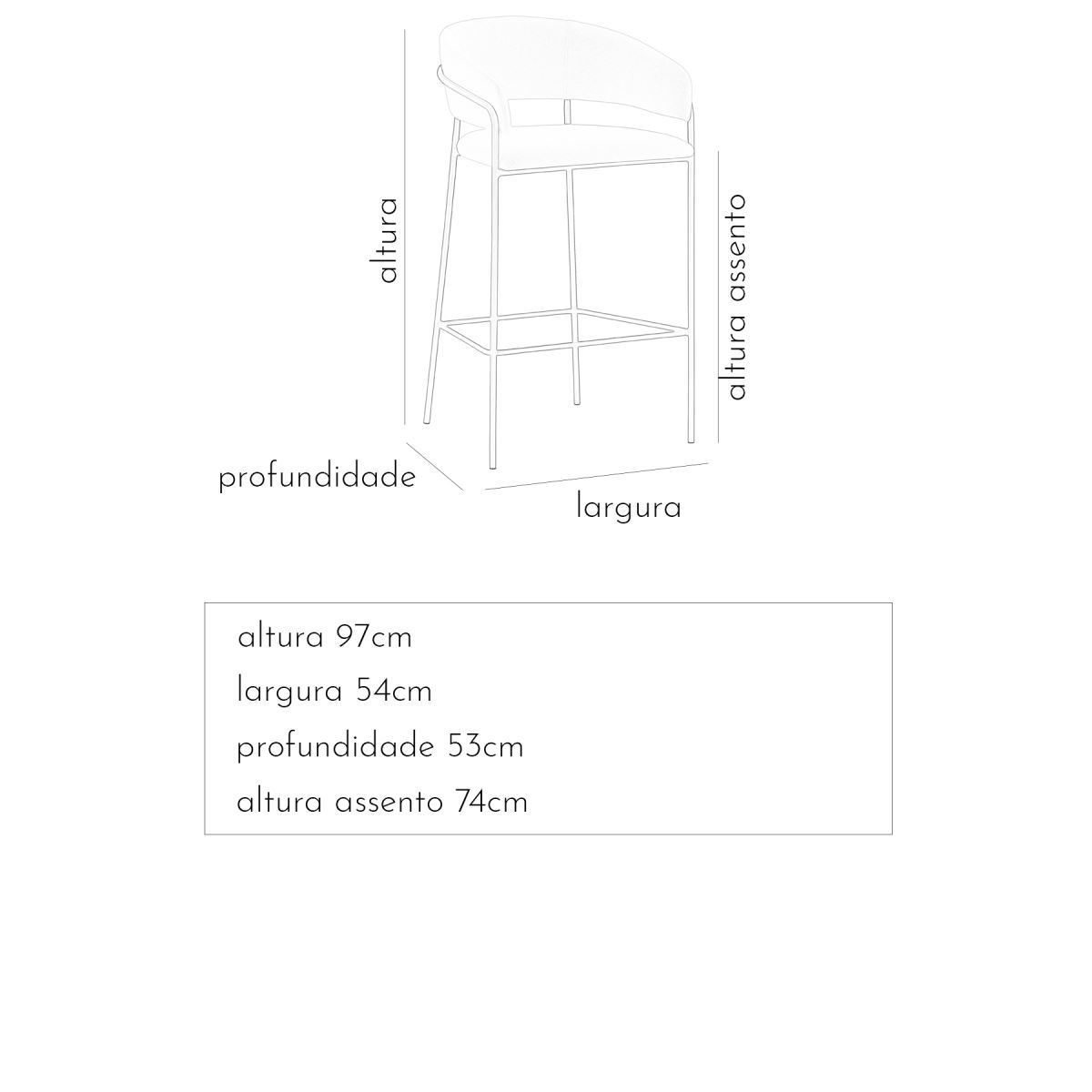 Estrutura em aço carbono com acabamento em pintura epóxi preto fosco. Estrutura dos assentos em madeira eucalipto multilaminada, estofada com espuma D28 e tecido. *Este produto pode ser produzido em outros tecidos e cores de metal. Para personalização entre em contato através de qualquer canal de atendimento. **Produto entregue montado.