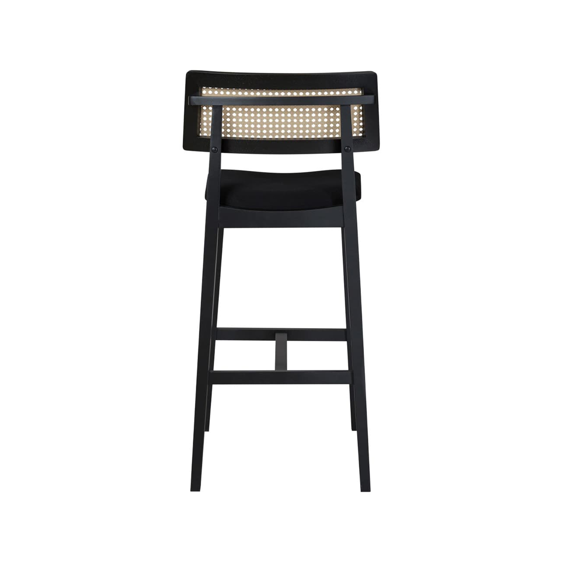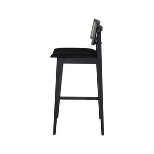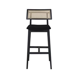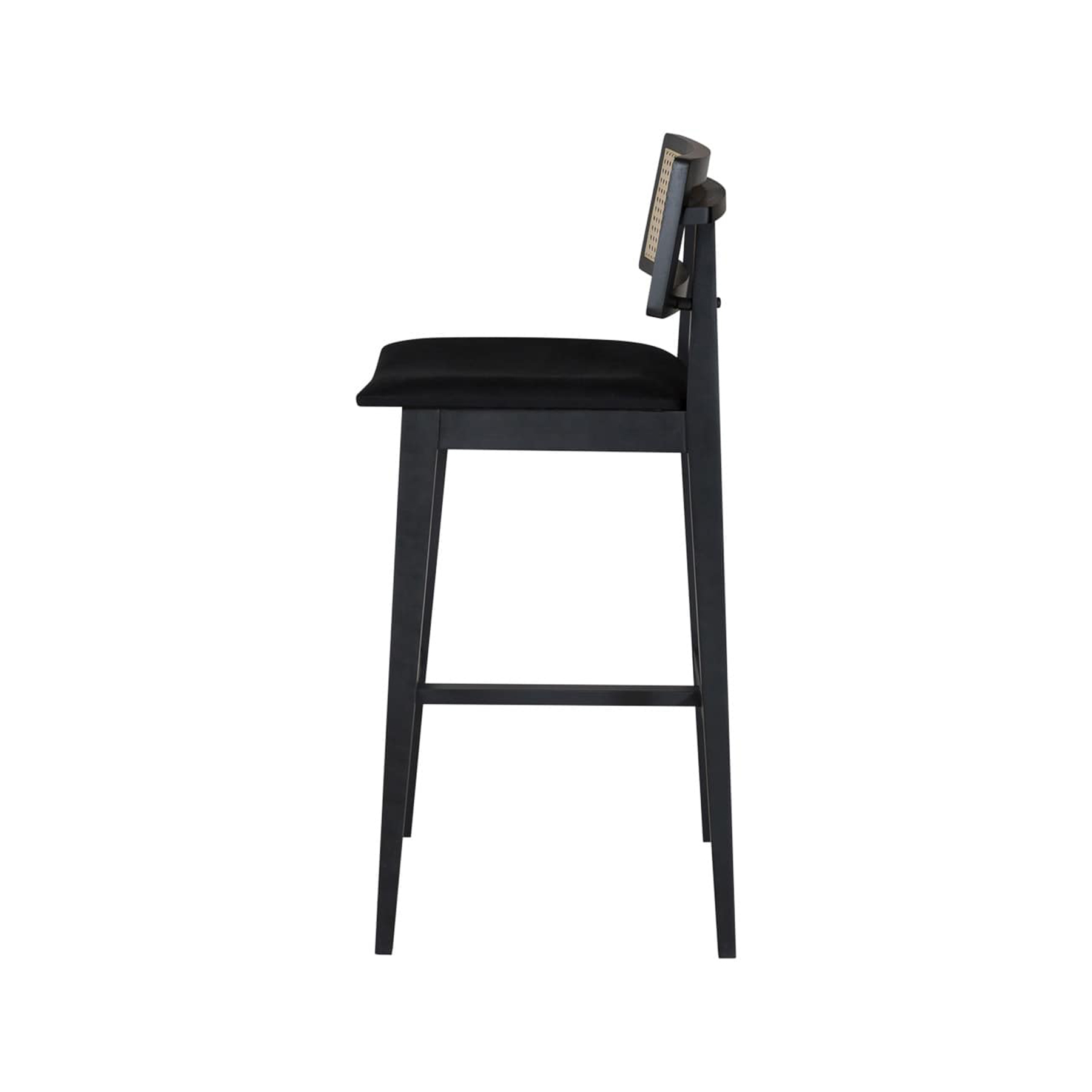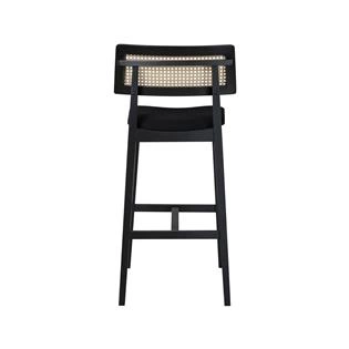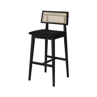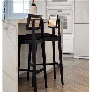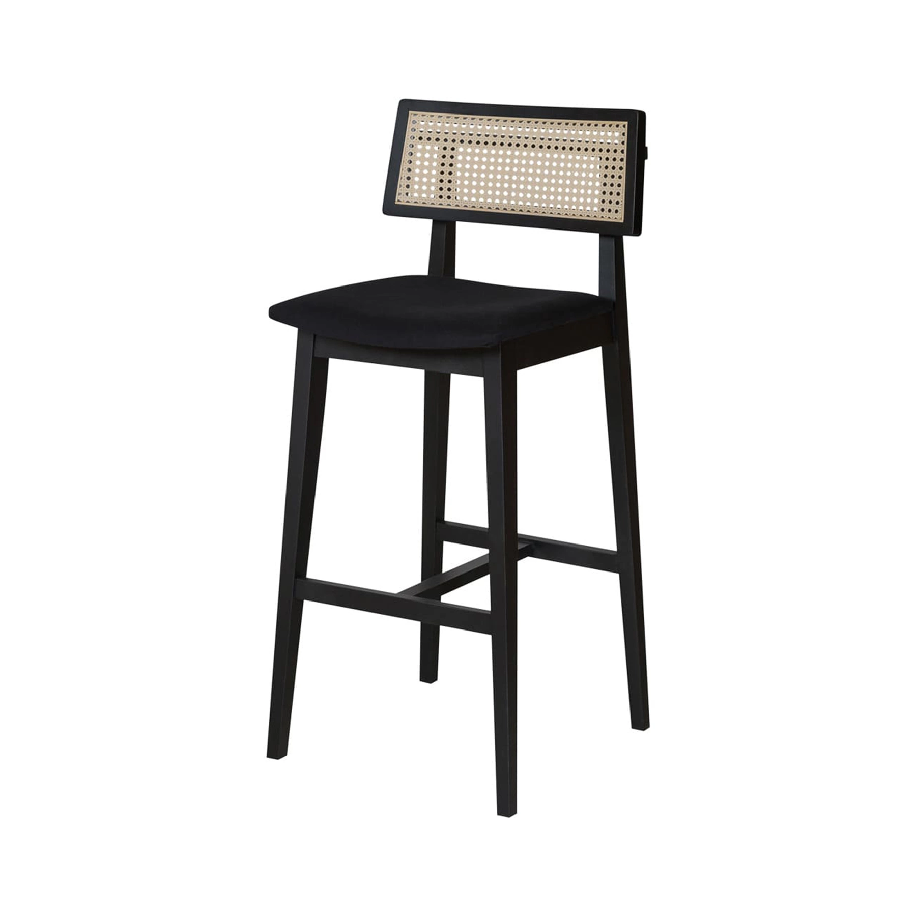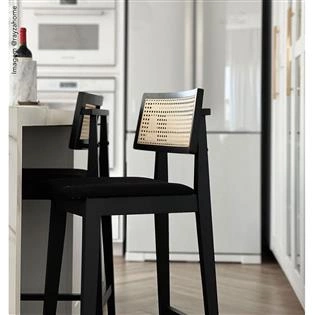 Estrutura produzida em madeira maciça tauari com tingimento ebanizado. Encosto com palha sintética tramada. Assento com estrutura em MDF, estofado com espuma D28 e tecido sarja preta 100% algodão. *Produto entregue montado.