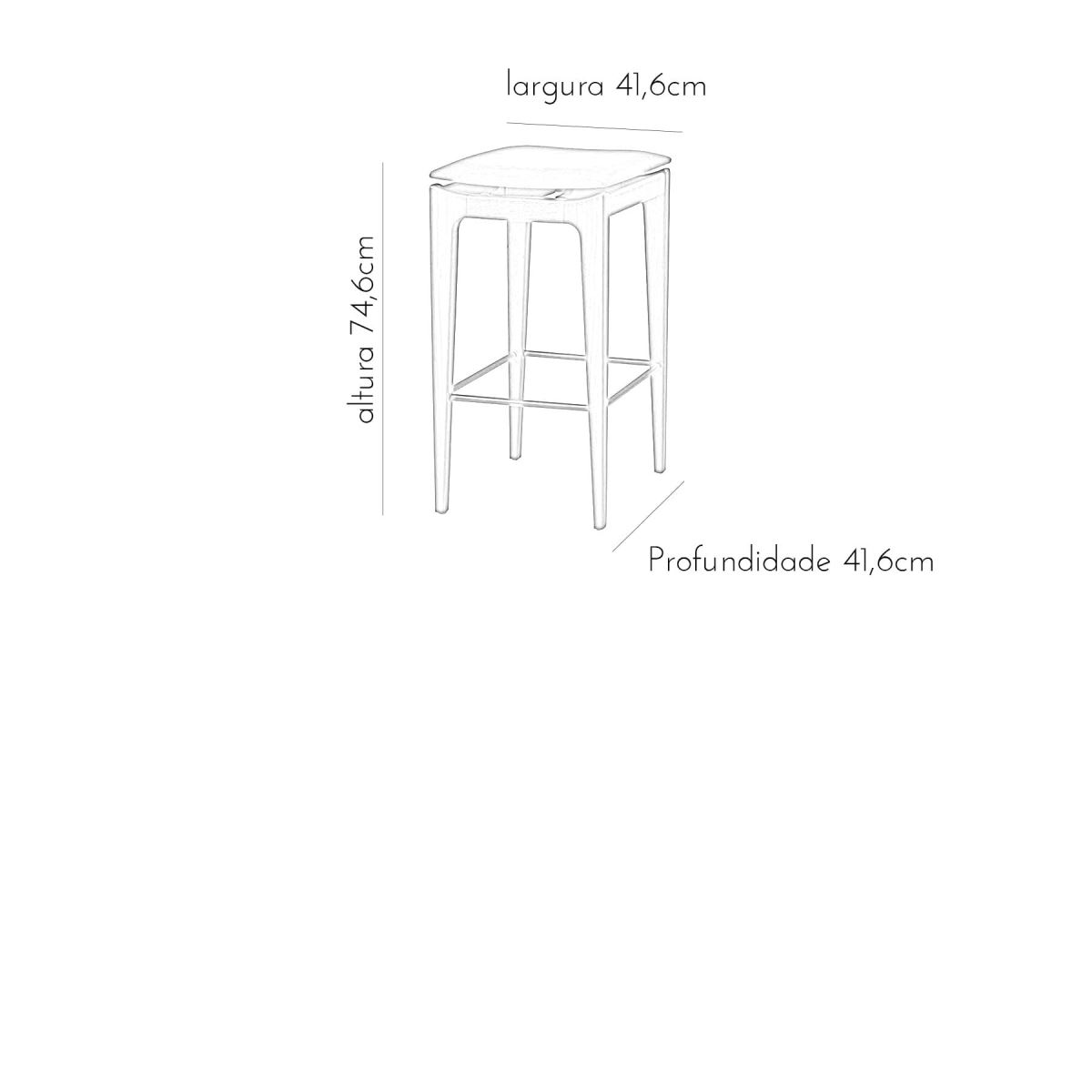 Estrutura produzida em madeira maciça liptus moveleiro com acabamento tingido. Assento em MDF estofado com espuma e tecido couro sintético. *Produto entregue montado.
