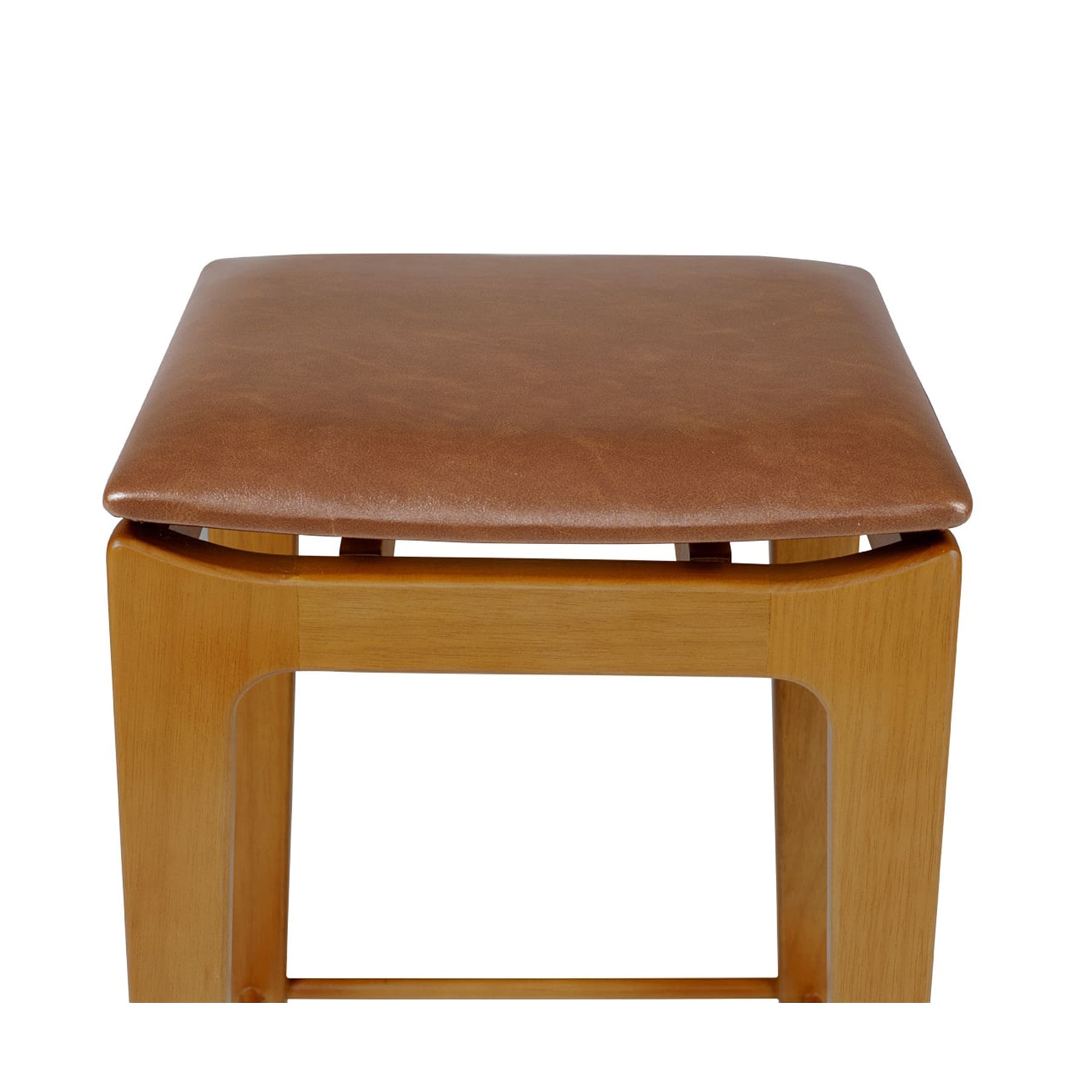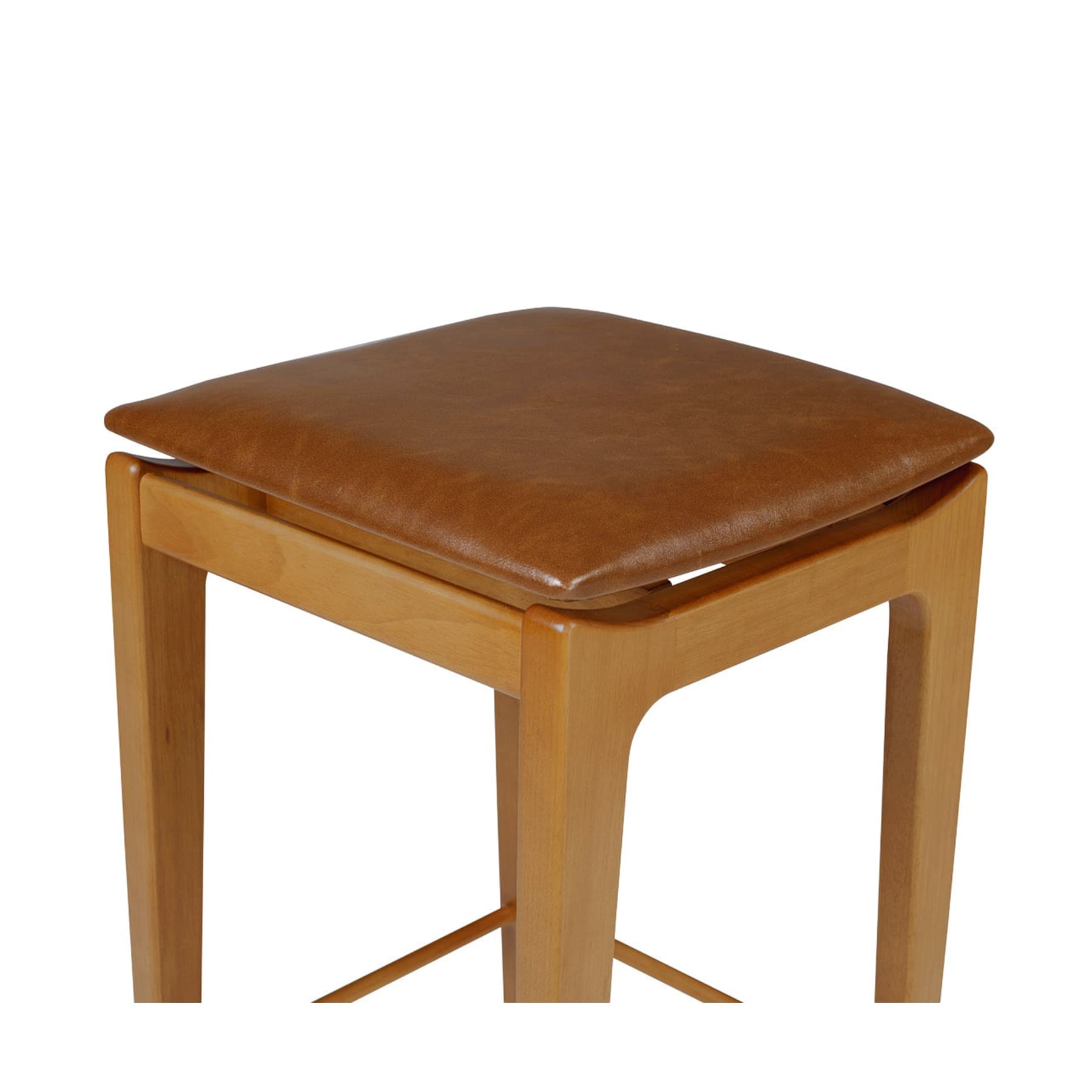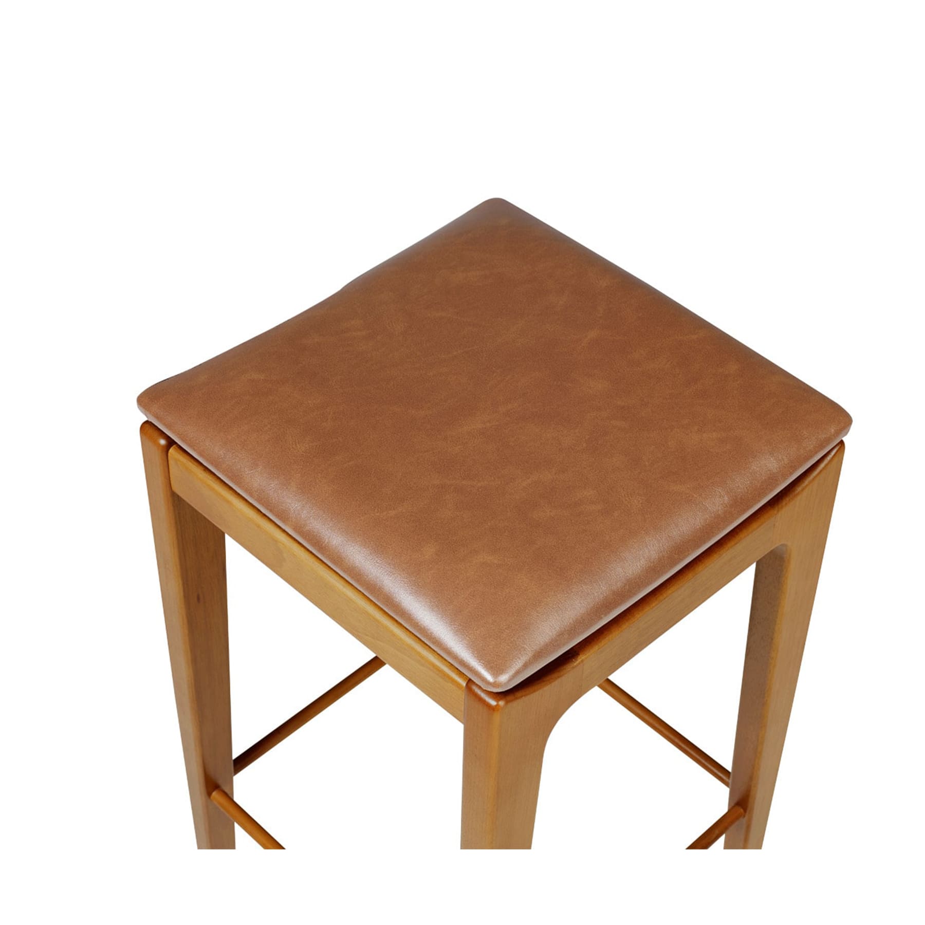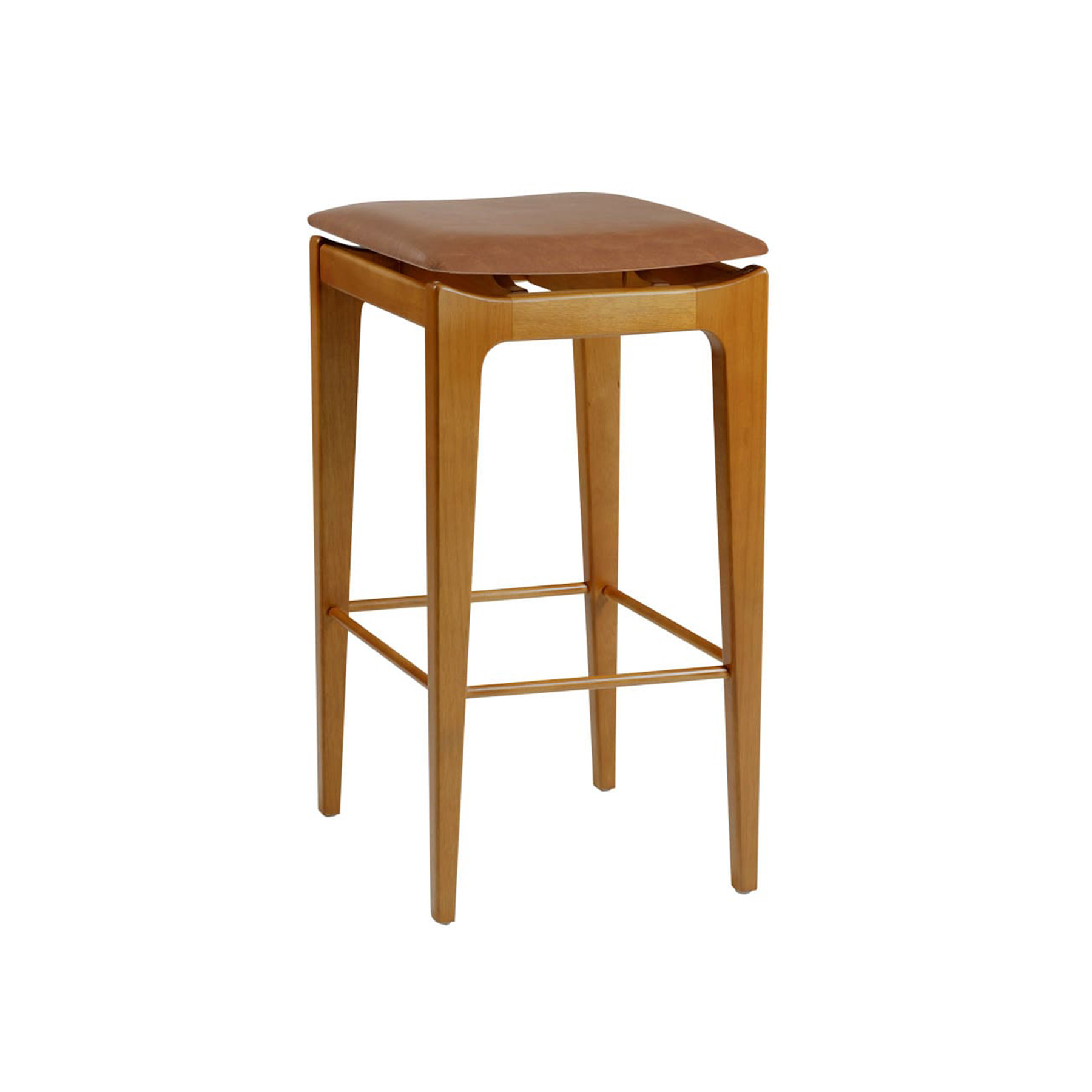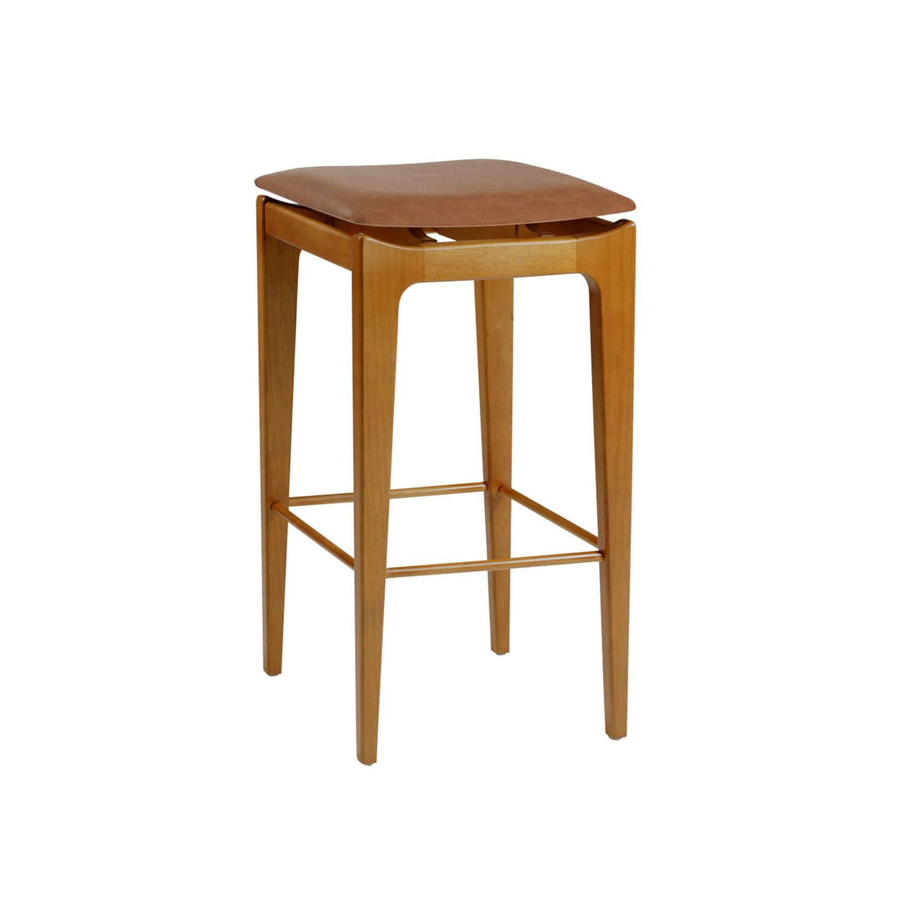banqueta quadrada em madeira maciça e couro caramelo tignes