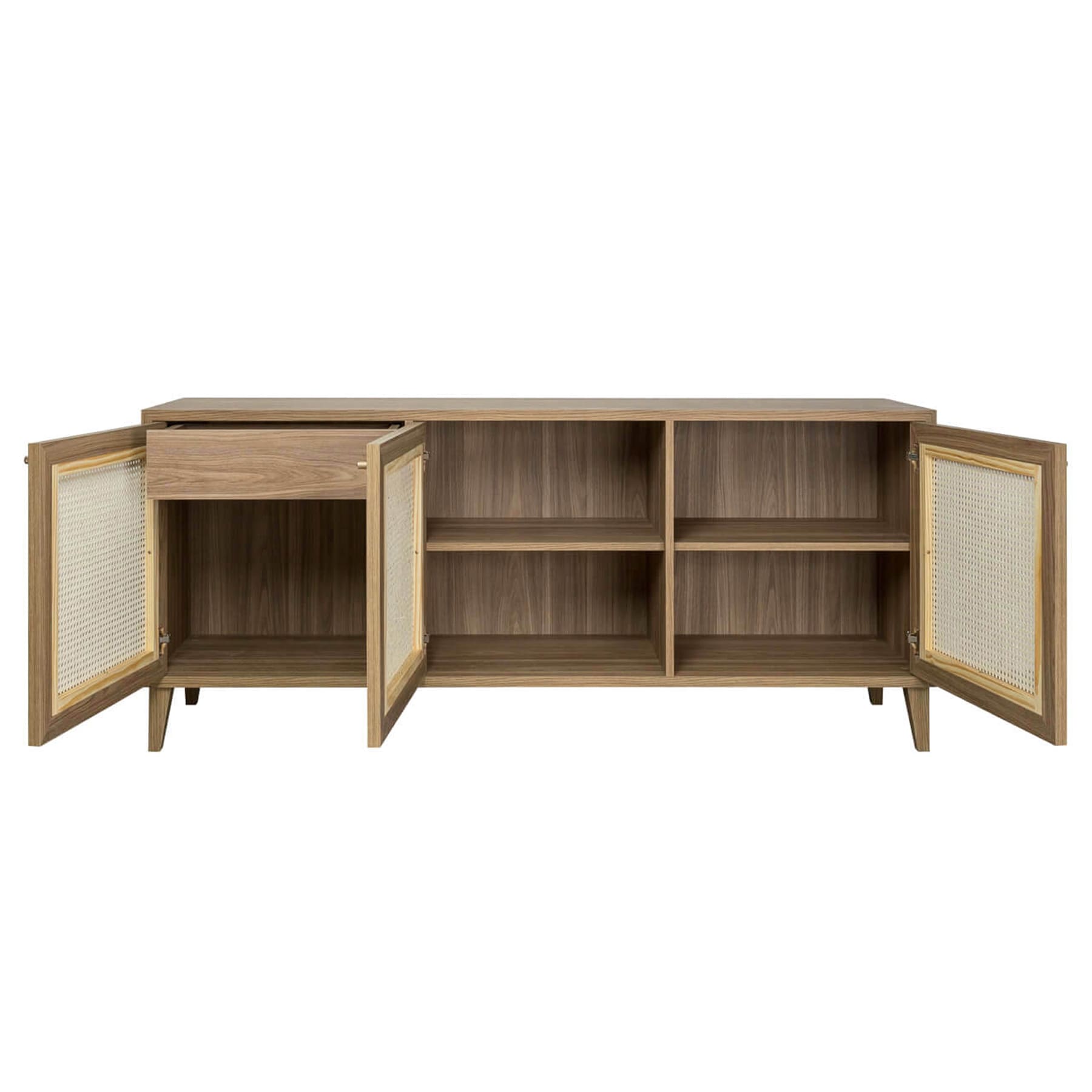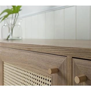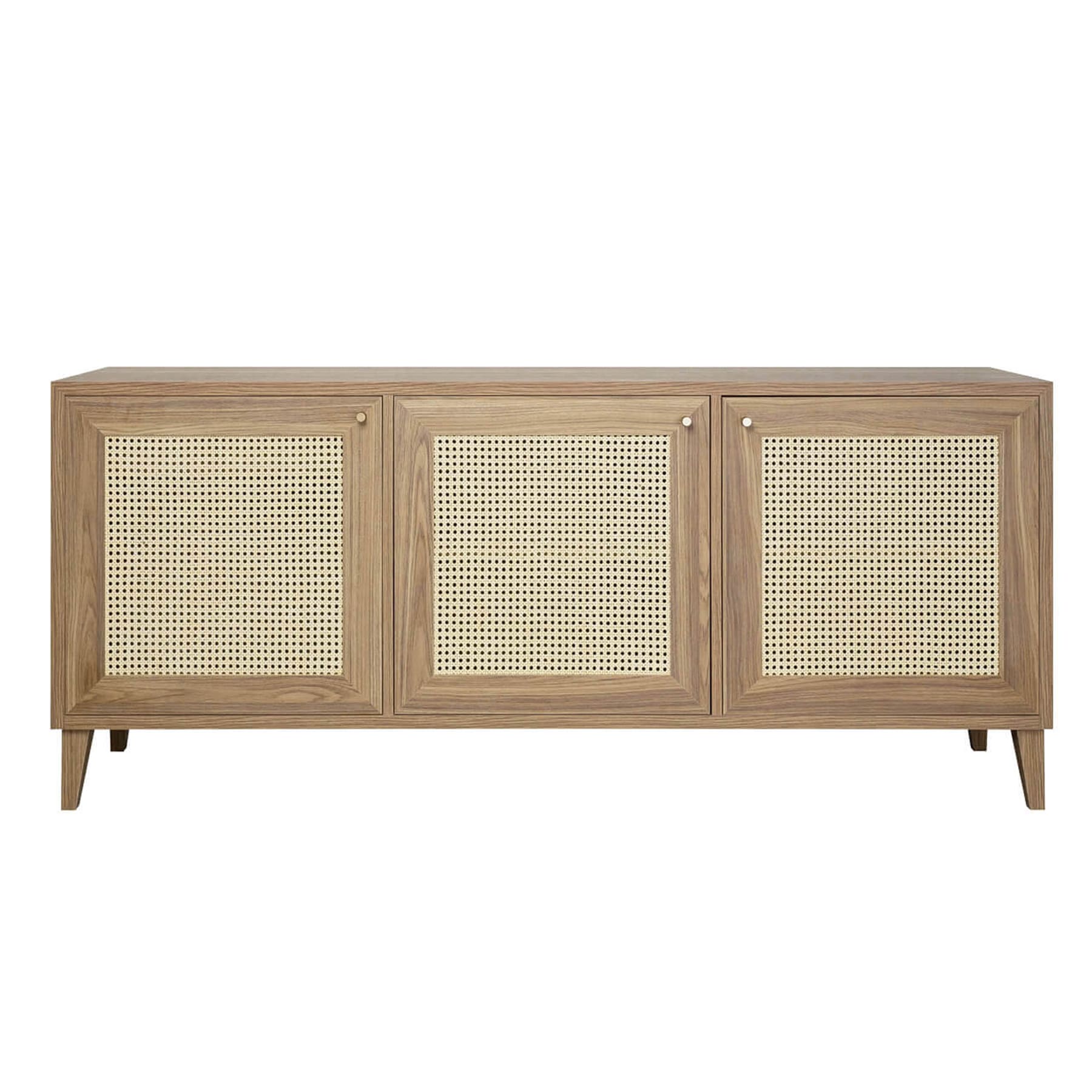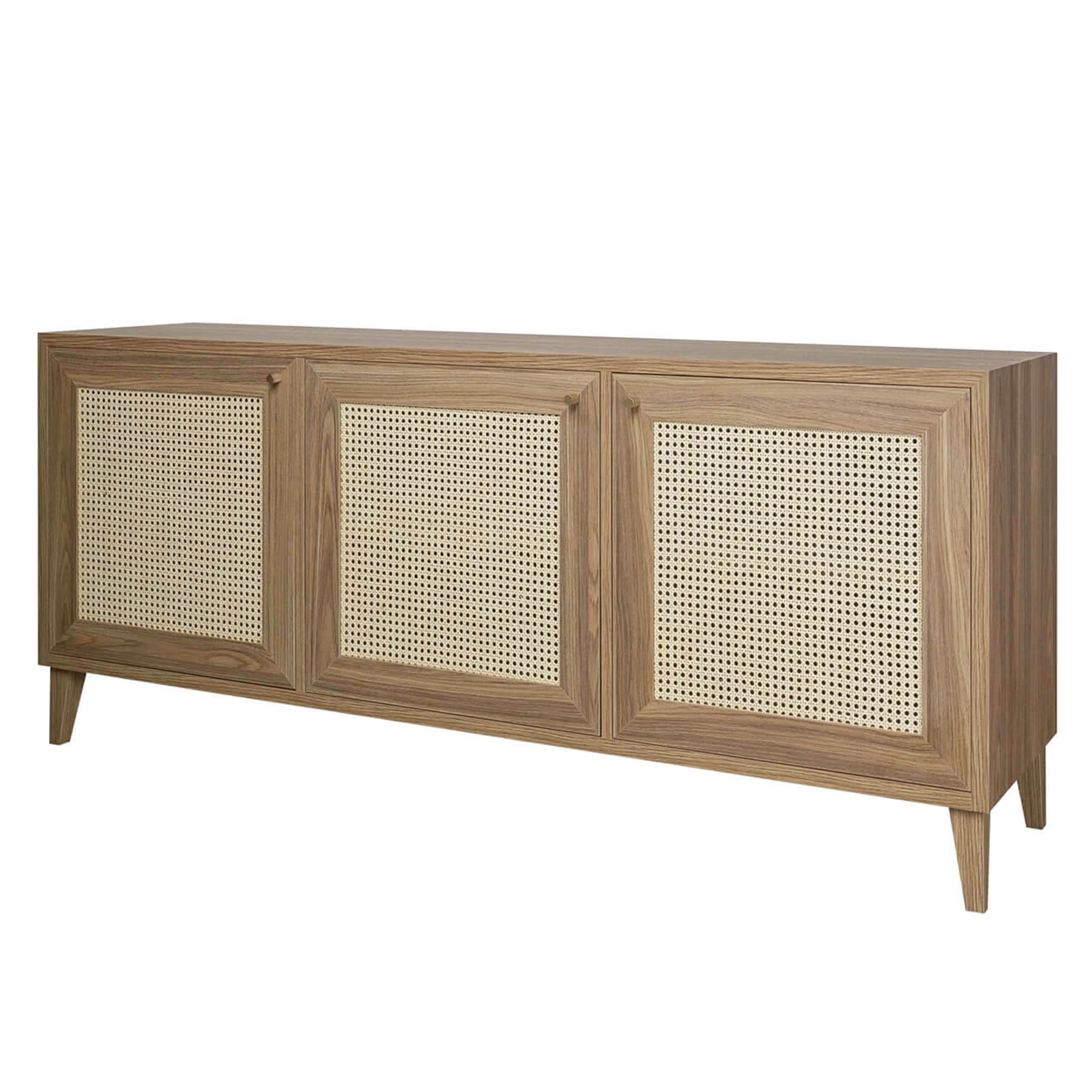 A sensação de aconchego que a palha trás aos ambientes com desenho moderno, adaptado aos ambientes contemporâneos. O buffet villa cheio de detalhes encantadores, complementam o visual da palha com perfeição. As 3 portas e a gaveta do buffet fornecem muito espaço de armazenamento.