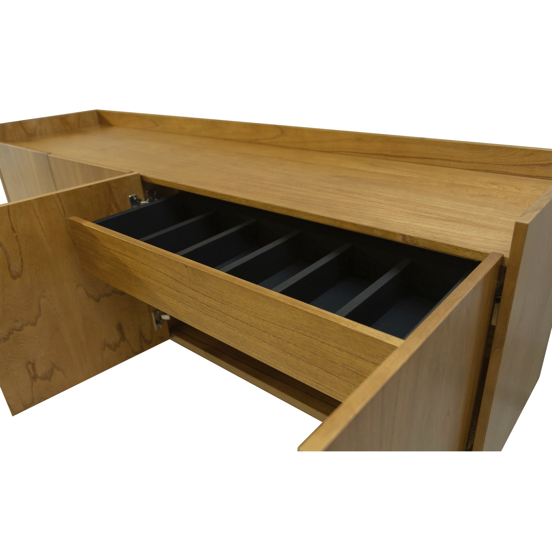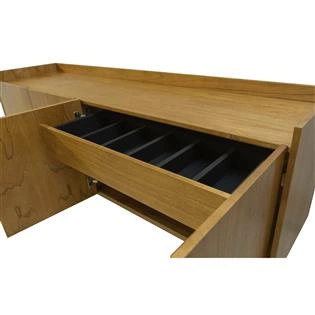 Um buffet com desenho contemporâneo e simples, que traz acabamento sofisticado aos ambientes. A madeira natural de cinamomo remete ao natural, com os veios destacados, dando origem à peças únicas