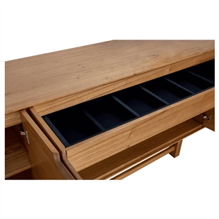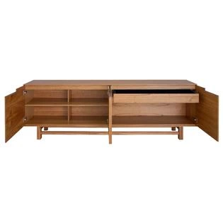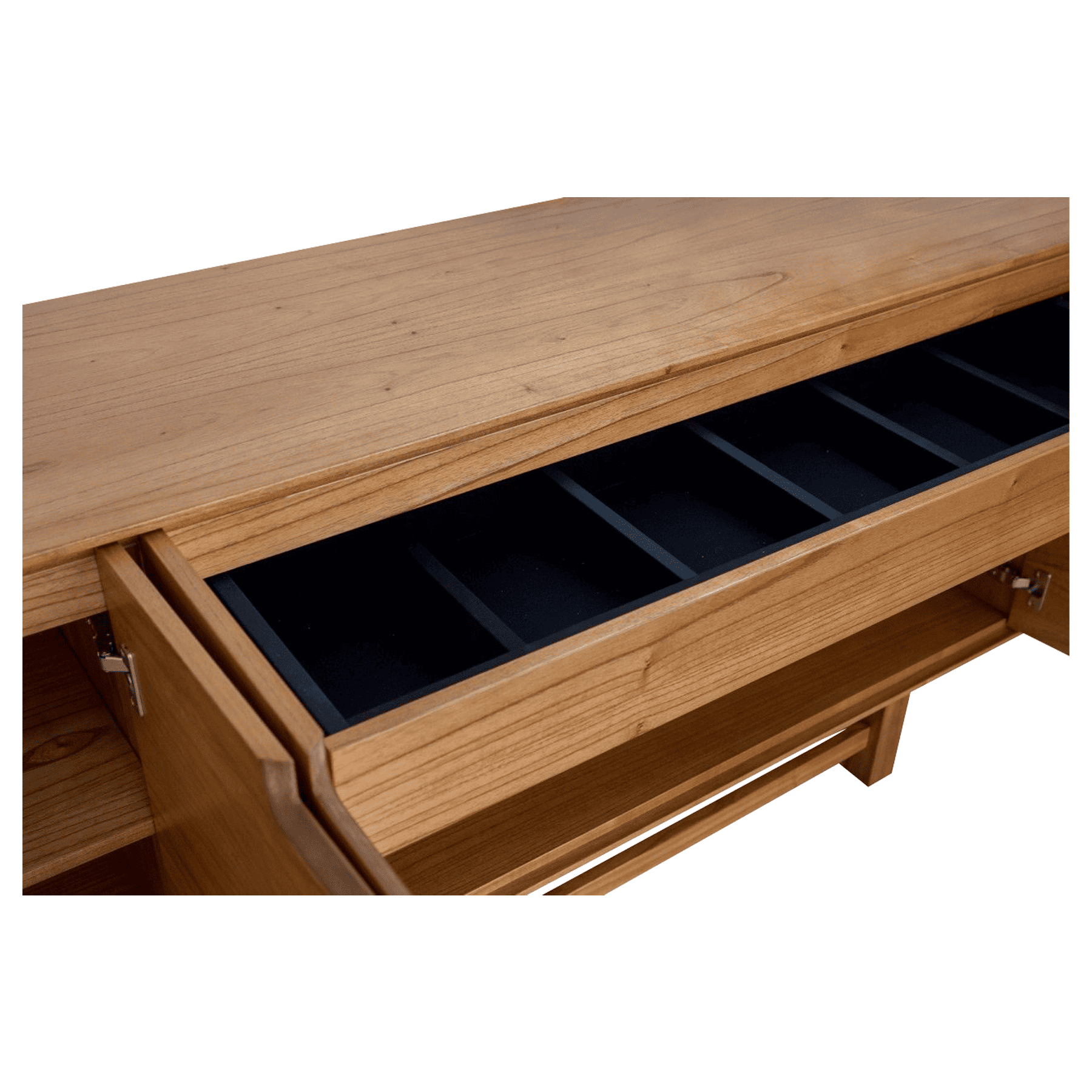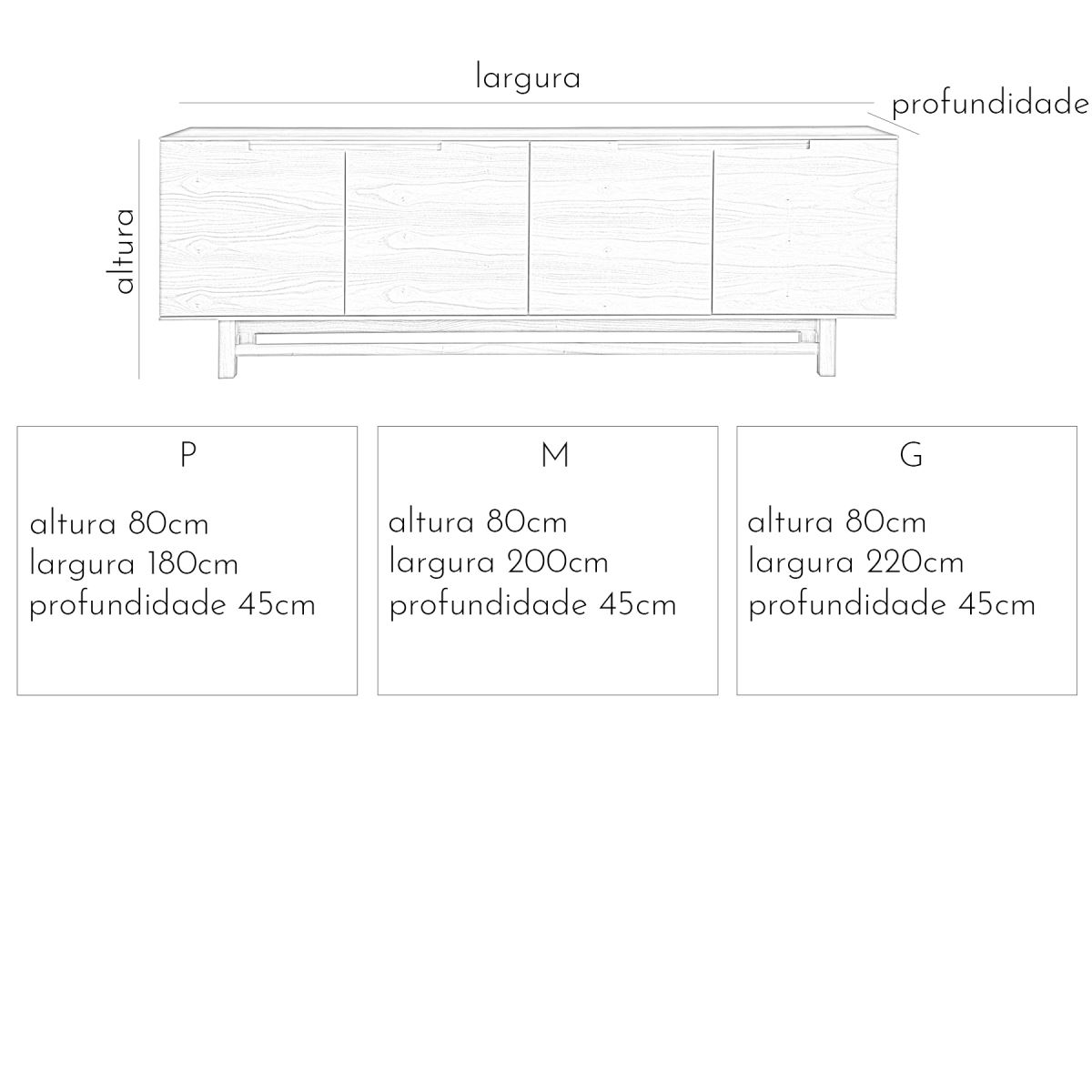 Um buffet com desenho moderno e simples, que traz acabamento sofisticado aos ambientes. Os pés em madeira têm desenho contemporâneo. A madeira natural de cinamomo remete ao natural, com os veios destacados, dando origem à peças únicas.