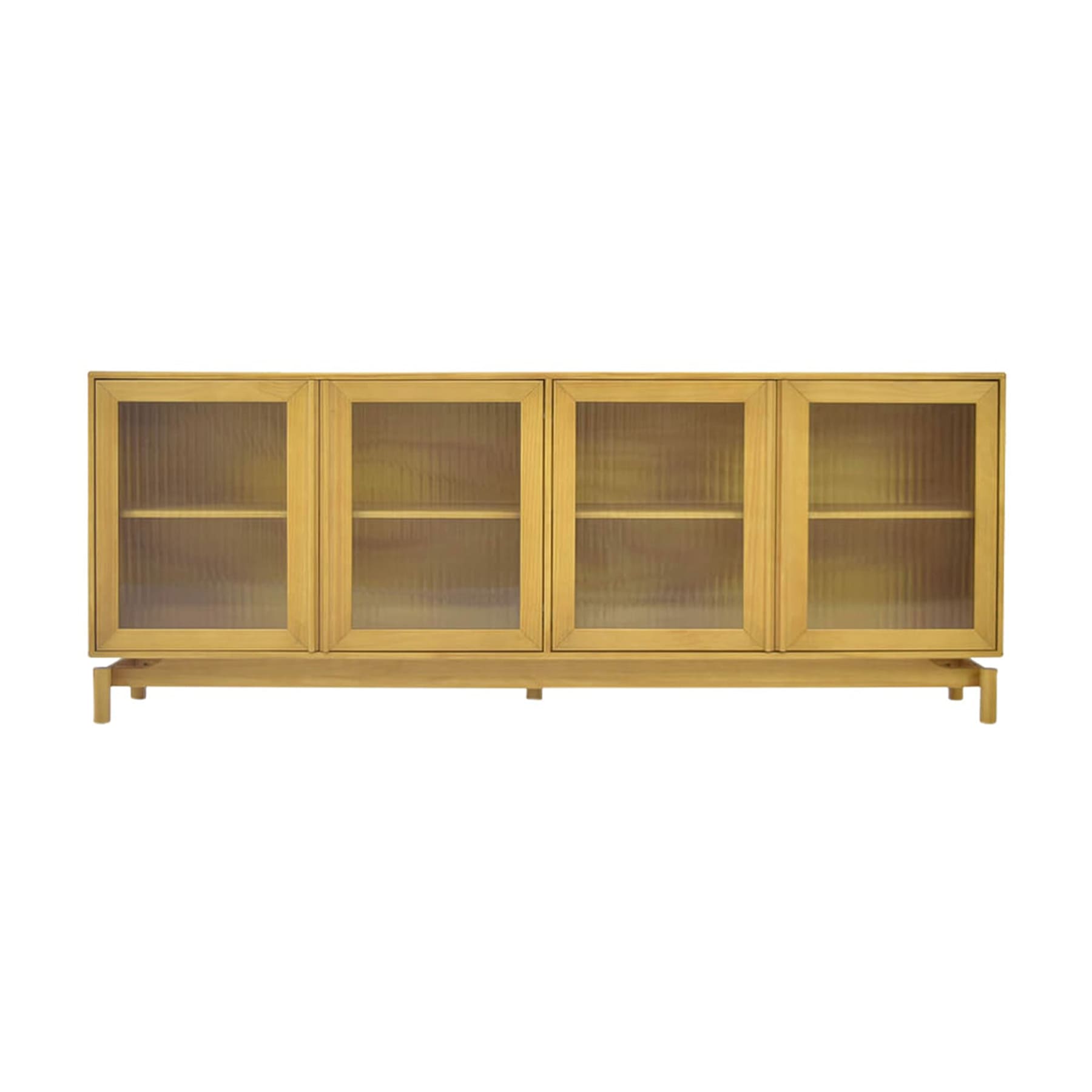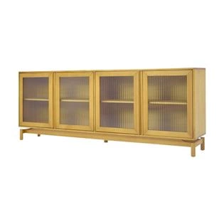 A madeira maciça ganha forma e acabamento moderno com o vidro canelado no buffet bilbao. Muito espaço de armazenagem em um complemento com desenho que combina muito bem as tendências de decoração contemporânea.
