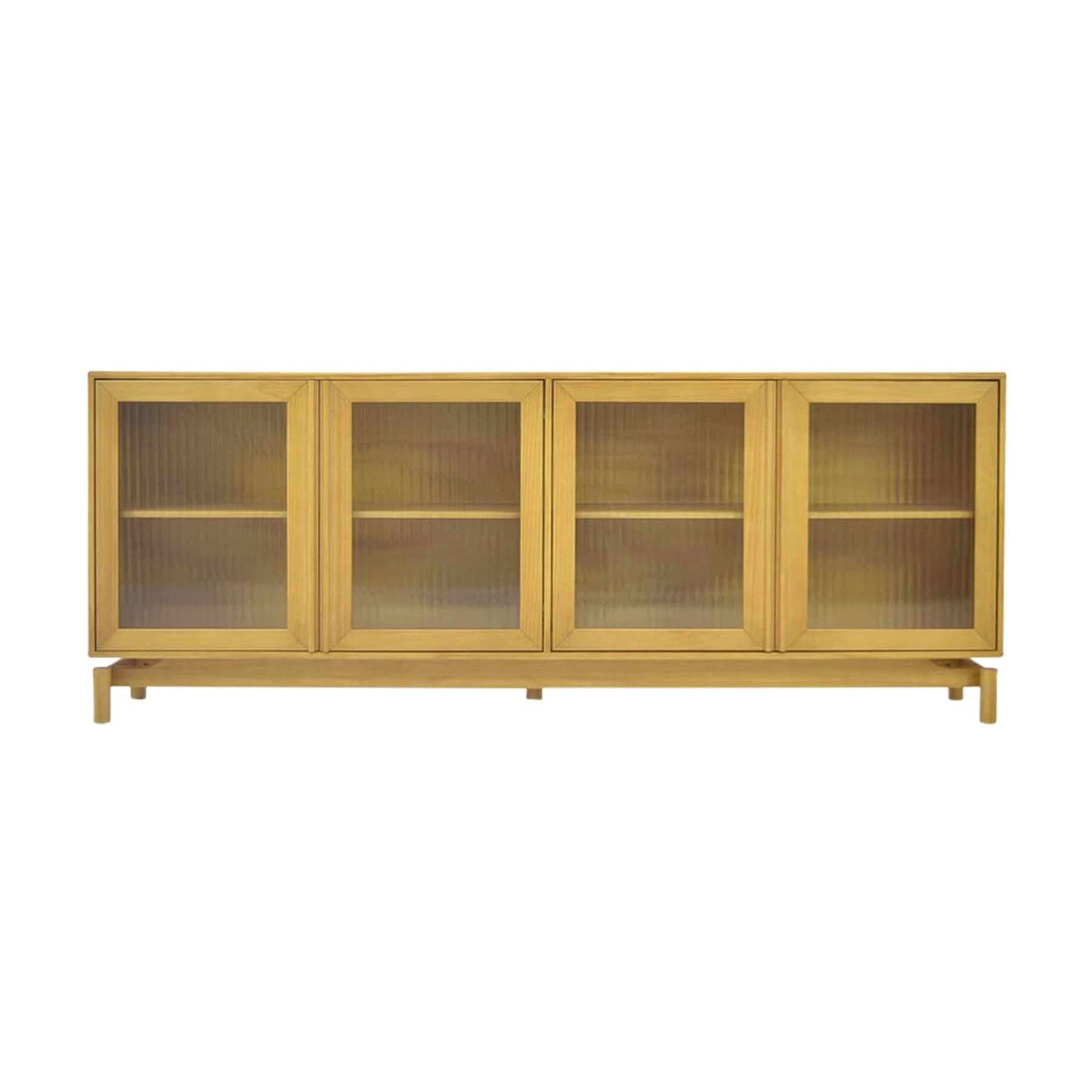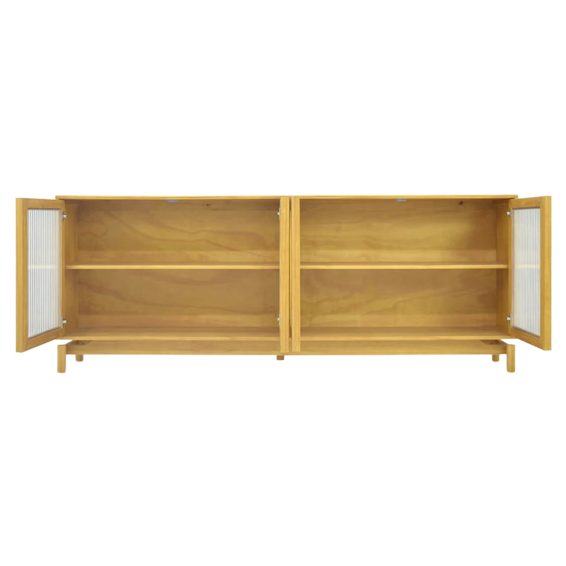 Madeira maciça taeda. Portas com vidro canelado. Puxadores em madeira integrados as portas.*ATENÇÃO: Produto entregue montado. Nossa entrega não inclui subidas por escadas e/ou içamento. Verifique as medidas de portas e elevadores para possibilitar a entrega.