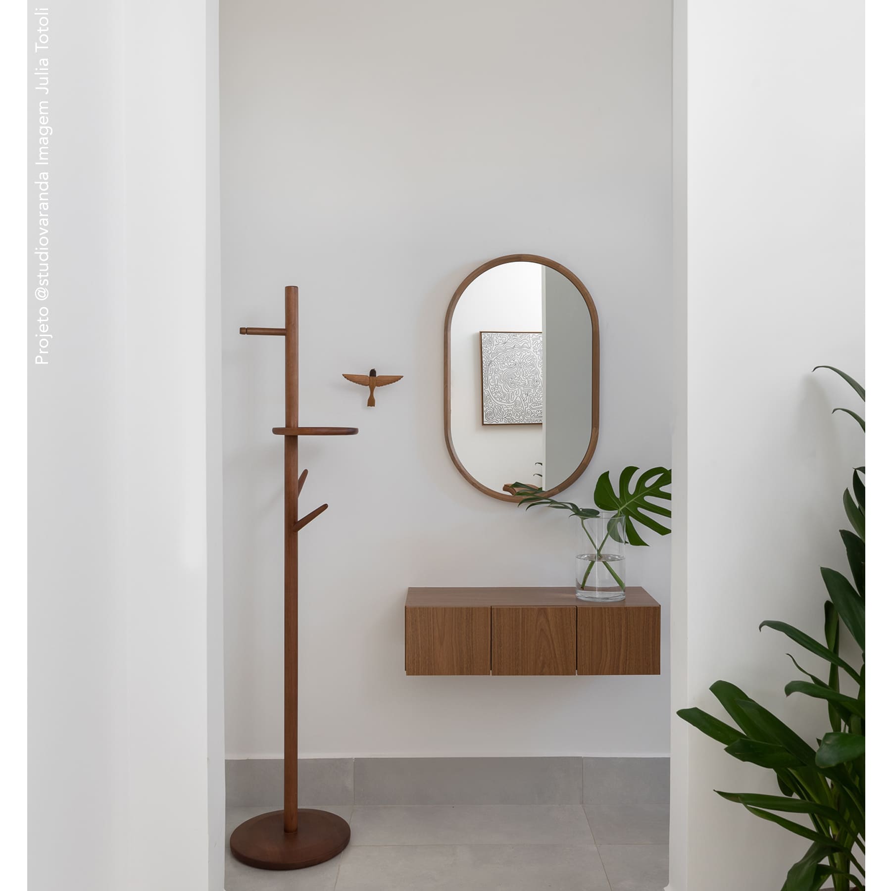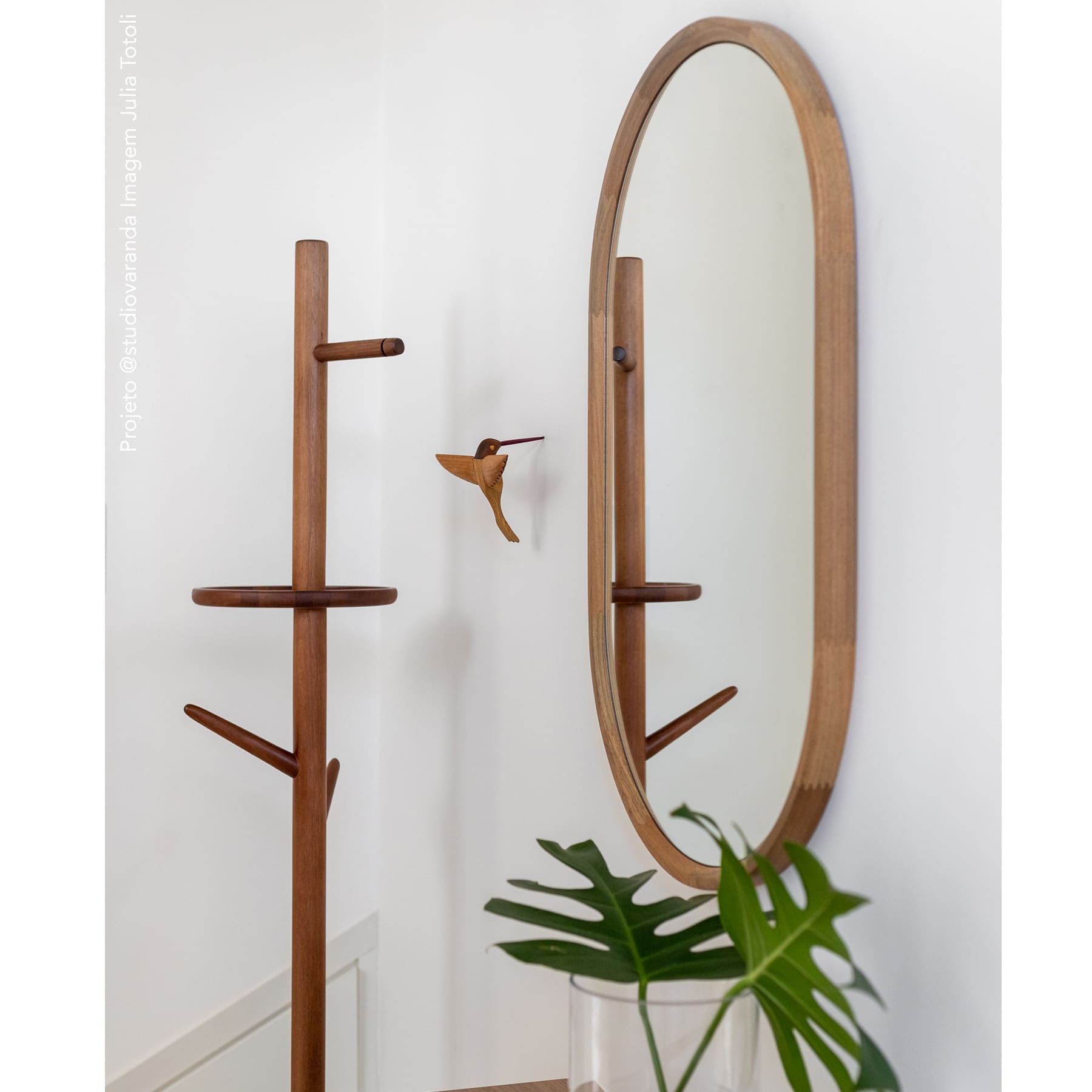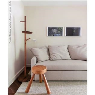 Produzido em centro de usinagem de alta precisão em madeira maciça, é um produto de qualidade superior em termos de desenho e resistência. Os dois tipos de gancho e a prateleira tornam a peça o suporte perfeito para objetos no hall de entrada, no escritório, quarto, closet, etc.
