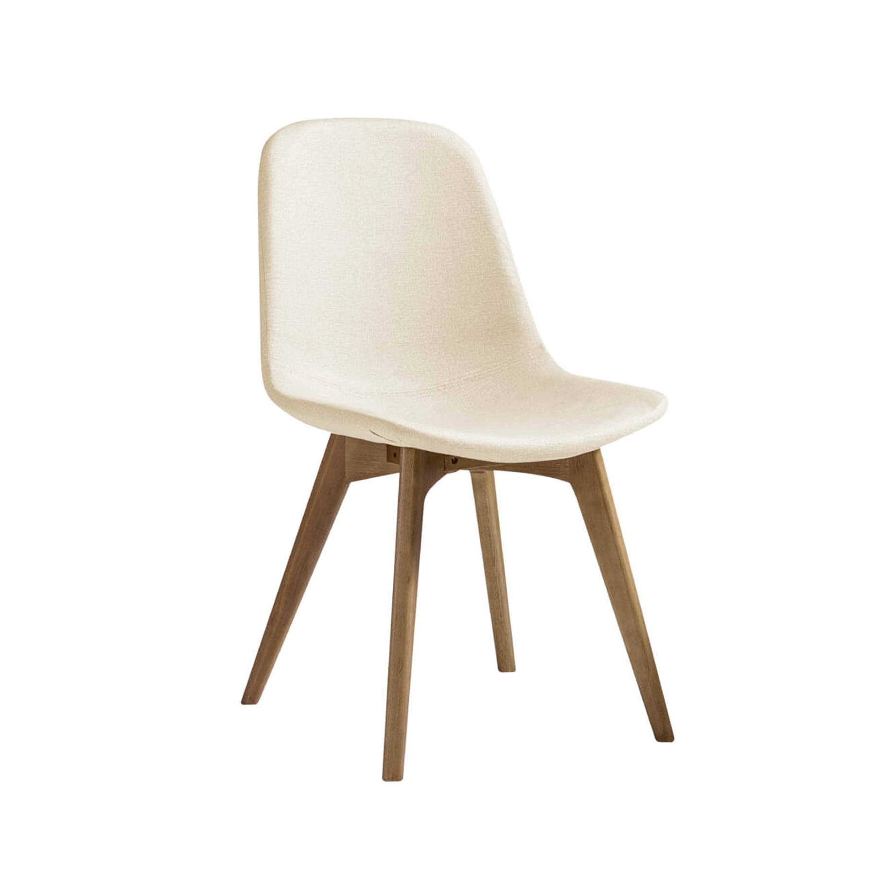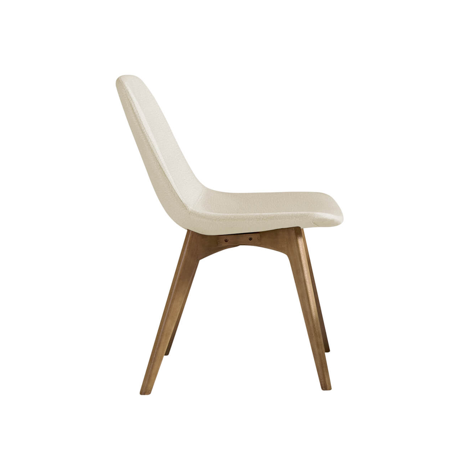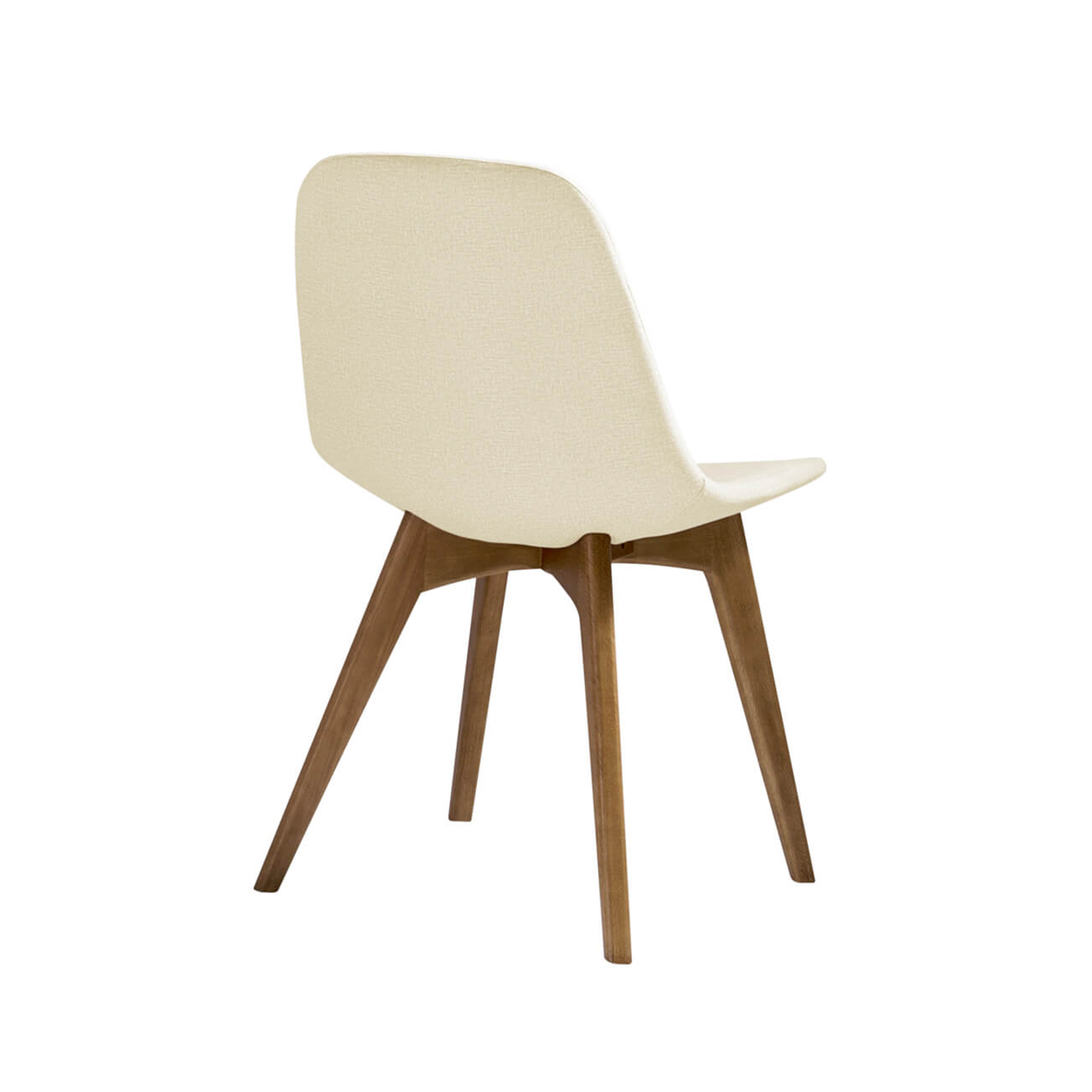 Concha em madeira compensado moldada estofada com espuma D28 de 30mm e tecido. Pés em madeira maciça jequitibá tingida. *Produto entregue montado.