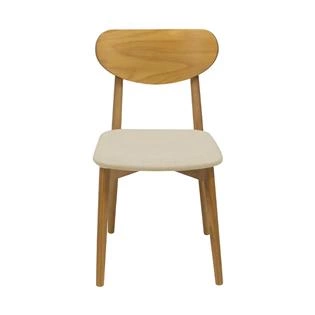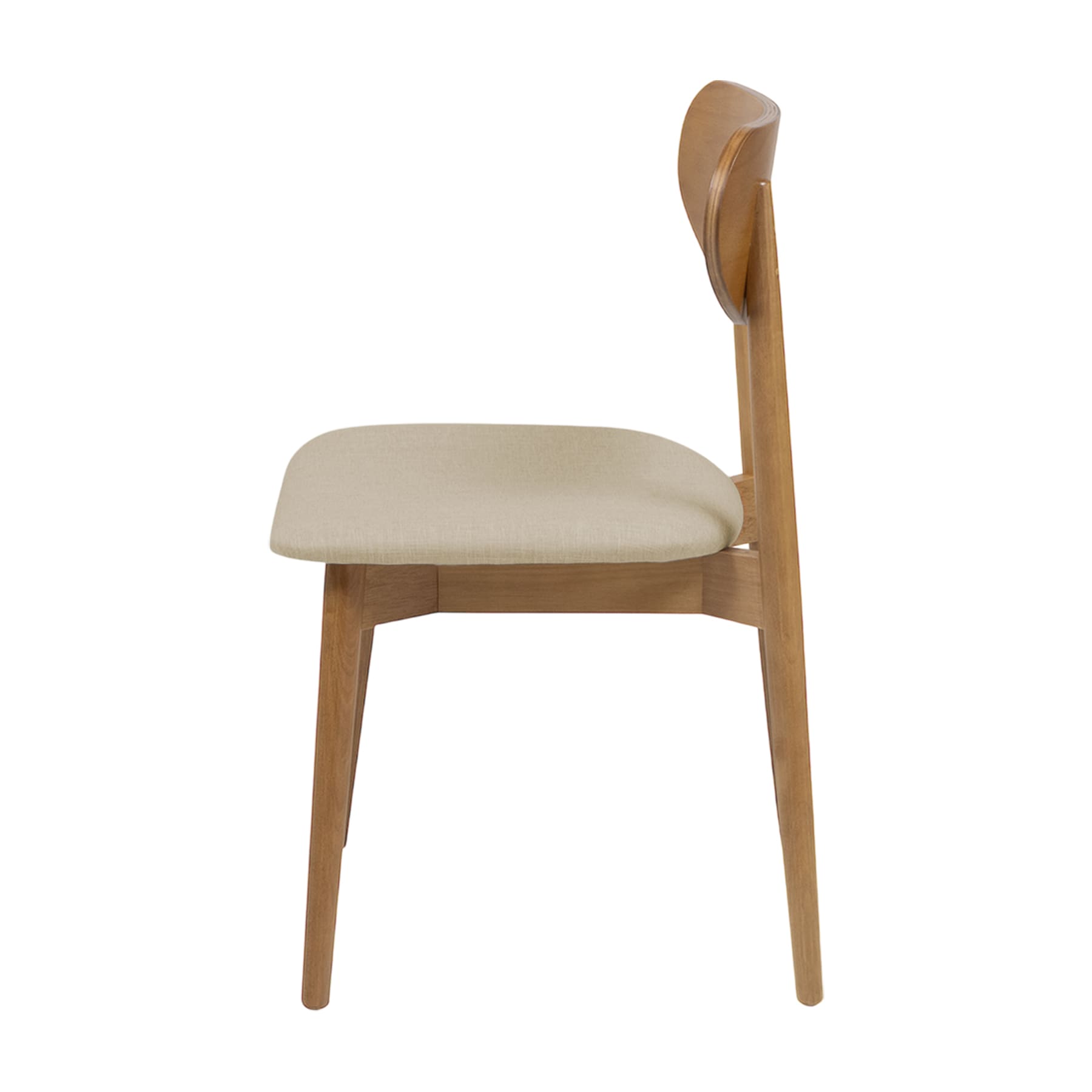 Estrutura em madeira maciça. Encosto em madeira multilaminada curva, revestida com lâmina de madeira natural. Assento em MDF estofado com espuma D28 e tecido. *Produto entregue montado.