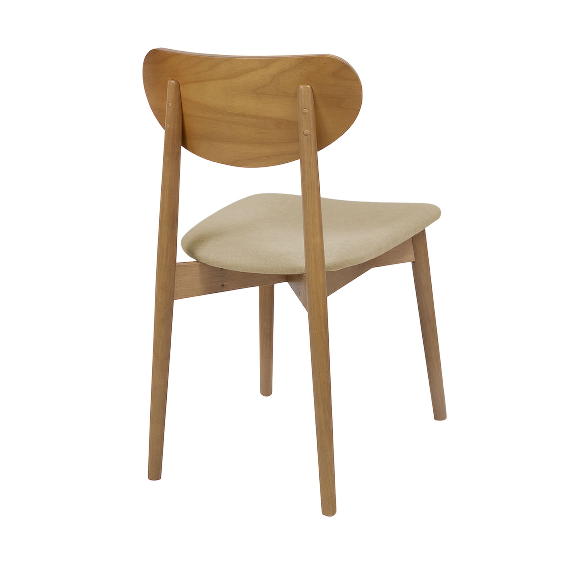 A cadeira alba tem design moderno e minimalista, produzida em madeira maciça. O formato arredondado do encosto confere conforto e estética ao produto. As pernas com uma leve inclinação garantem estabilidade e um perfil elegante e funcional.