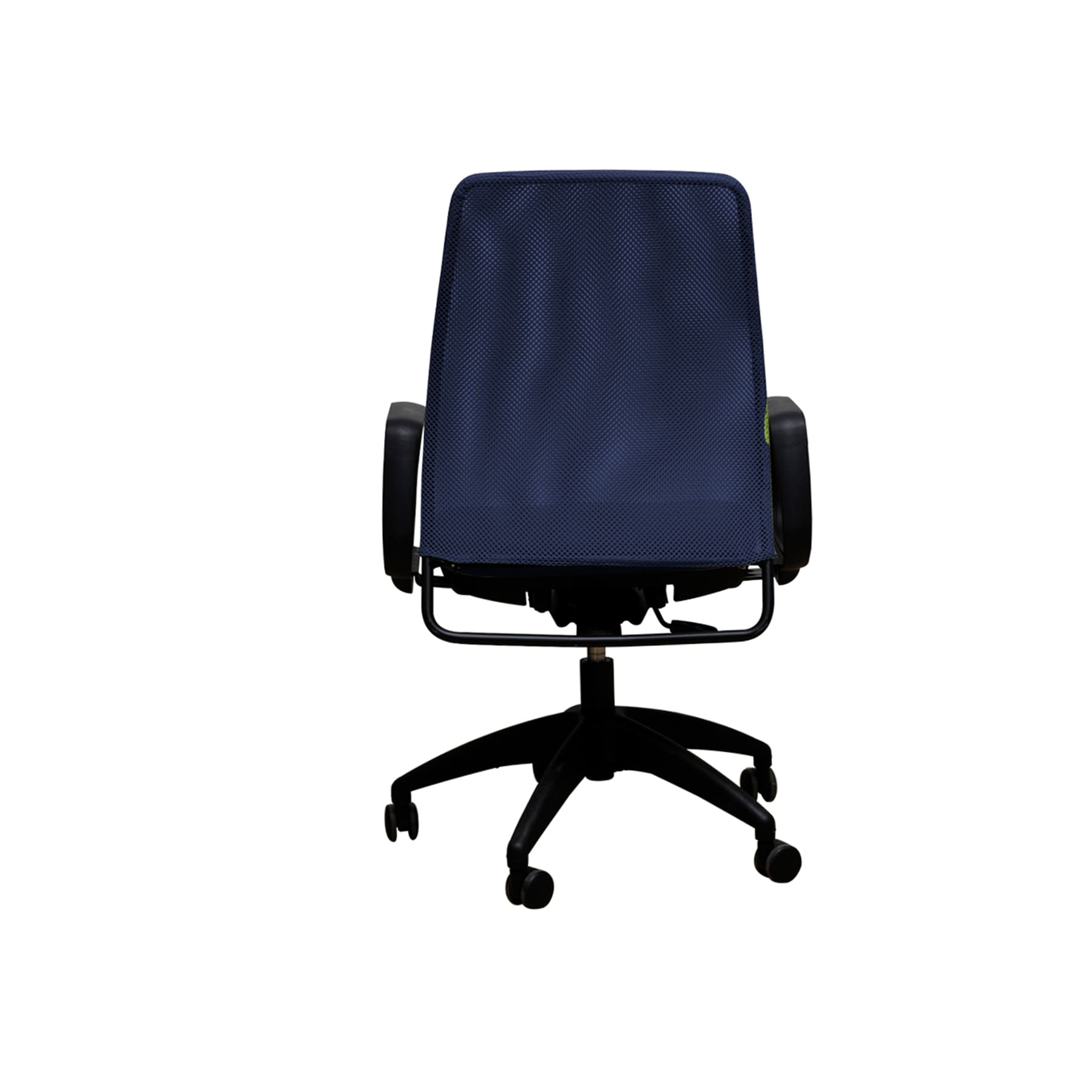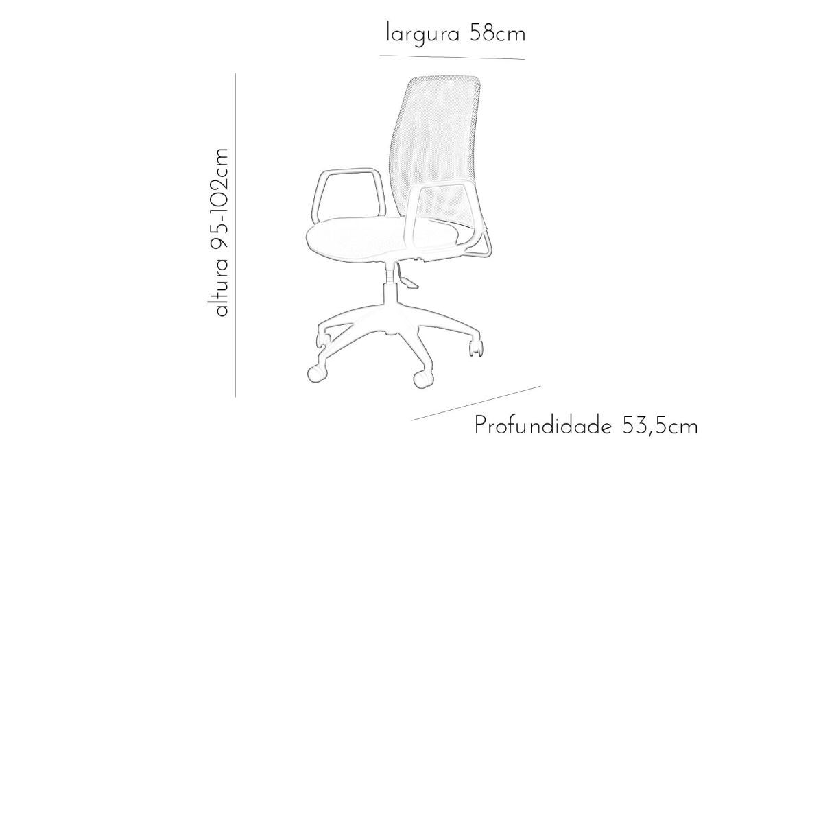Fabricada no Brasil com tecnologia italiana. Base produzida em nylon com 5 rodas em nylon e polipropileno. Coluna e clindro em aço com regulagem de altura a gás. Assento estofado em espuma e tecido crepe extra resistente. Encosto com estrutura em aço carbono pintado na cor preta e coberto por tela. Composição tecido e tela: 100% poliéster.