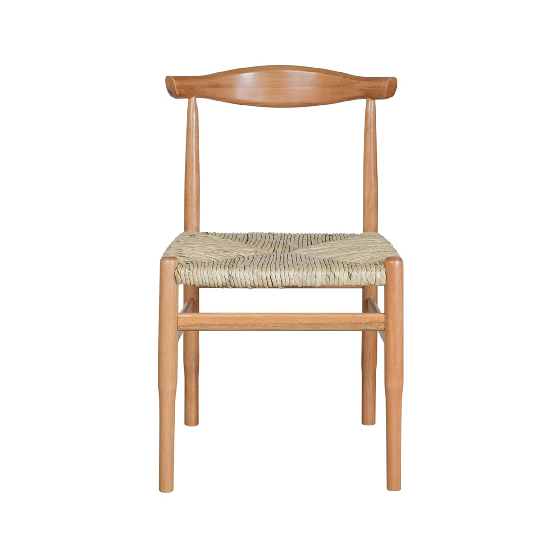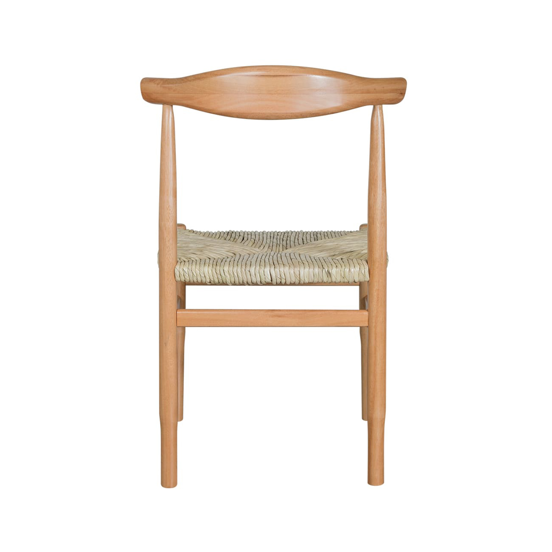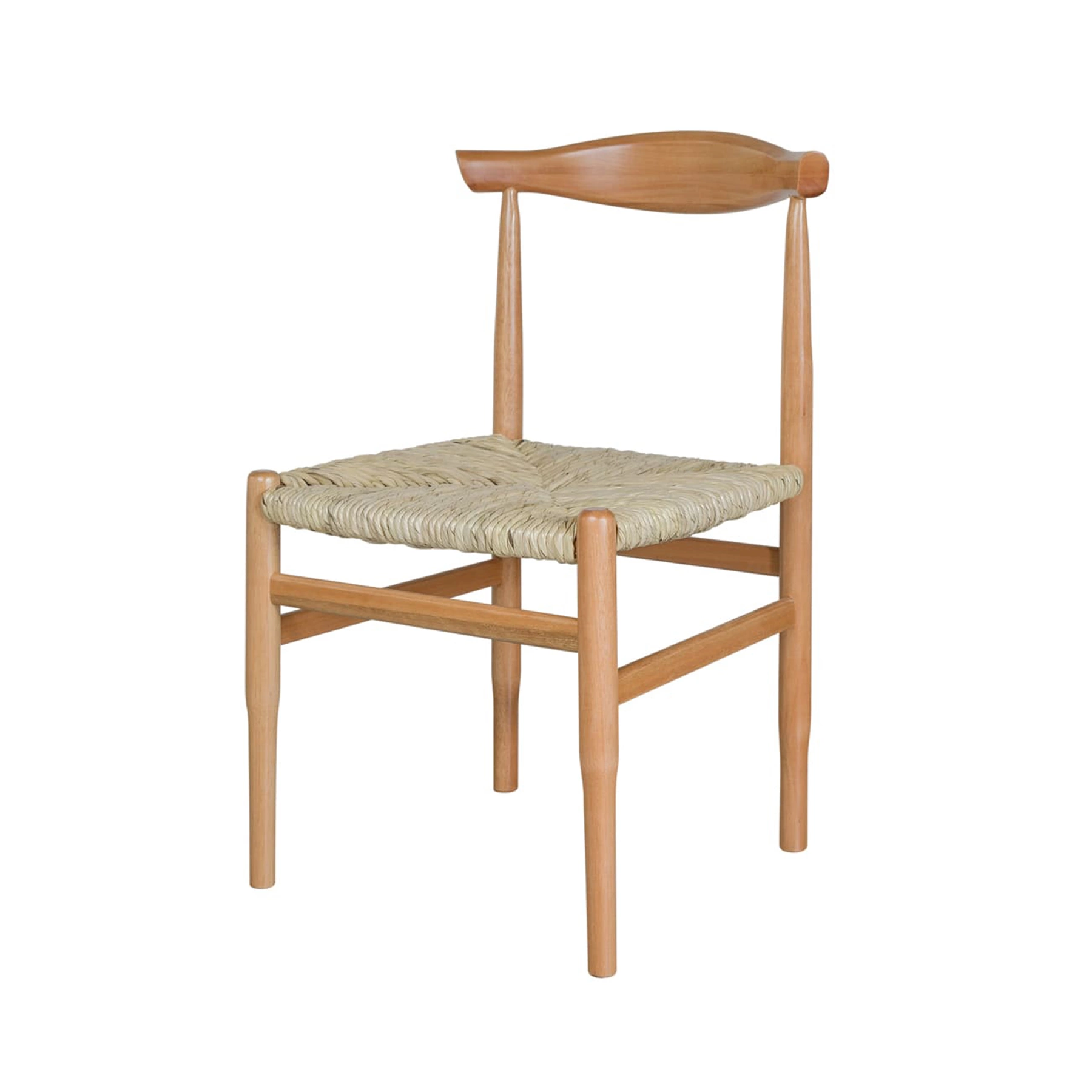 Estrutura em madeira maciça de eucalipto tingida com verniz fosco. Assento e encosto em palha natural de fibra de coqueiro e palmeira, cozidas e secas em estufa, trançadas a mão (as folhas são extraídas uma a uma das plantas para crescerem novamente). *Produto entregue montado.