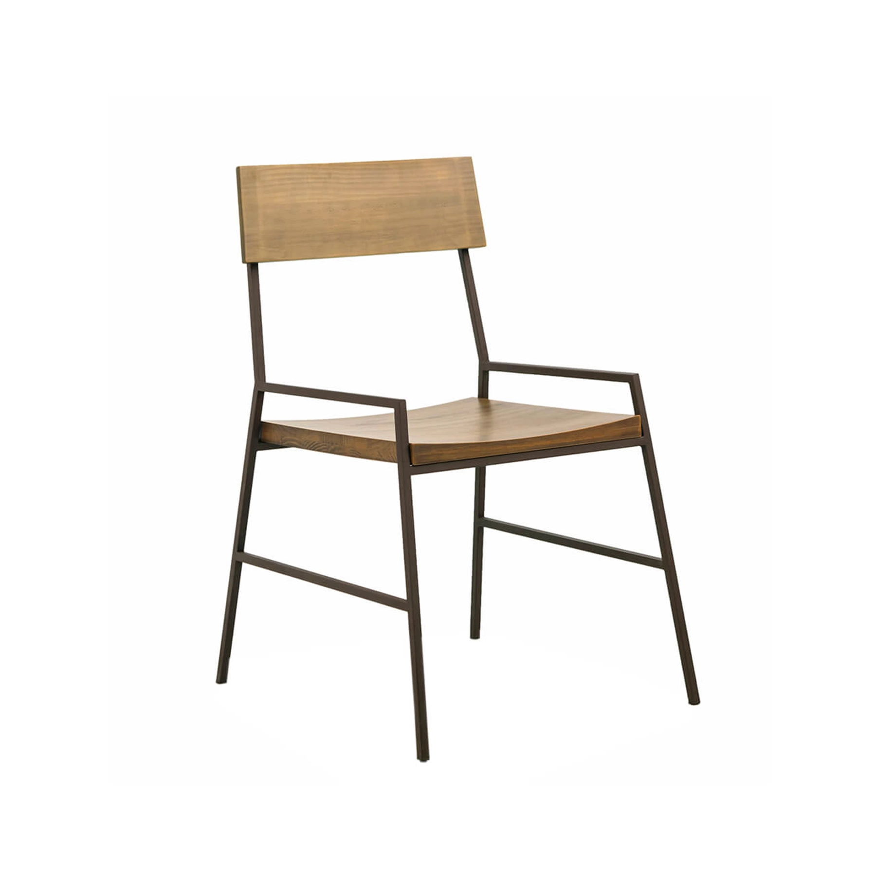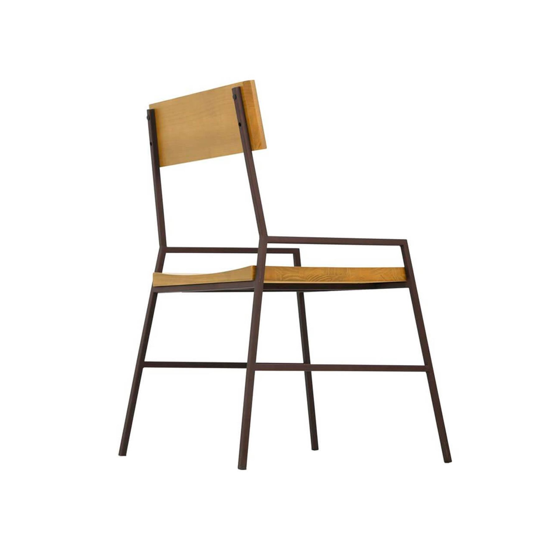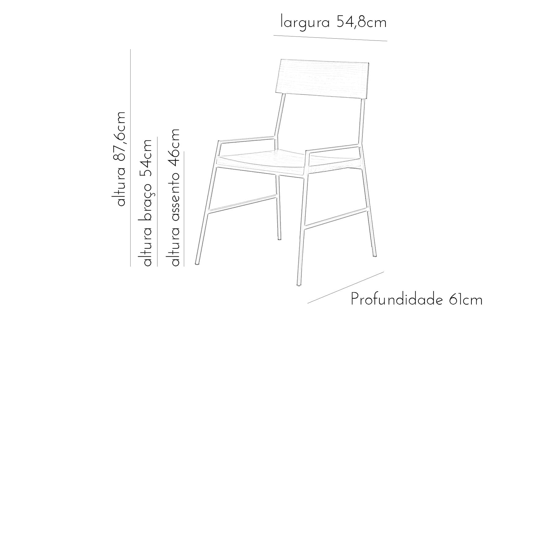A cadeira mescla mistura dois elementos com ares naturais e modernos: a madeira maciça e o aço corten. A cadeira é uma opção excelente para adicionar modernidade. O assento e encosto em madeira curvada proporciona conforto na medida certa.
