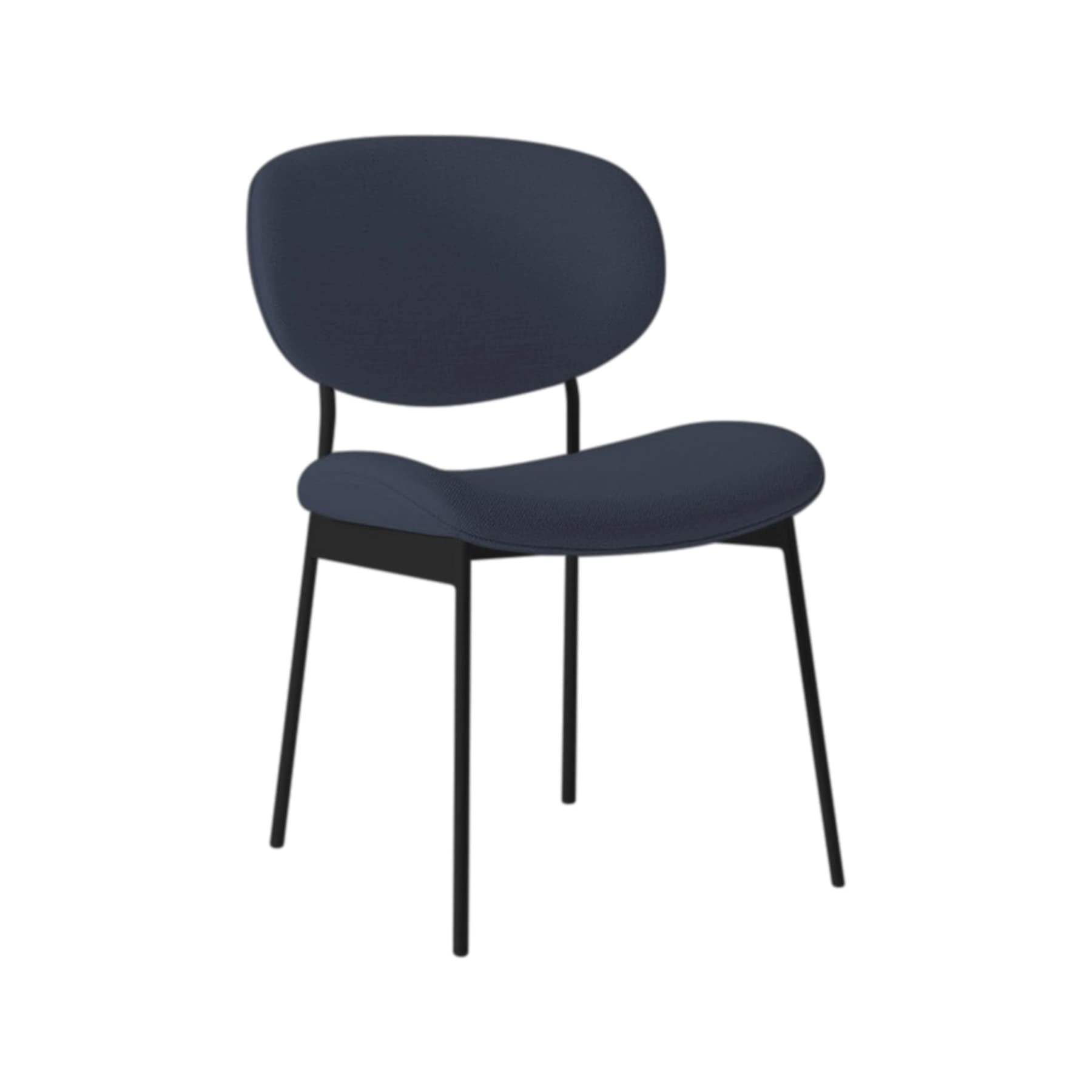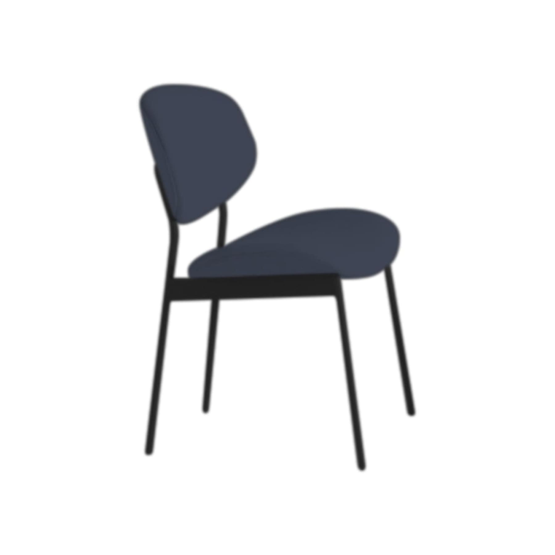Estrutura em aço carbono com pintura epóxi. Encosto e assento em madeira multilaminada curva estofada com espuma D28 e tecido. *Produto entregue montado.
