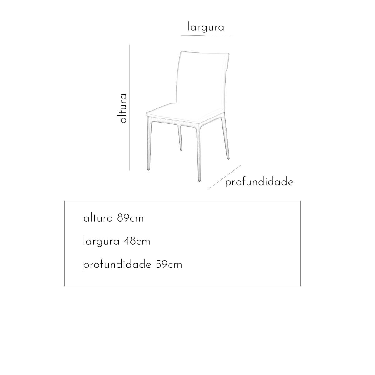 Pés em madeira maciça. Estrutura do assento e encosto em madeira multilaminada, estofada com espuma D28, fibra manta siliconada e tecido.