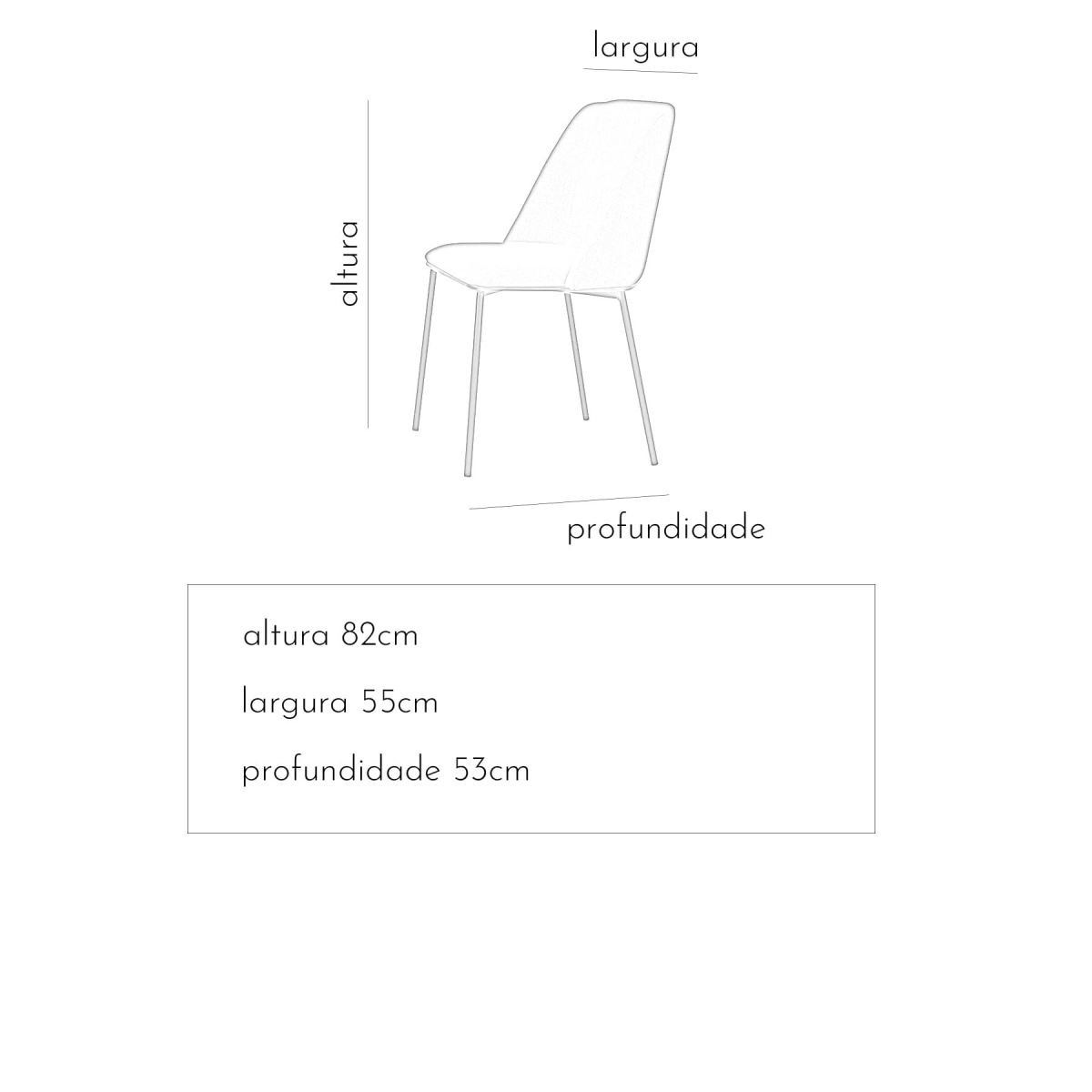 Base produzida em aço carbono curvo com pintura epóxi preta. Concha em madeira multilaminada moldada, estofada com espuma D28 e tecido.**Este produto pode ser produzido em outras cores e tecidos. Para informações sobre personalização, entre em contato com a gente através de qualquer canal de atendimento. *Produto entregue montado.