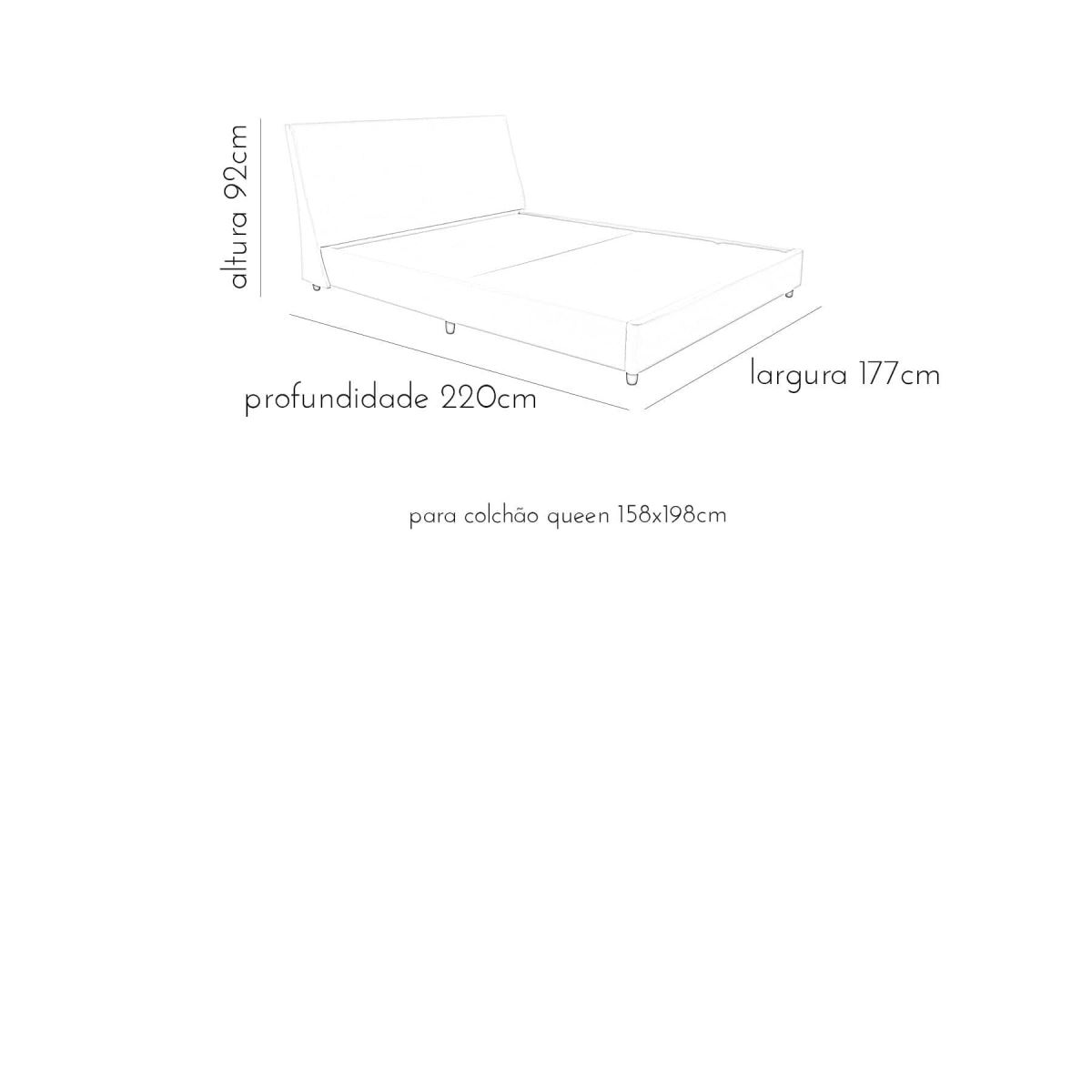 Estrutura em madeira maciça e MDF estofada em espuma D26 e tecido. Estrado em madeira maciça, revestido em TNT. Pés em madeira maciça. *Produto entregue desmontado (box desmontado). Nível de dificuldade de montagem: médio. Recomendada montagem profissional.
