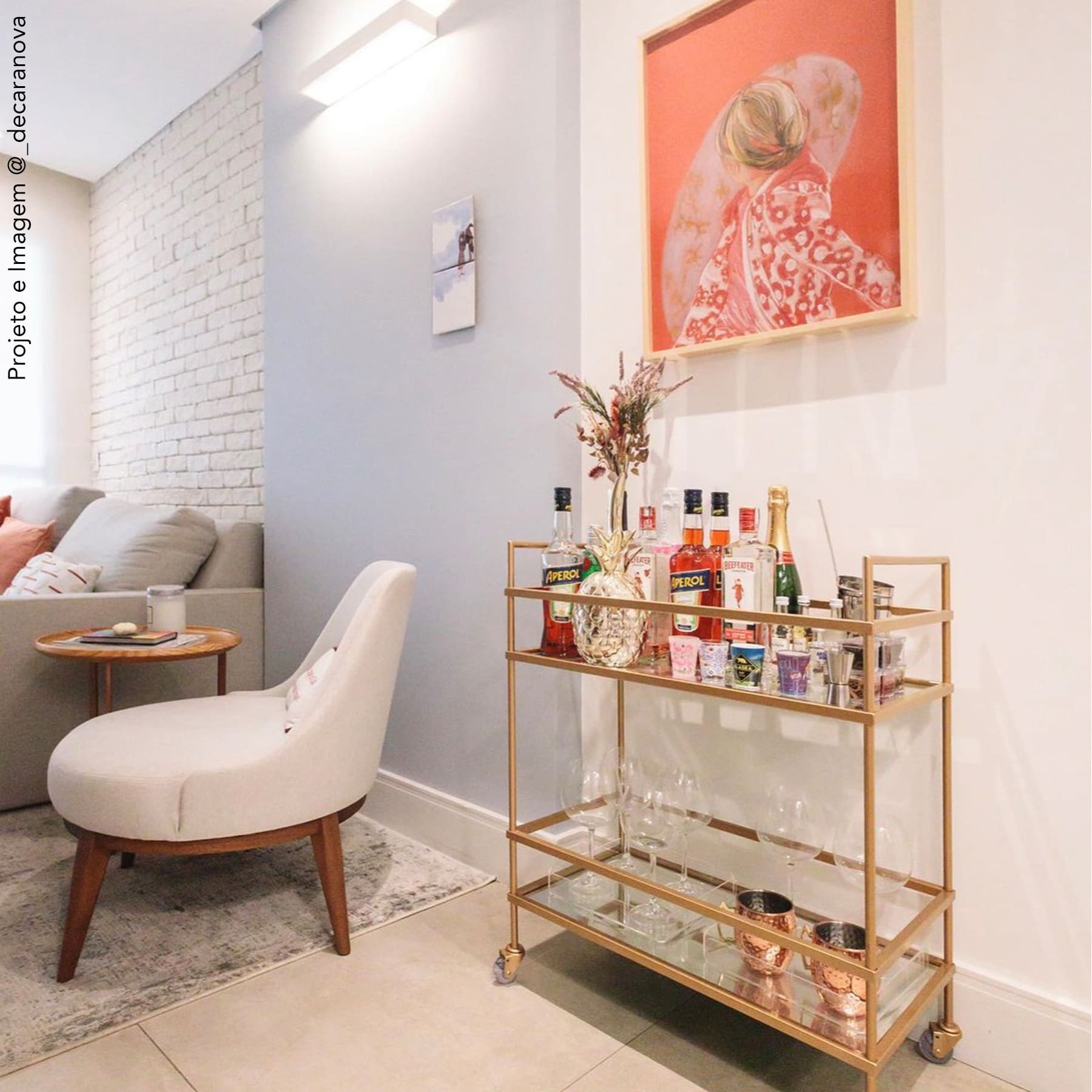 O carrinho de bar art deco é uma peça que dá aos ambientes um ar todo especial. Com alta qualidade de acabamento e tampos em espelho, ele trás sofisticação e praticidade. Como bar ou como canto de café, as rodinhas dão a mobilidade.