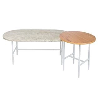 conjunto de mesas em travertino e madeira drops