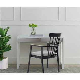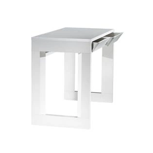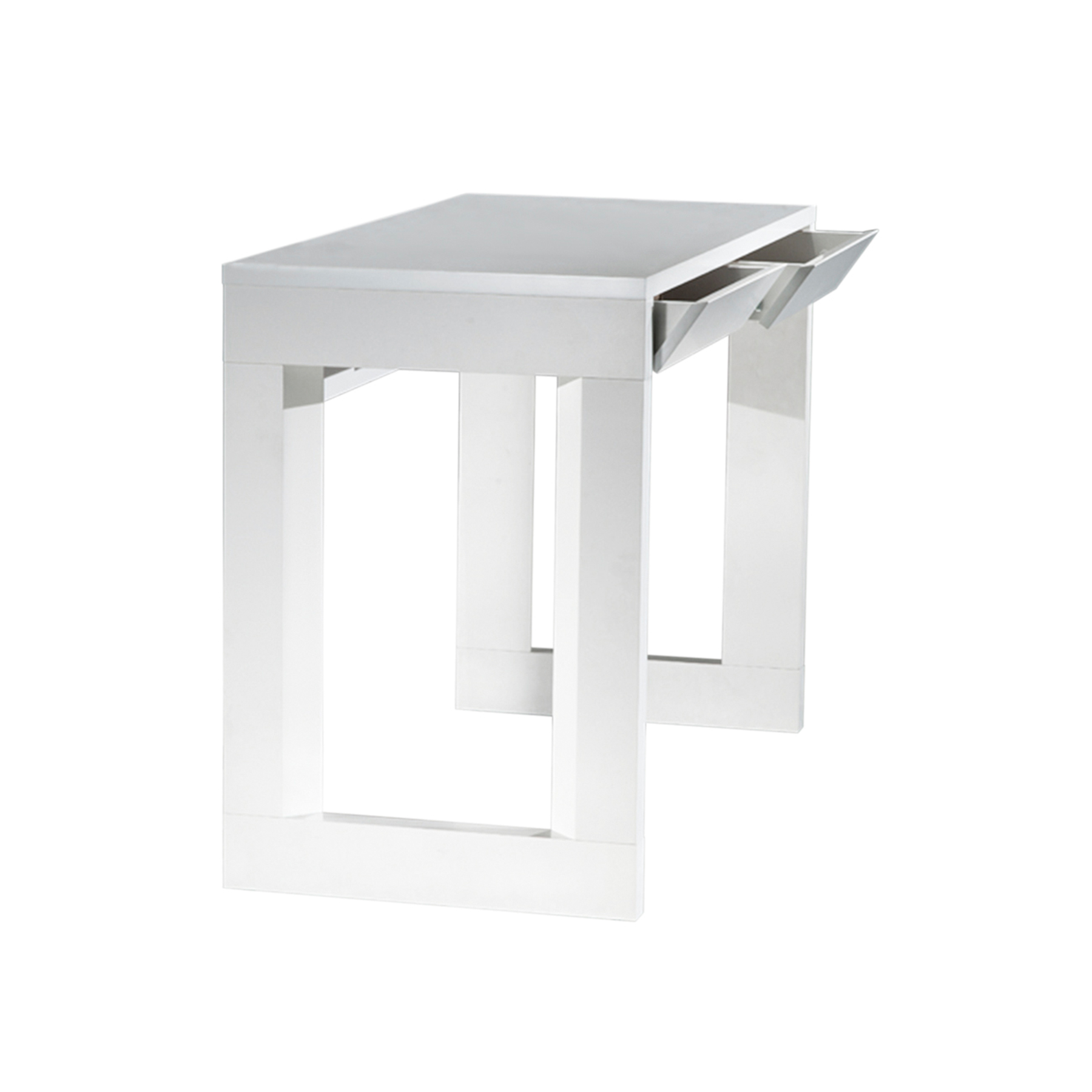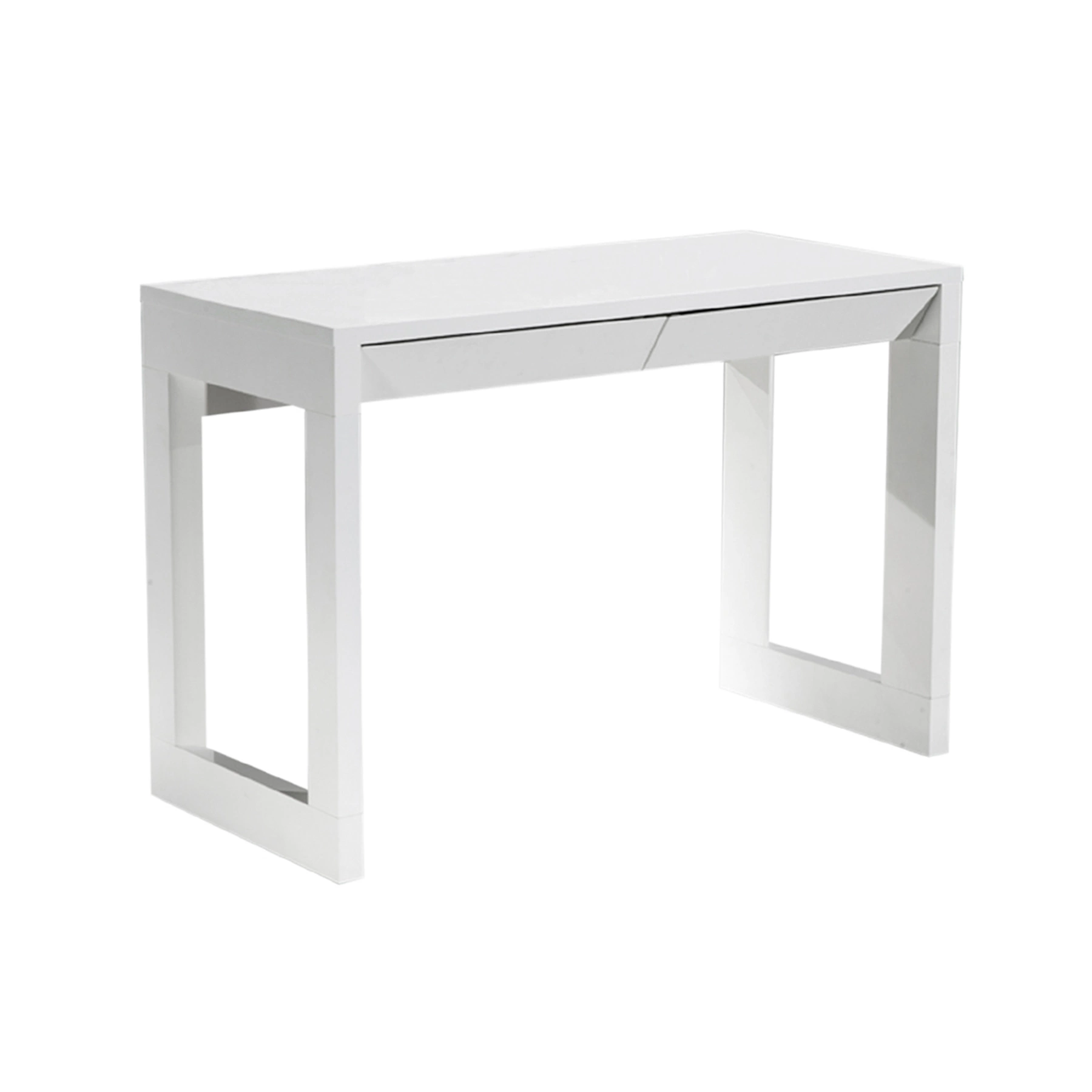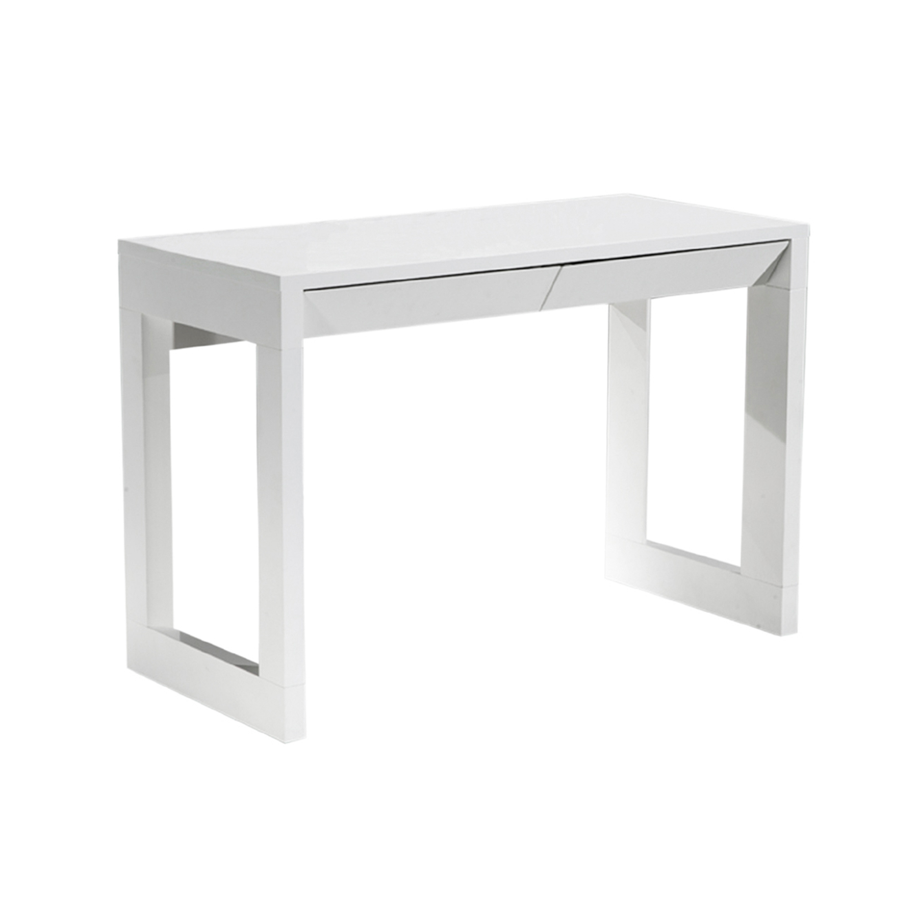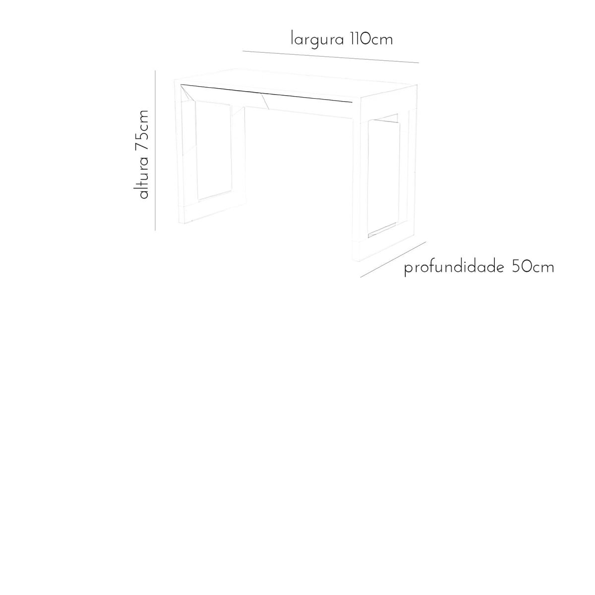 Prática escrivaninha com desenho discreto, que se adapta a todos estilos de decoração. Também pode ser usada como penteadeira. Com acabamento em laca fosca e sobretampo em vidro pintado para proteger a laca, é uma peça de qualidade e com alta durabilidade.