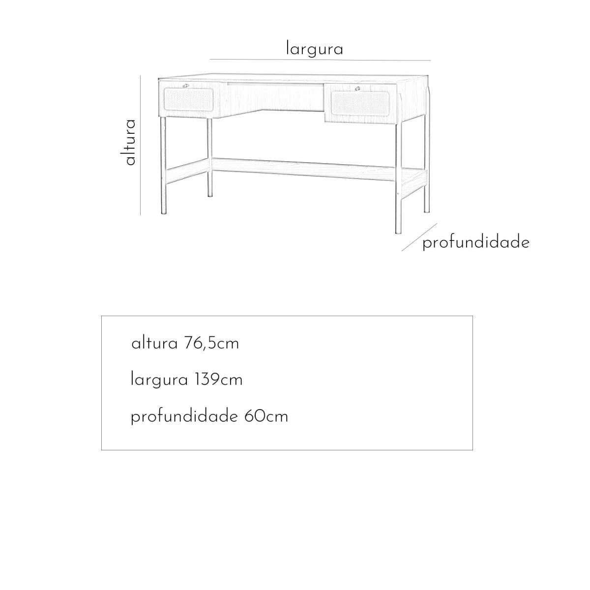 Pés em madeira maciça. Caixa e tampo em MDP com acabamento melamina BP. Gavetas com acabamento em palha de celulose. *Produto entregue desmontado. Nível de dificuldade de montagem: difícil. Requer montagem profissional.