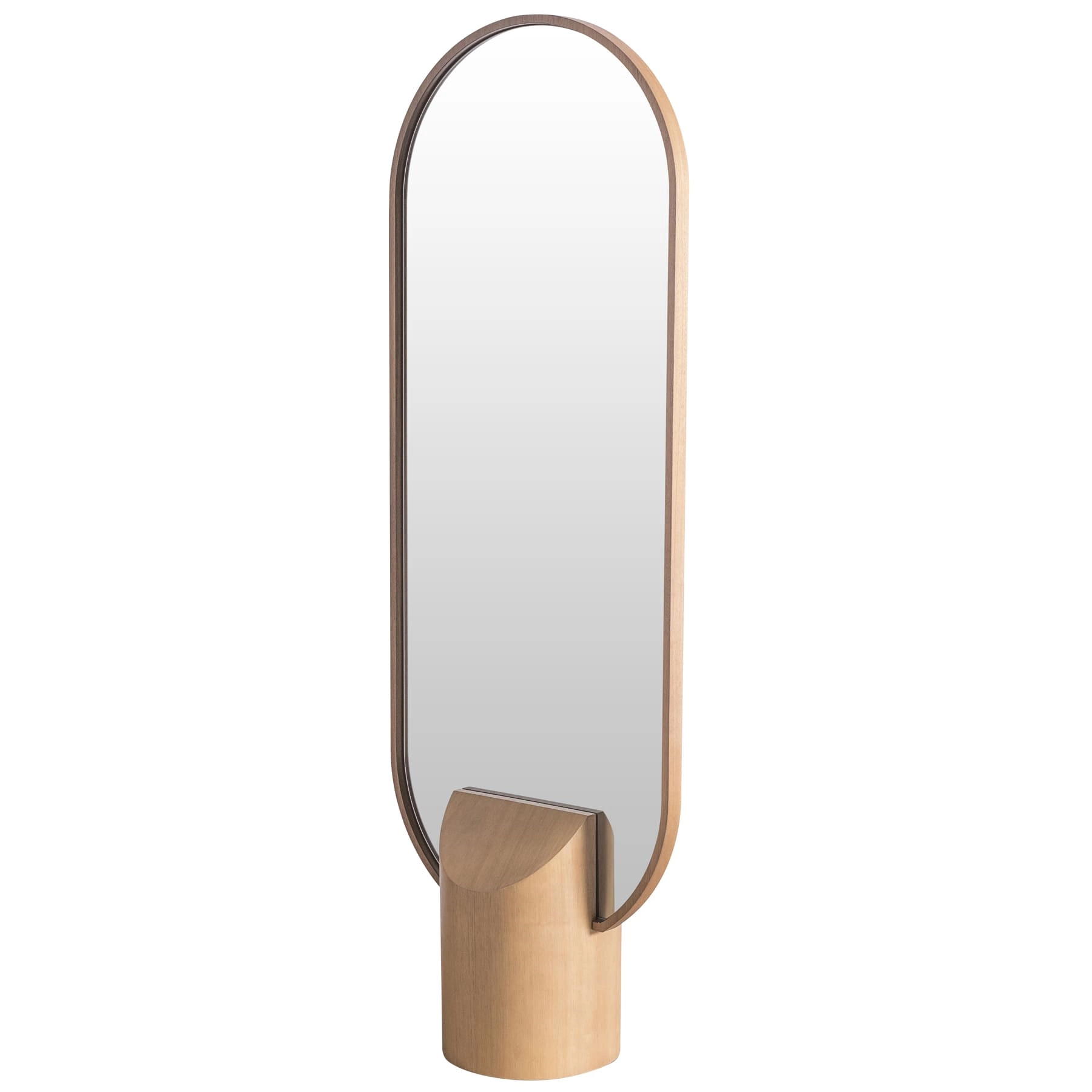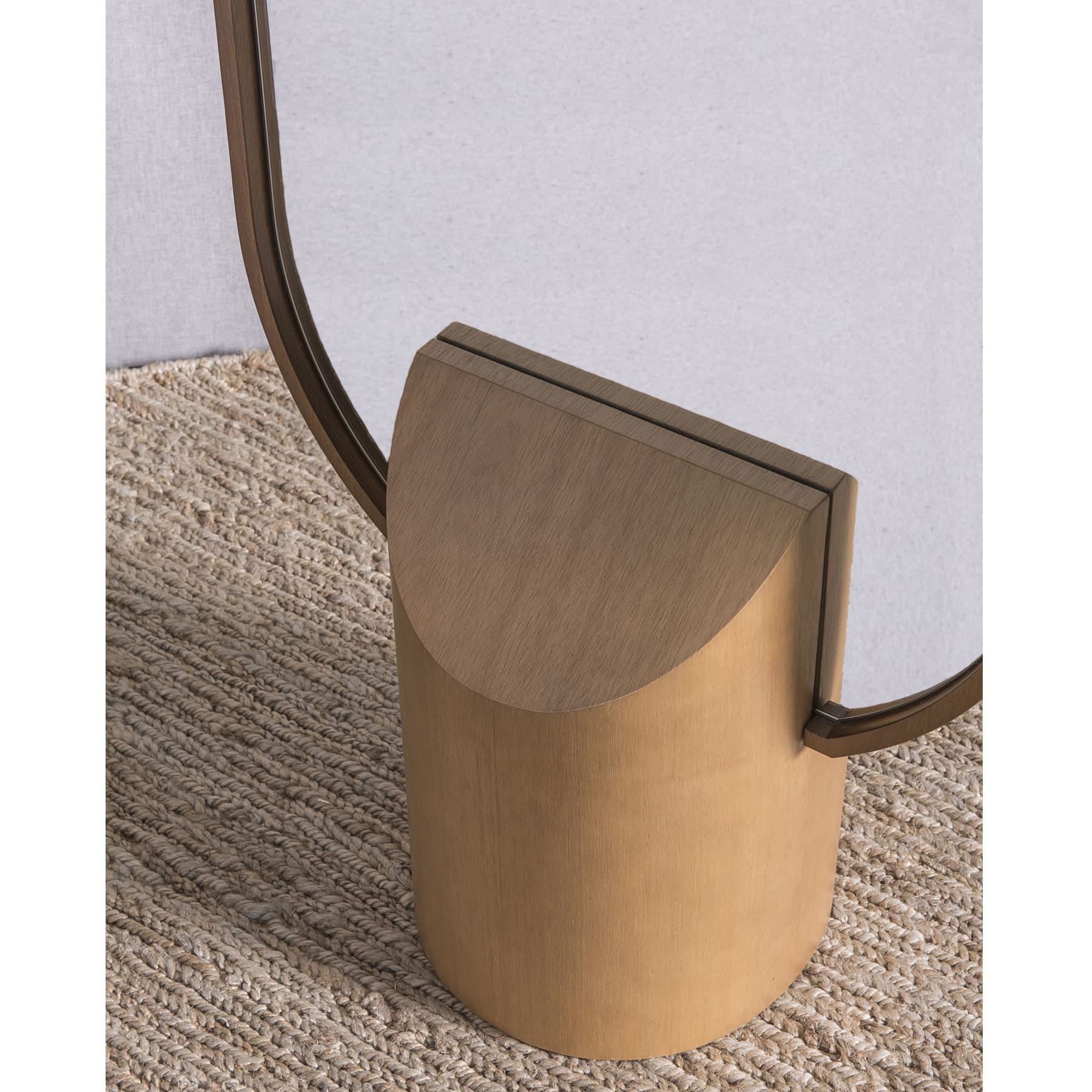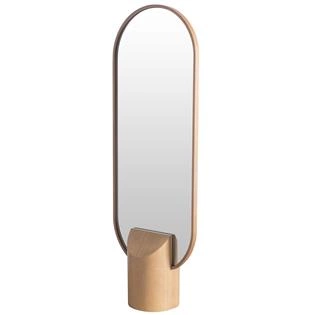 Um espelho de piso charmoso e prático. Dispensa a fixação na parede e as formas arredondadas são contemporâneas e fluídas. Dá um toque especial a decoração e a madeira maciça traz sofisticação.