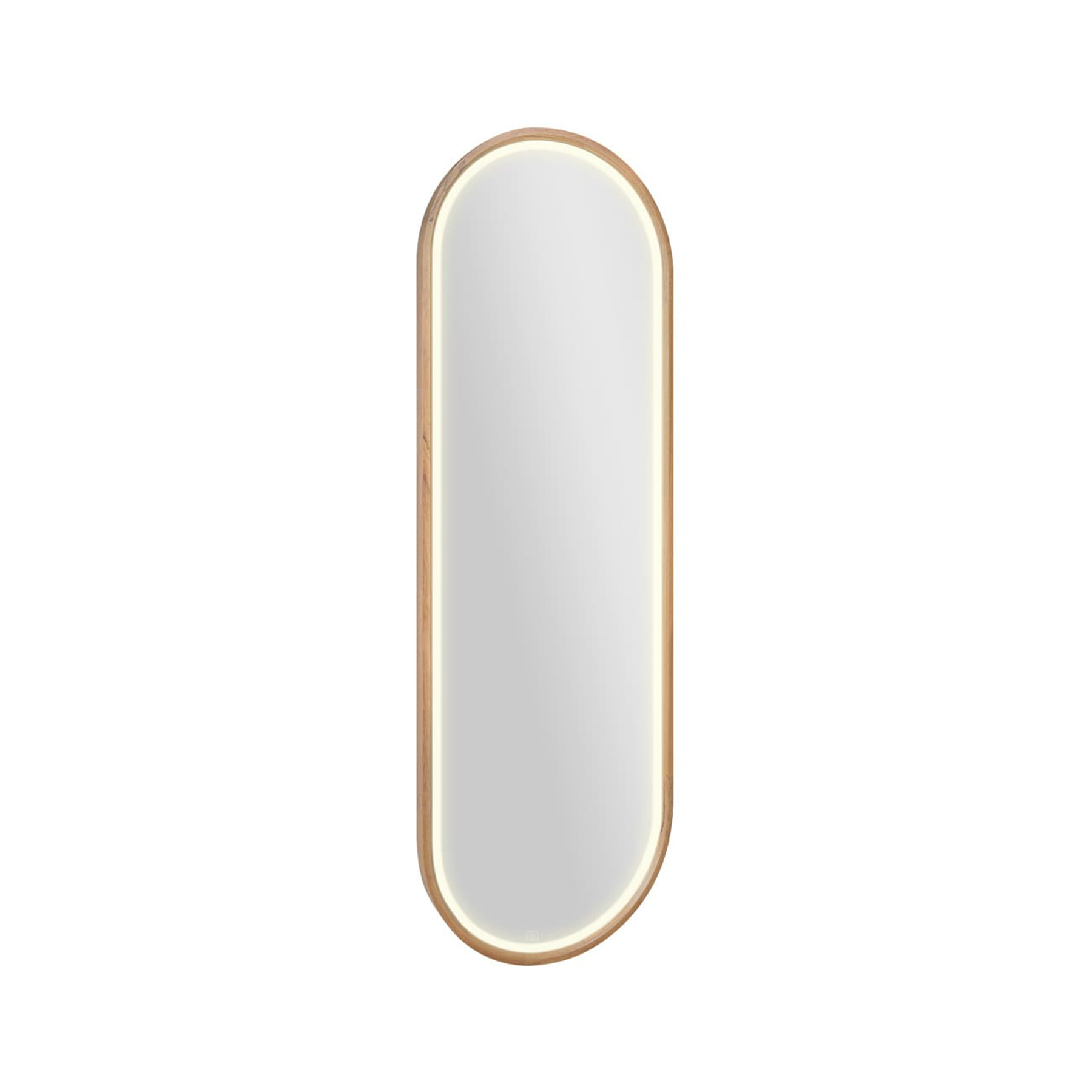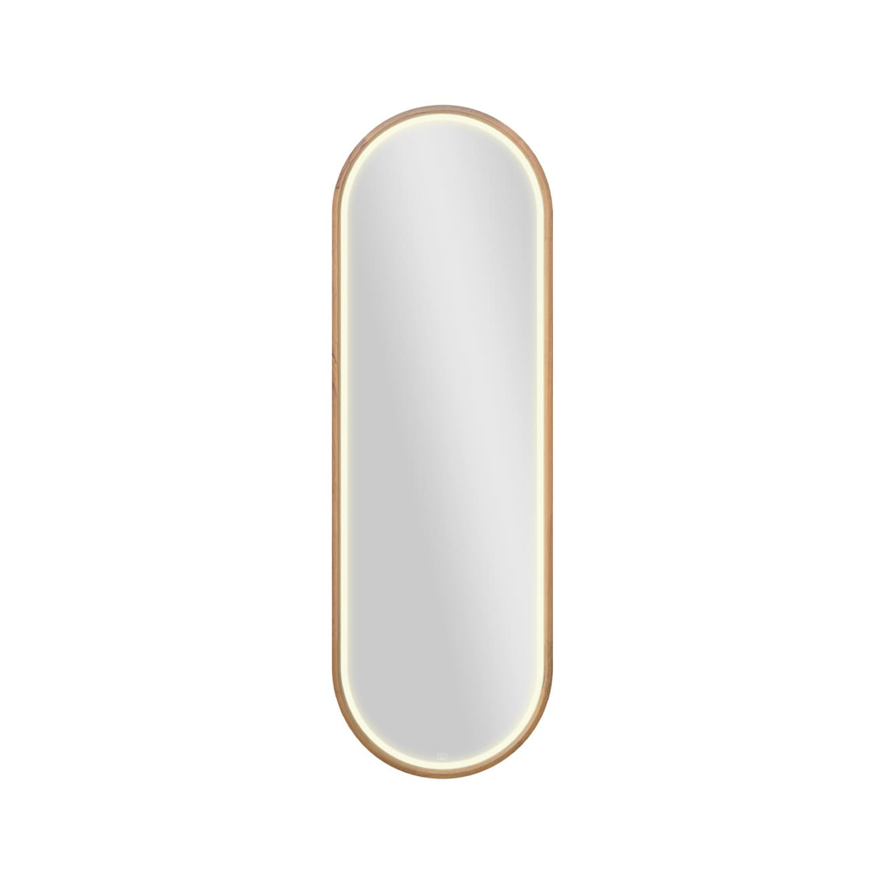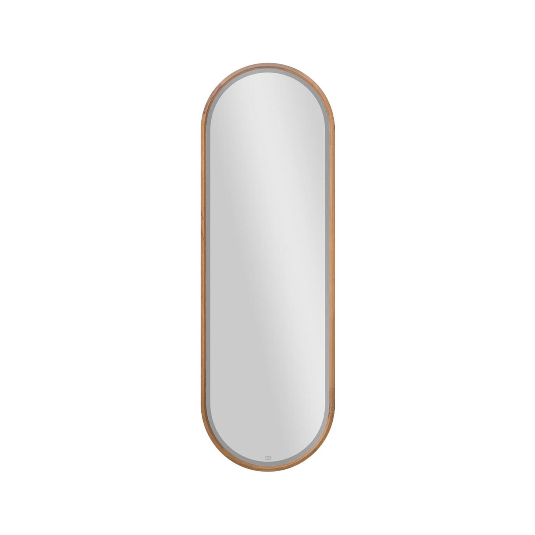 espelho led corpo inteiro com moldura oval em madeira oslo