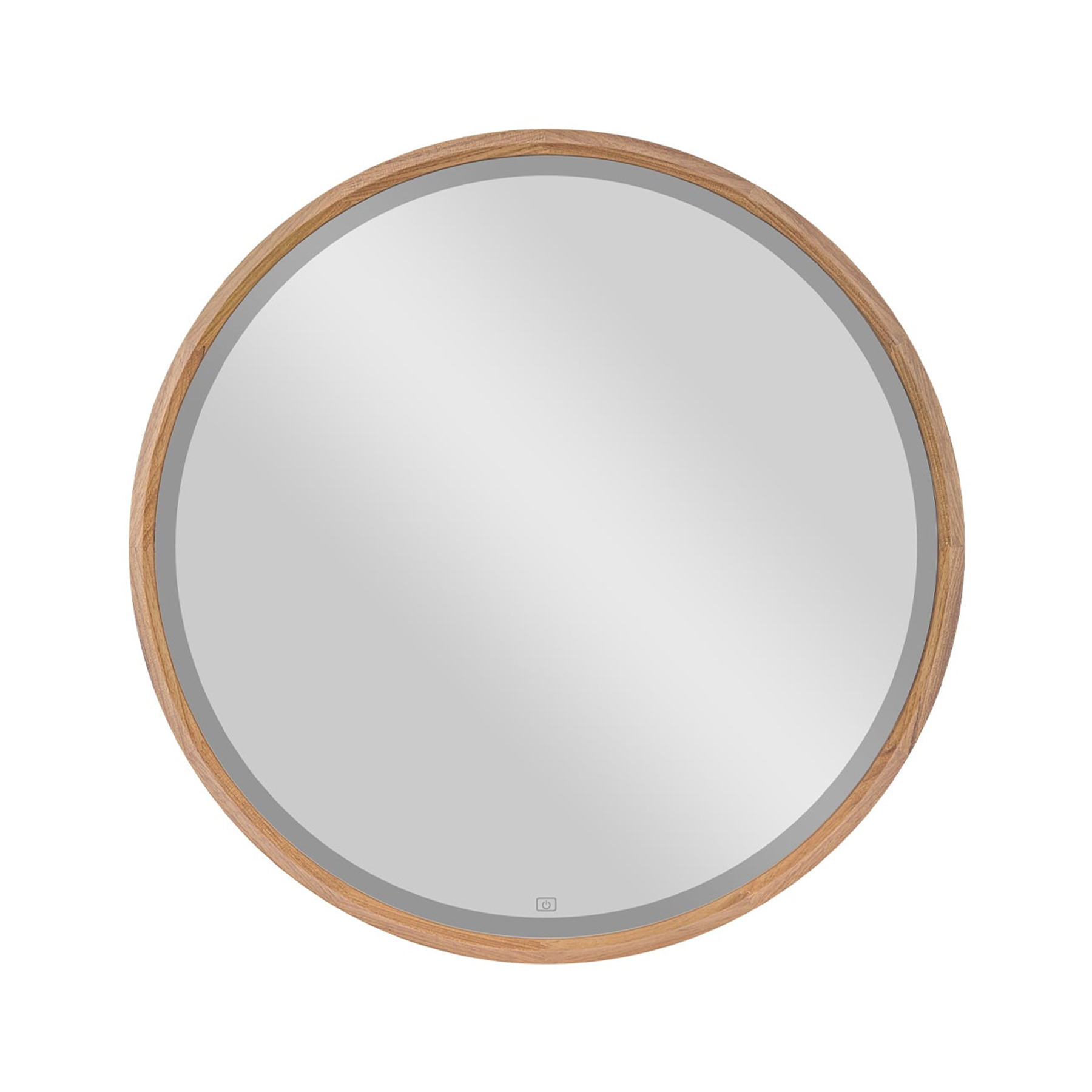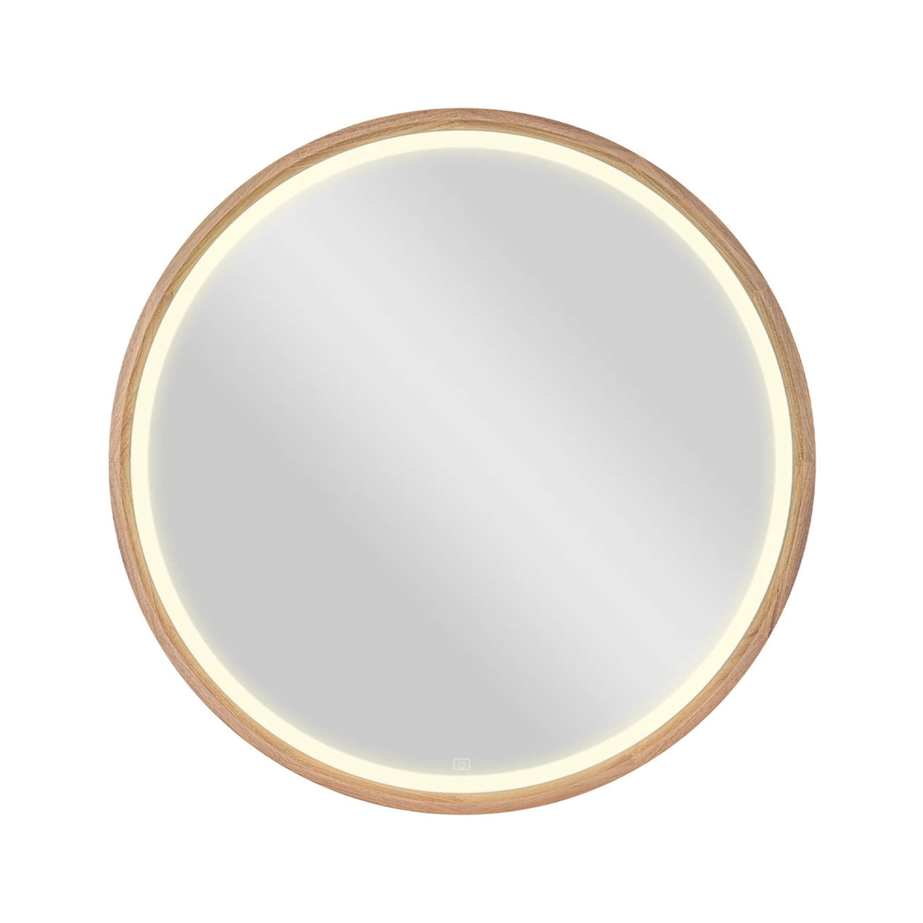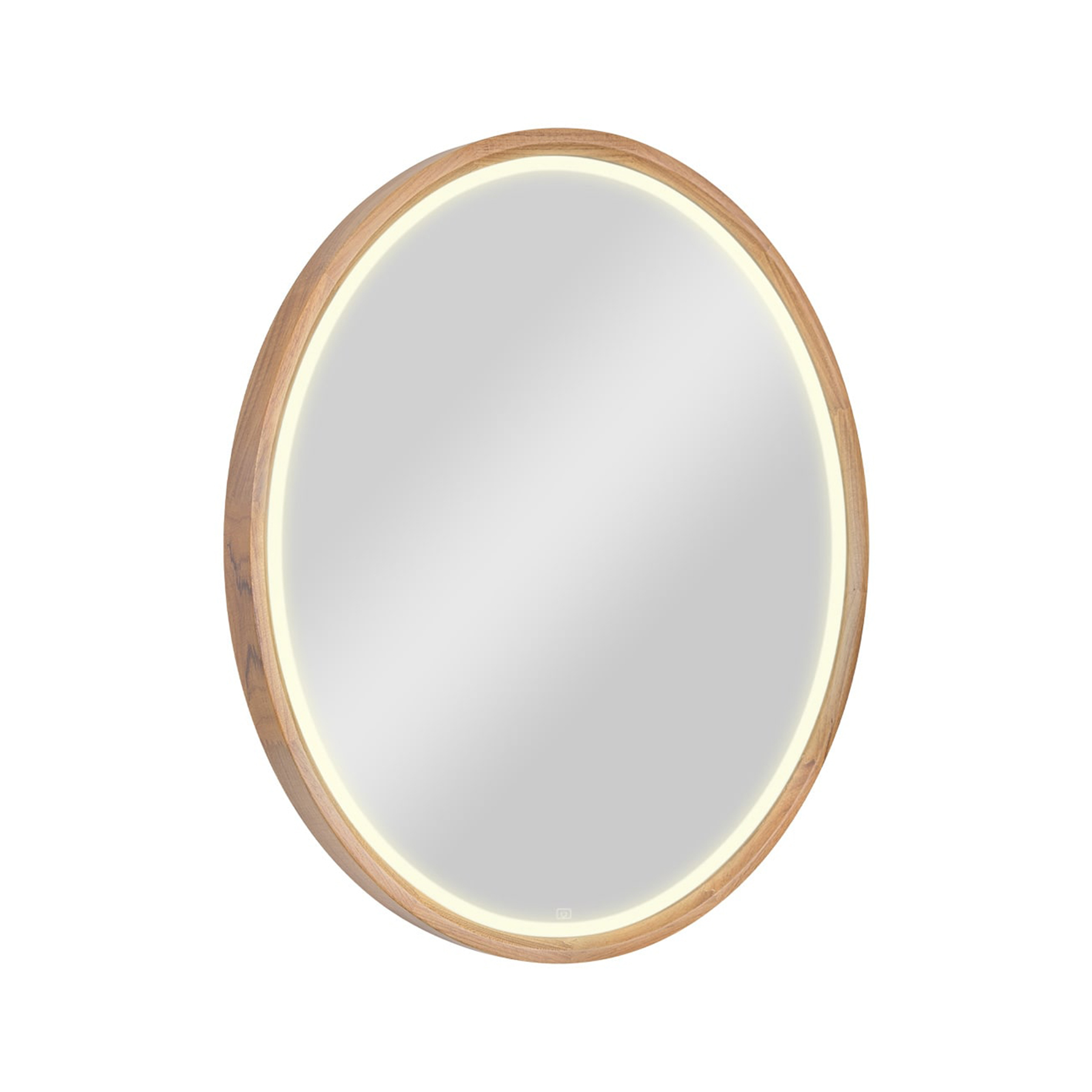 espelho led embutido redondo 70cm com moldura em madeira oslo