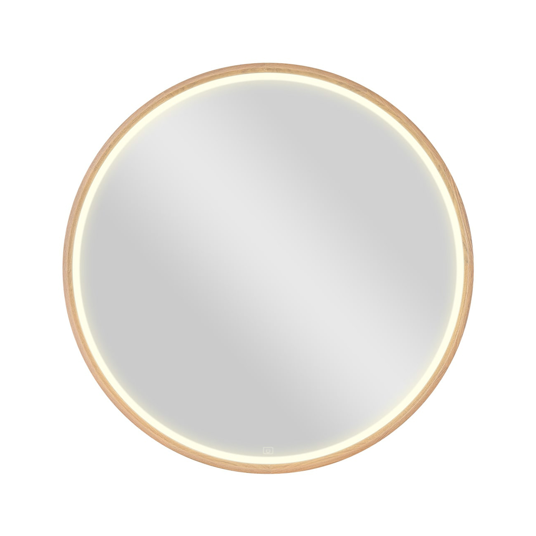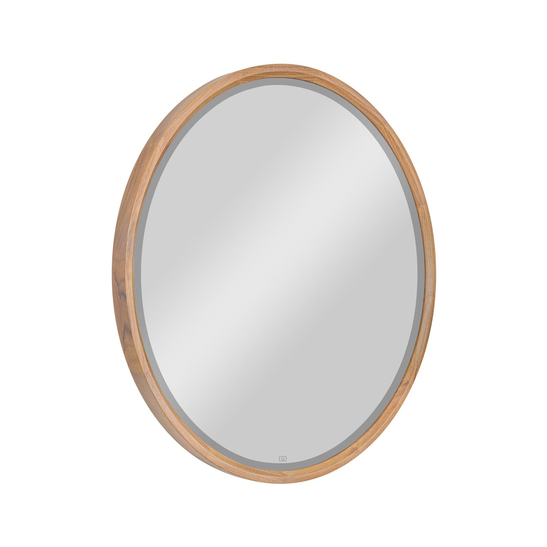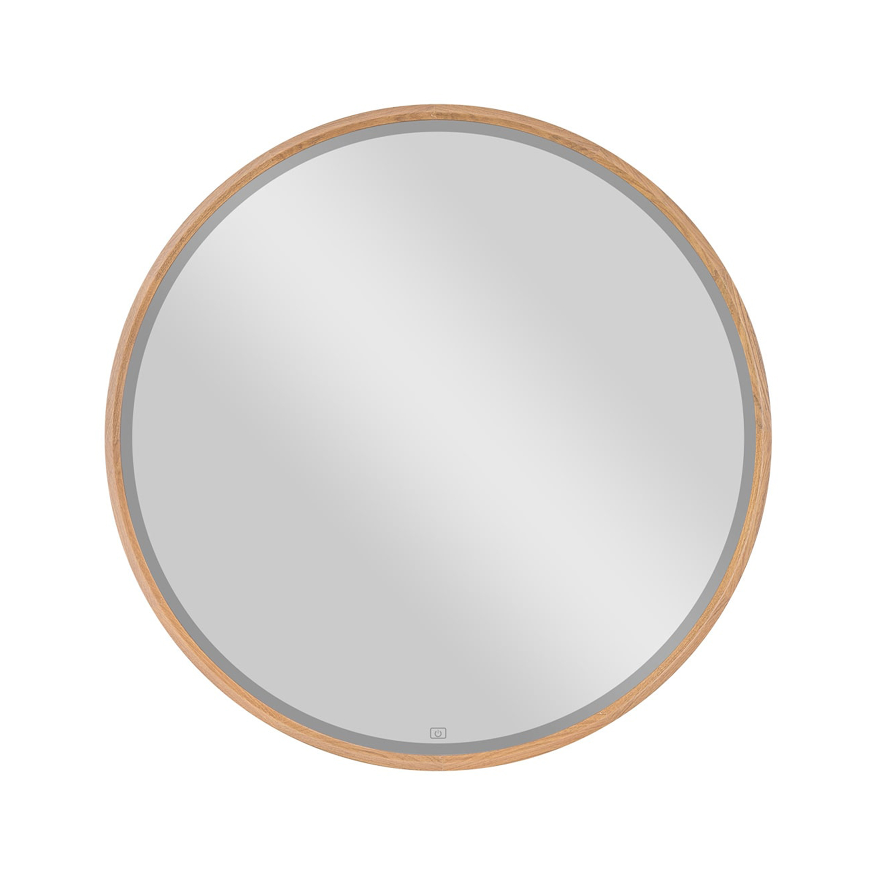 espelho led embutido redondo 90cm com moldura em madeira oslo