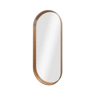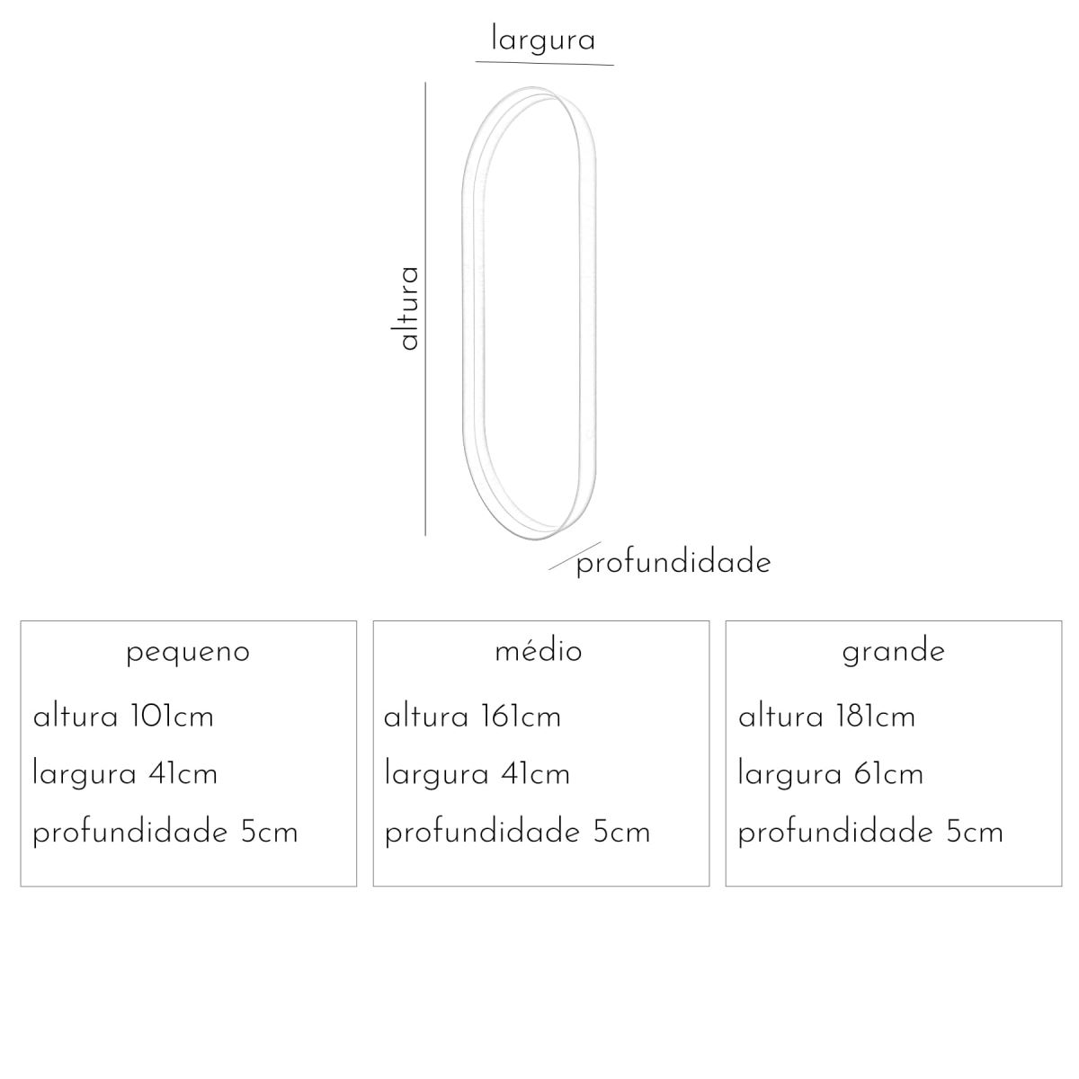 O formato da moldura do espelho art surpreende: madeira fina maciça e vergada no formato oval, que com a profundidade dá um efeito lindo. Disponível em 3 tamanhos, as 2 medidas maiores atendem corpo inteiro.
