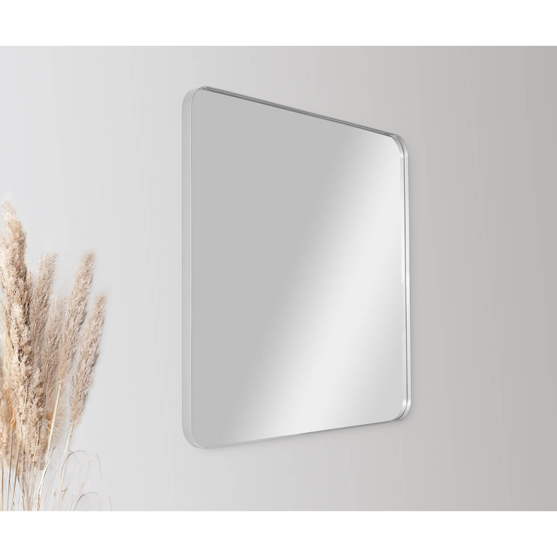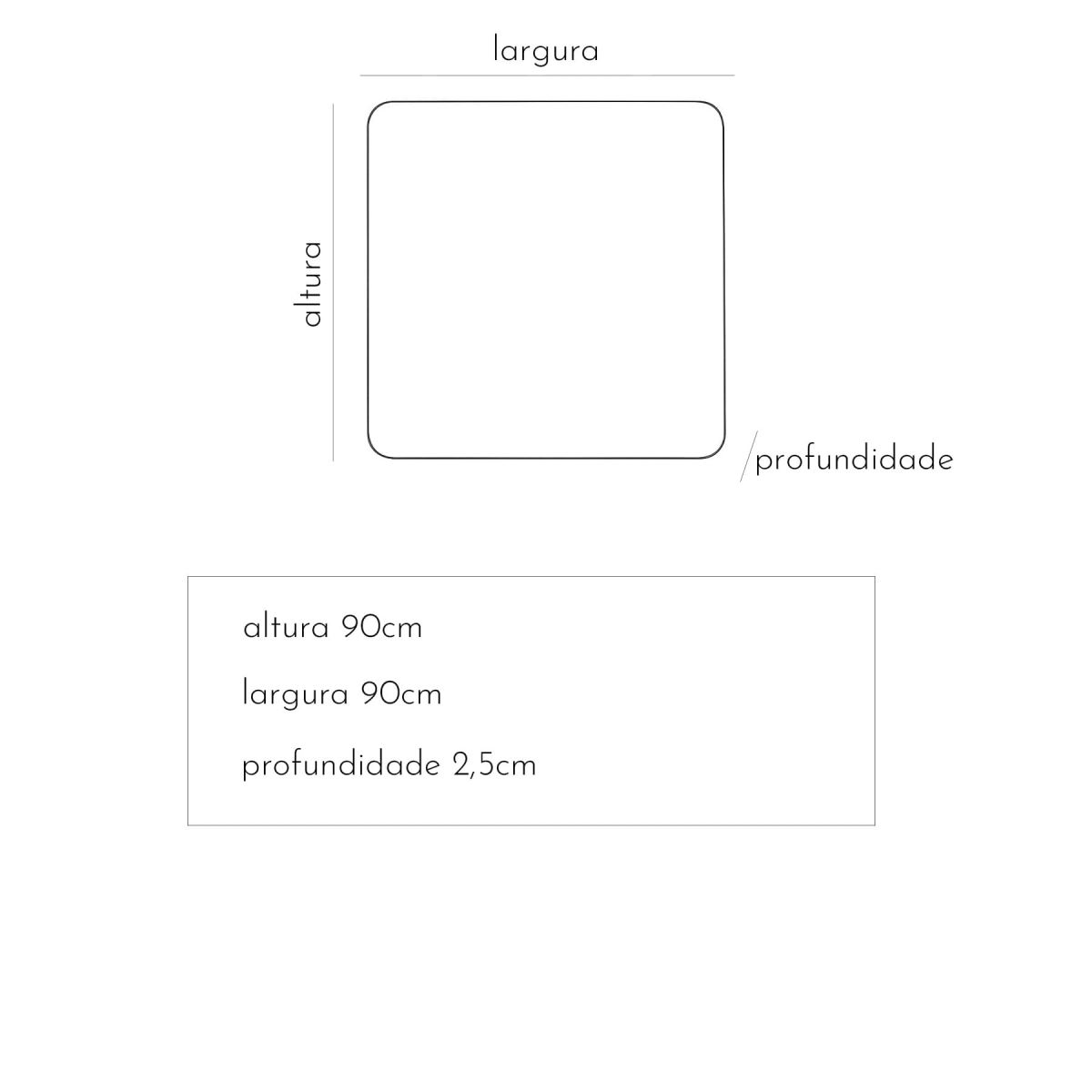 Moldura produzida em chapa de aço carbono com acabamento em pintura automotiva. Espelho cristal prata de 4mm. Acompanham ferragens para fixação. *Produto entregue montado.