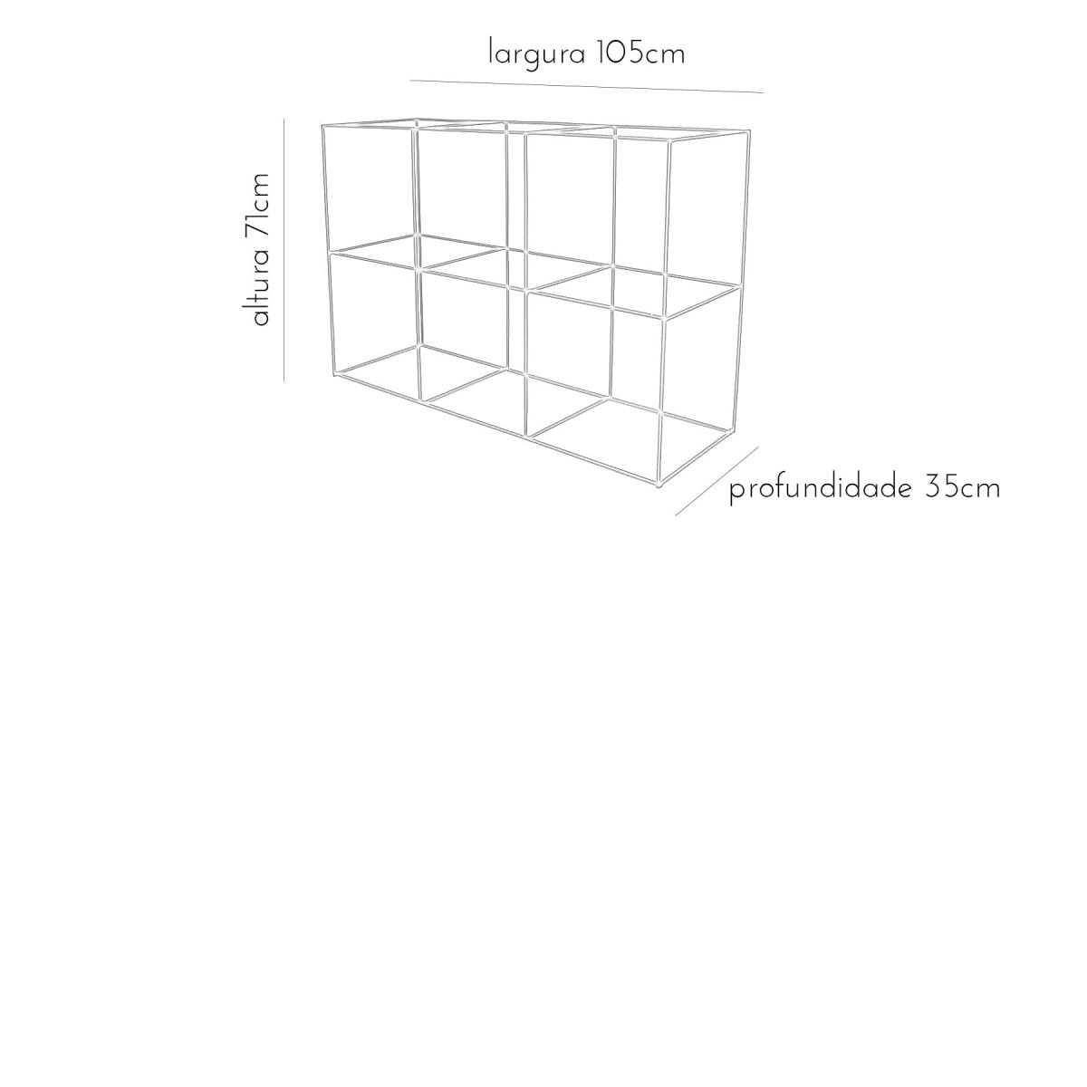 *IMAGENS MERAMENTE ILUSTRATIVAS: PRODUTO COMPOSTO POR UMA GRADE. PRATELEIRAS E NICHOS VENDIDOS SEPARADAMENTE. A estante cubic é uma solução moderna e criativa para armazenamento e exposição de objetos. Uma grade produzida a partir de vergalhão de aço para construção, com infinitas possibilidades de composição para seus nichos e prateleiras. A delicadeza da estrutura com apenas 8mm e a resistência do aço com solda especial, permitem seu uso nos mais diversos ambientes.