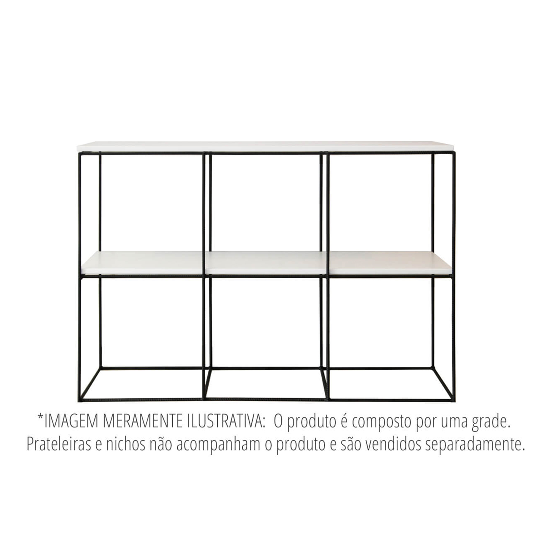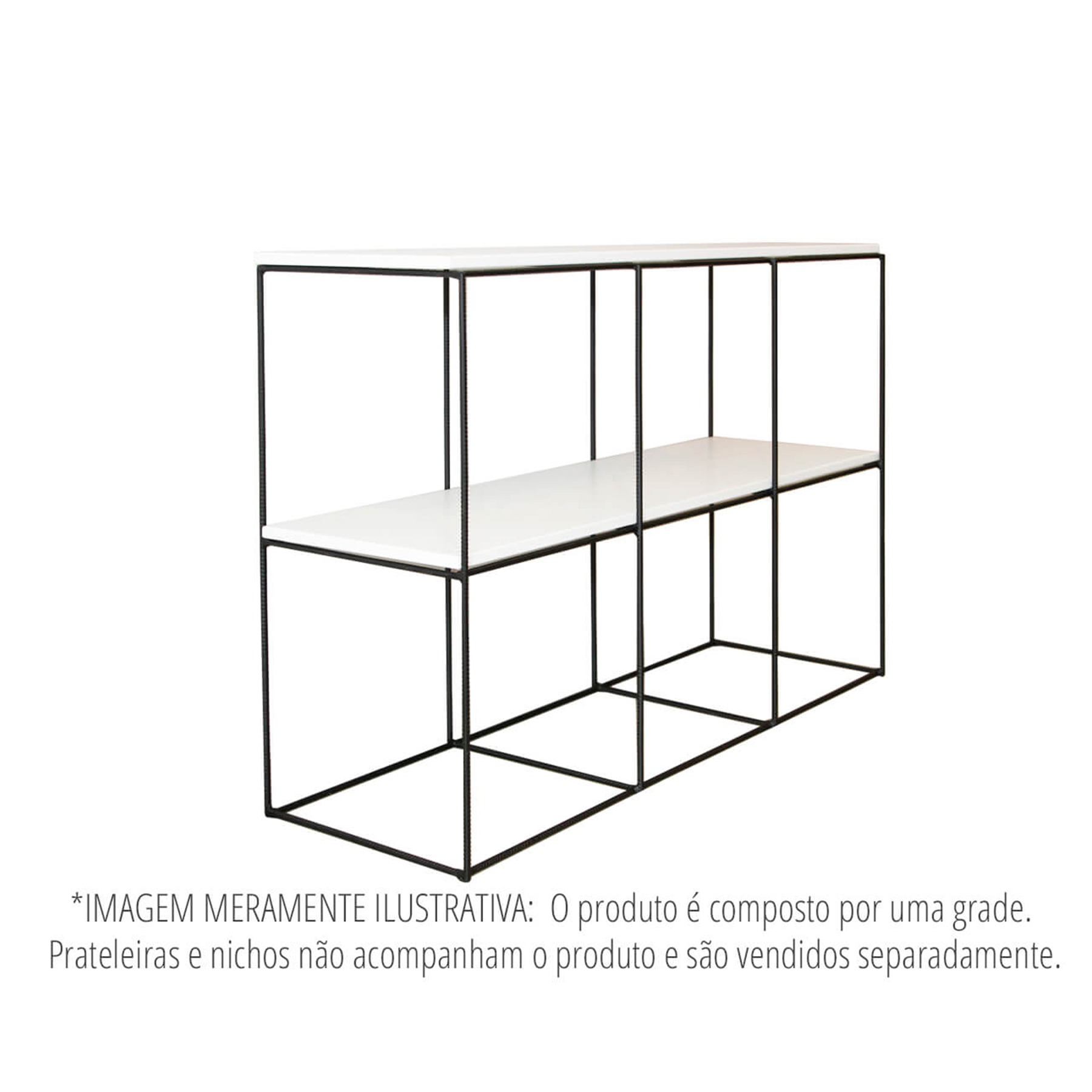 Produzida em vergalhão de aço com solda especial. Acabamento em pintura epóxi fosca. Produto entregue montado. *PRODUTO COMPOSTO POR UMA GRADE. PRATELEIRAS E NICHOS VENDIDOS SEPARADAMENTE.