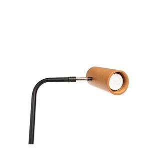 Base e cúpula em madeira. Tubo em metal com pintura epóxi. Fio interno com interruptor na parte superior da cúpula. Para lâmpada GU 10 (led). *A lâmpada não acompanha o produto.